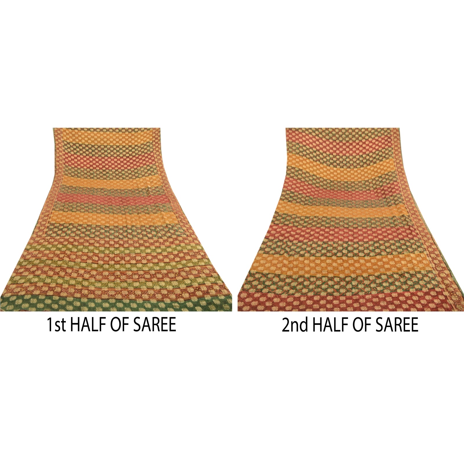 Sanskriti Vintage Sarees Multi Woven Print Pure Georgette Silk Sari Craft Sustainable Fabric