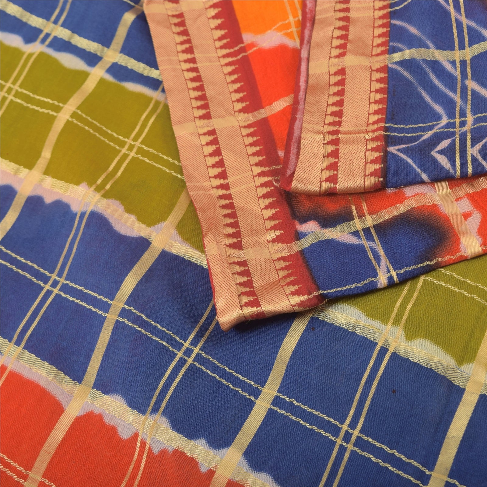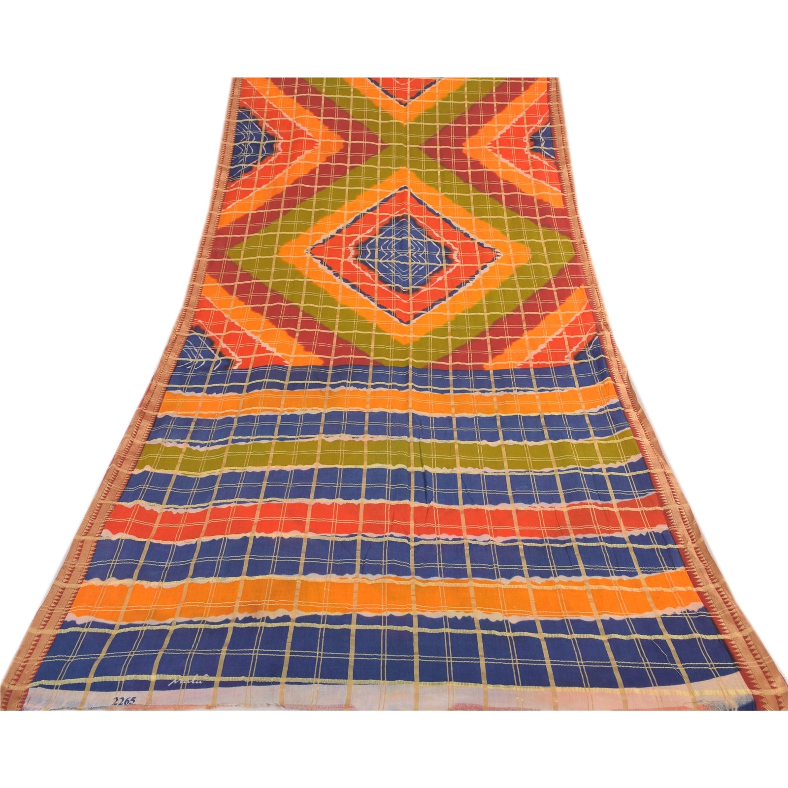 THE ITEM COLOR OR SHADE MAY BE DARKER OR LIGHTER THAN THE PICTURE. Attractive multi colored pure cotton printed & woven sari. Pallu & Border has printed geometric design. Similar design in center part of saree.. Also you can see golden woven work with check lines design. This unique vintage saree can be used for various crafting ideas even if you don't want to use it as a sari. Design a dress, use it as a as window dressing, upholstery, sarongs, throw, dress making and table linen much more. Let your creative juices flow and use this decorated Sustainable Fabric in multiple fashion. Shipping Note: 'International buyers please note: Import duties, taxes, and charges are not included in the item price or postage cost. These charges are the buyer's responsibility. Please check with your country's customs office to determine what these additional costs will be prior to bidding or buying. Buyer will pay custom duty/tax. It is calculated and charged differently by every country. As a seller I do not have any control over it. VAT or sales tax is calculated by the platform at the time of checkout. Customs charge is payable at the time of delivery.' PCS-5994