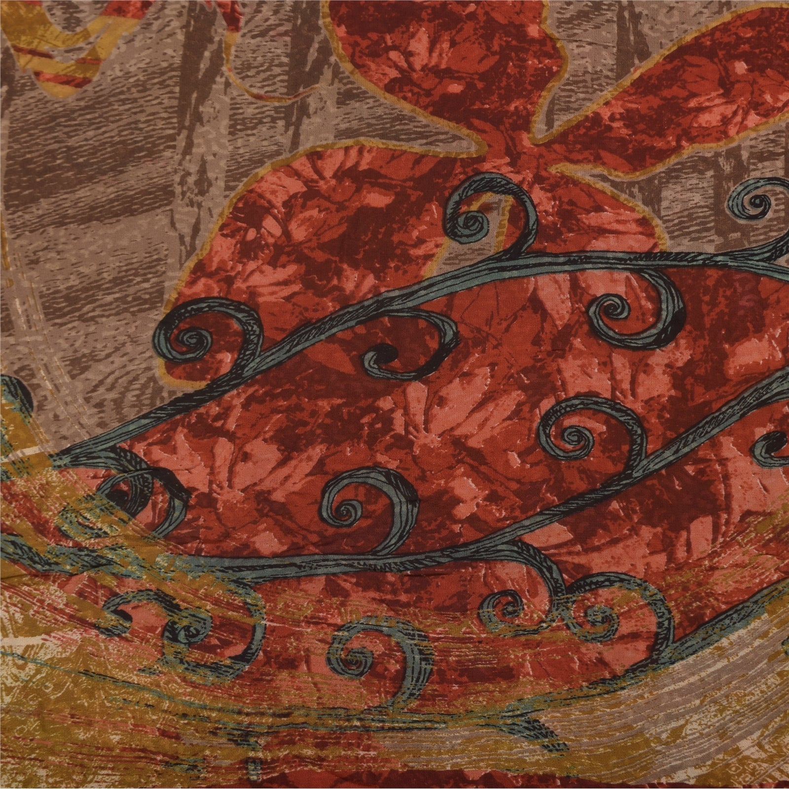Sanskriti Vintage Sarees Mustard Pure Georgette Printed Sari 5+yd Craft Sustainable Fabric
