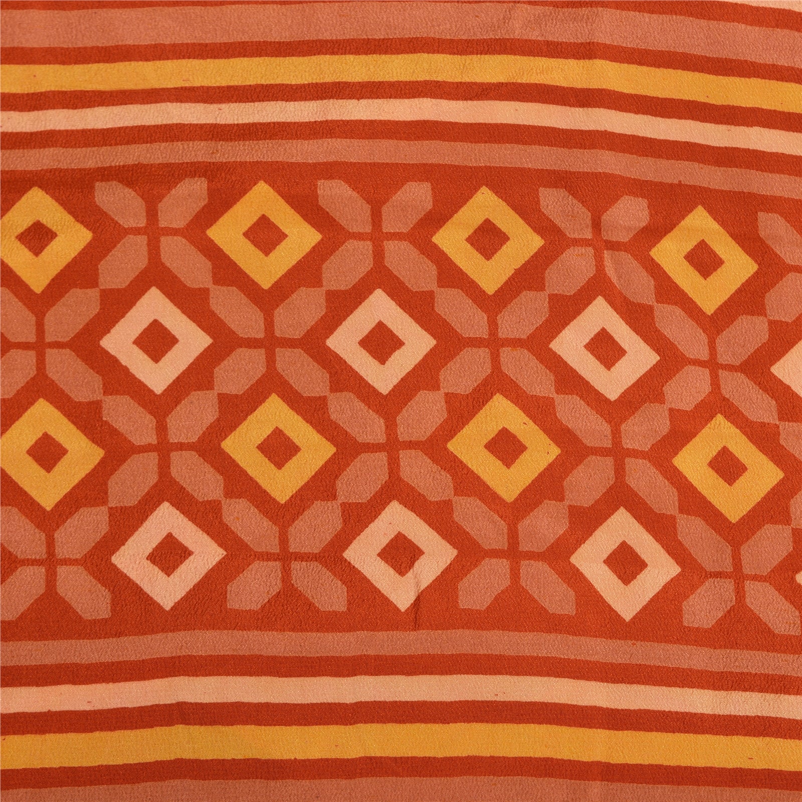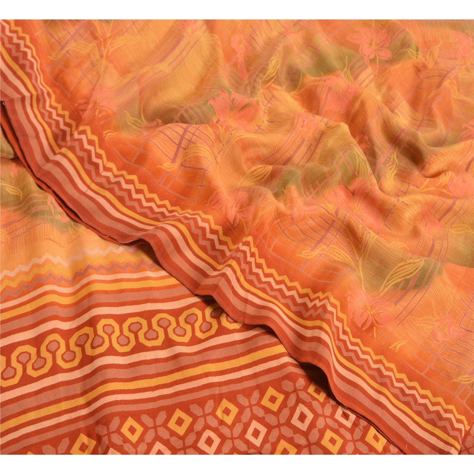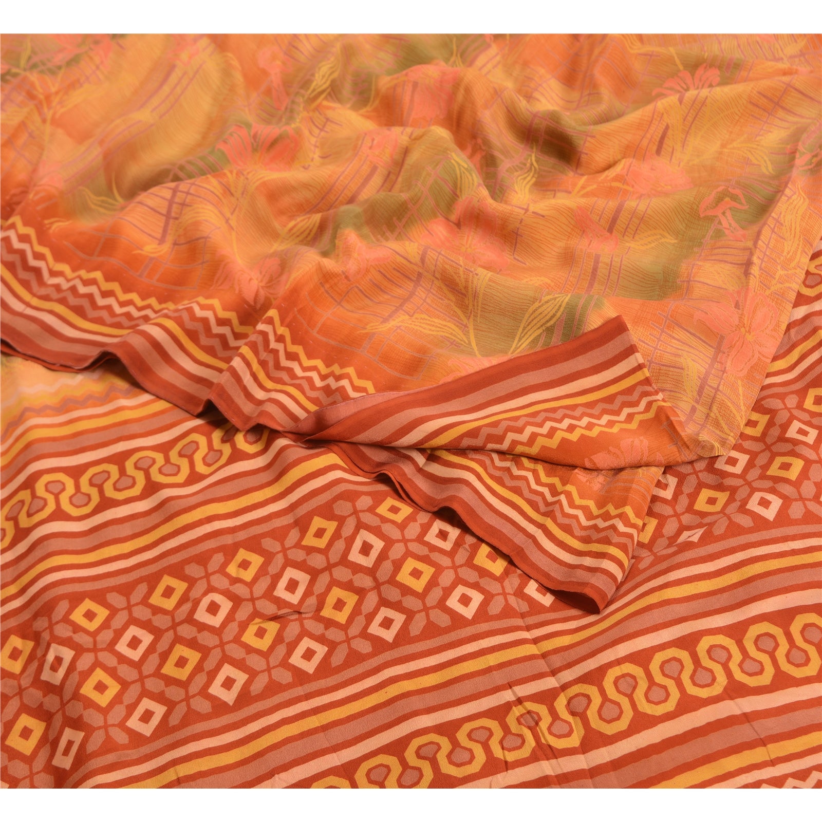 Sanskriti Vintage Sarees Orange 100% Pure Crepe Silk Printed Sari Craft Sustainable Fabric