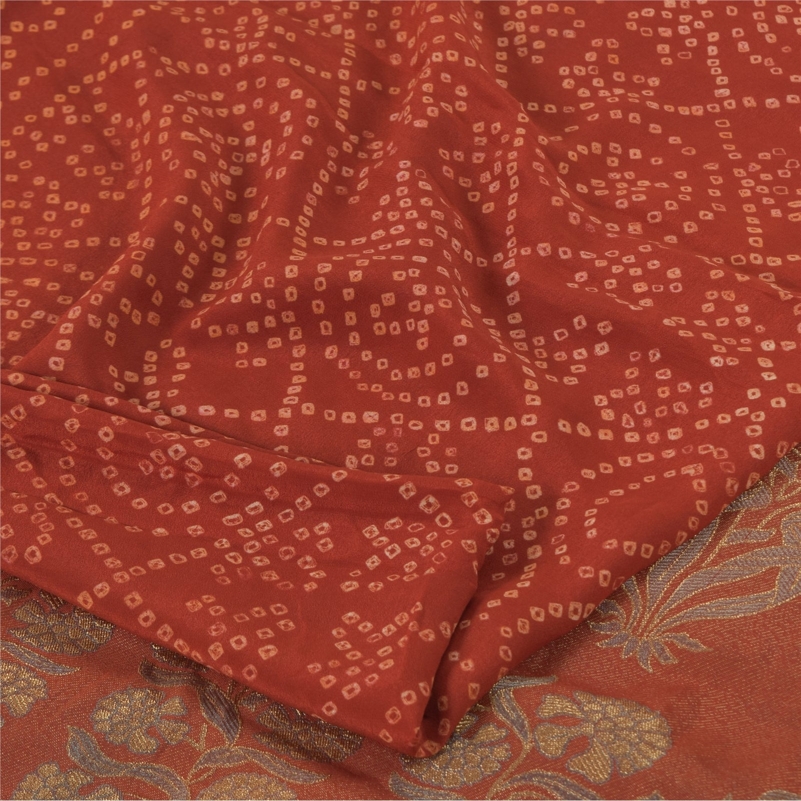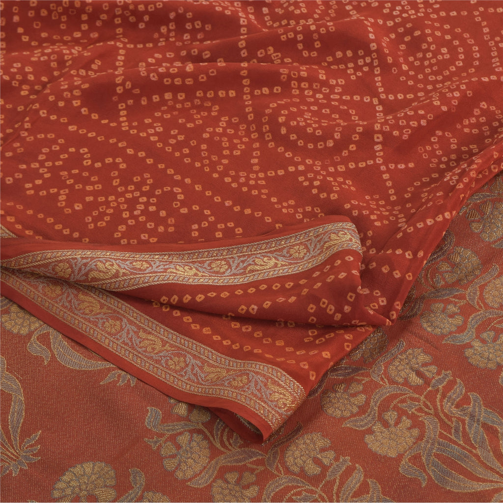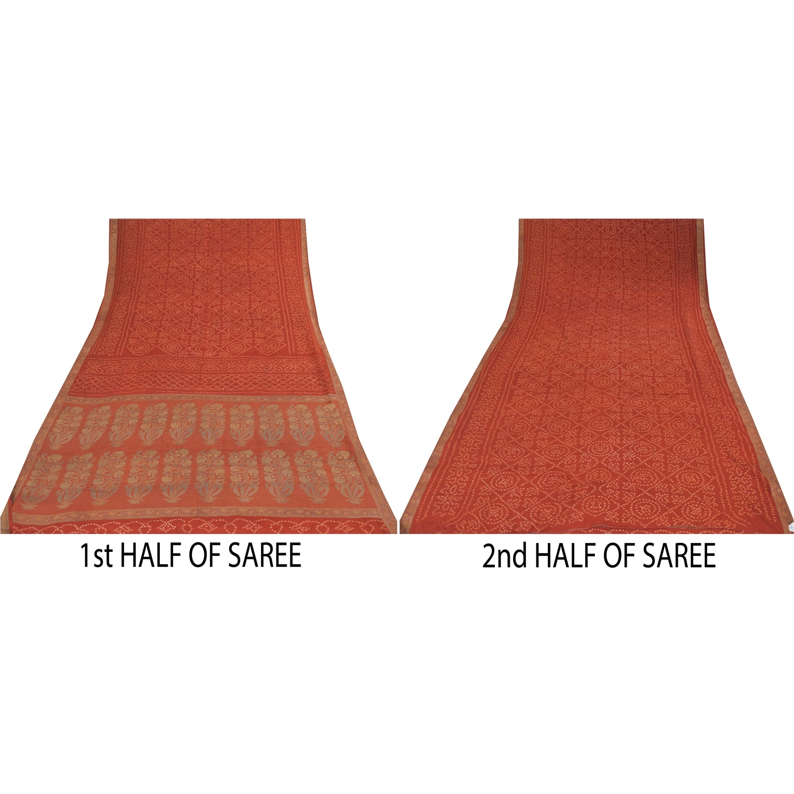 THE ITEM COLOR OR SHADE MAY BE DARKER OR LIGHTER THAN THE PICTURE.' • Beautiful rusty orange colored bandhani printed & woven pure crepe silk saree . • Pallu & Border has floral design with woven work. • Printed floral design with geometric pattern in center part of sari . This unique vintage saree can be used for various crafting ideas even if you don't want to use it as a sari. Design a dress, use it as a as window dressing, upholstery, sarongs, throw, dress making and table linen much more. Let your creative juices flow and use this decorated Sustainable Fabric in multiple fashion. International buyers please note: Import duties, taxes, and charges are not included in the item price or postage cost. These charges are the buyer's responsibility. Please check with your country's customs office to determine what these additional costs will be prior to bidding or buying.Buyer will pay custom duty/tax. It is calculated and charged differently by every country. As a seller I do not have any control over it. VAT or sales tax is calculated by the platform at the time of checkout. Customs charge is payable at the time of delivery.