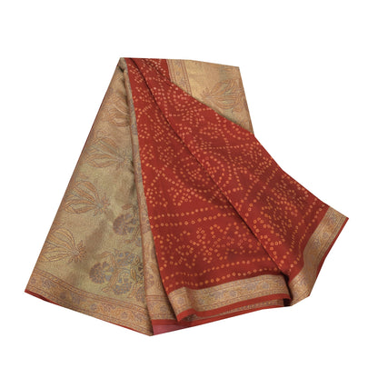 Sanskriti Vintage Sarees Orange Bandhani Printed/Woven Pure Crepe Sari Sustainable Fabric