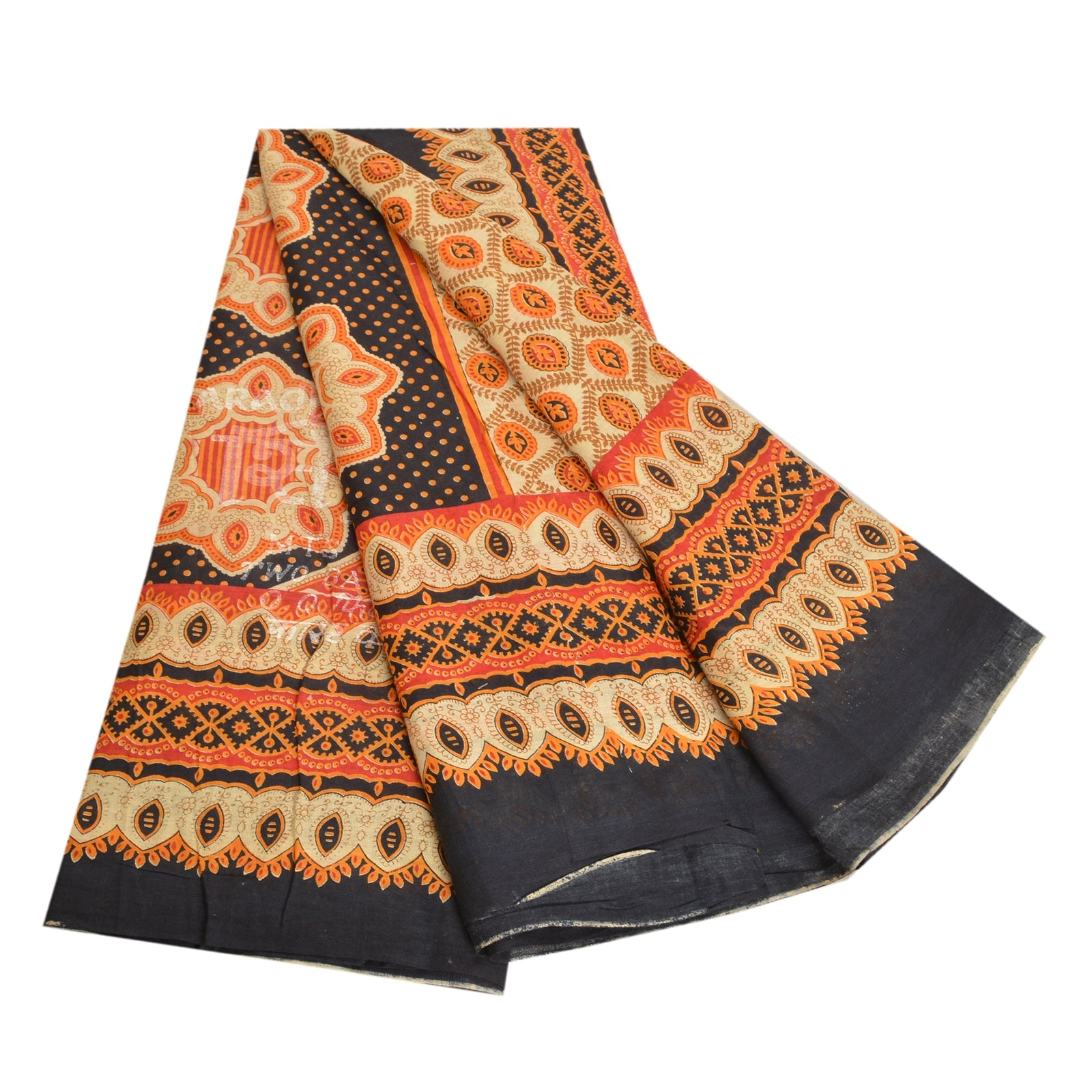 THE ITEM COLOR OR SHADE MAY BE DARKER OR LIGHTER THAN THE PICTURE.' Attractive orange & black colored pure cotton printed sari. Pallu & border has printed floral design. Similar design in center part of saree. This unique vintage saree can be used for various crafting ideas even if you don't want to use it as a sari. Design a dress, use it as a as window dressing, upholstery, sarongs, throw, dress making and table linen much. International buyers please note: Import duties, taxes, and charges are not included in the item price or postage cost. These charges are the buyer's responsibility. Please check with your country's customs office to determine what these additional costs will be prior to bidding or buying.Buyer will pay custom duty/tax. It is calculated and charged differently by every country. As a seller I do not have any control over it.VAT or sales tax is calculated by the platform at the time of checkout. Customs charge is payable at the time of delivery.