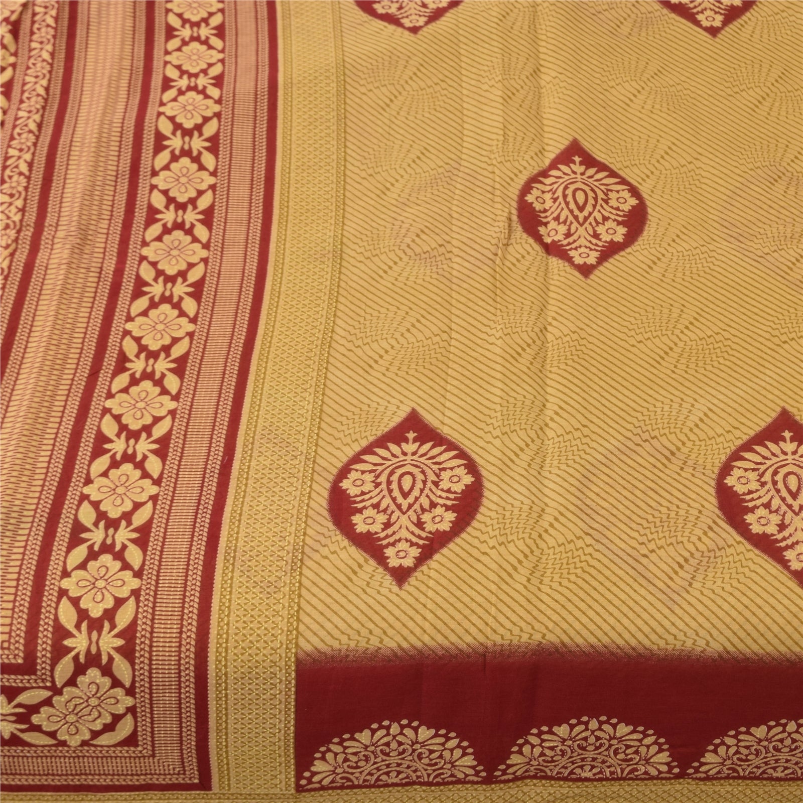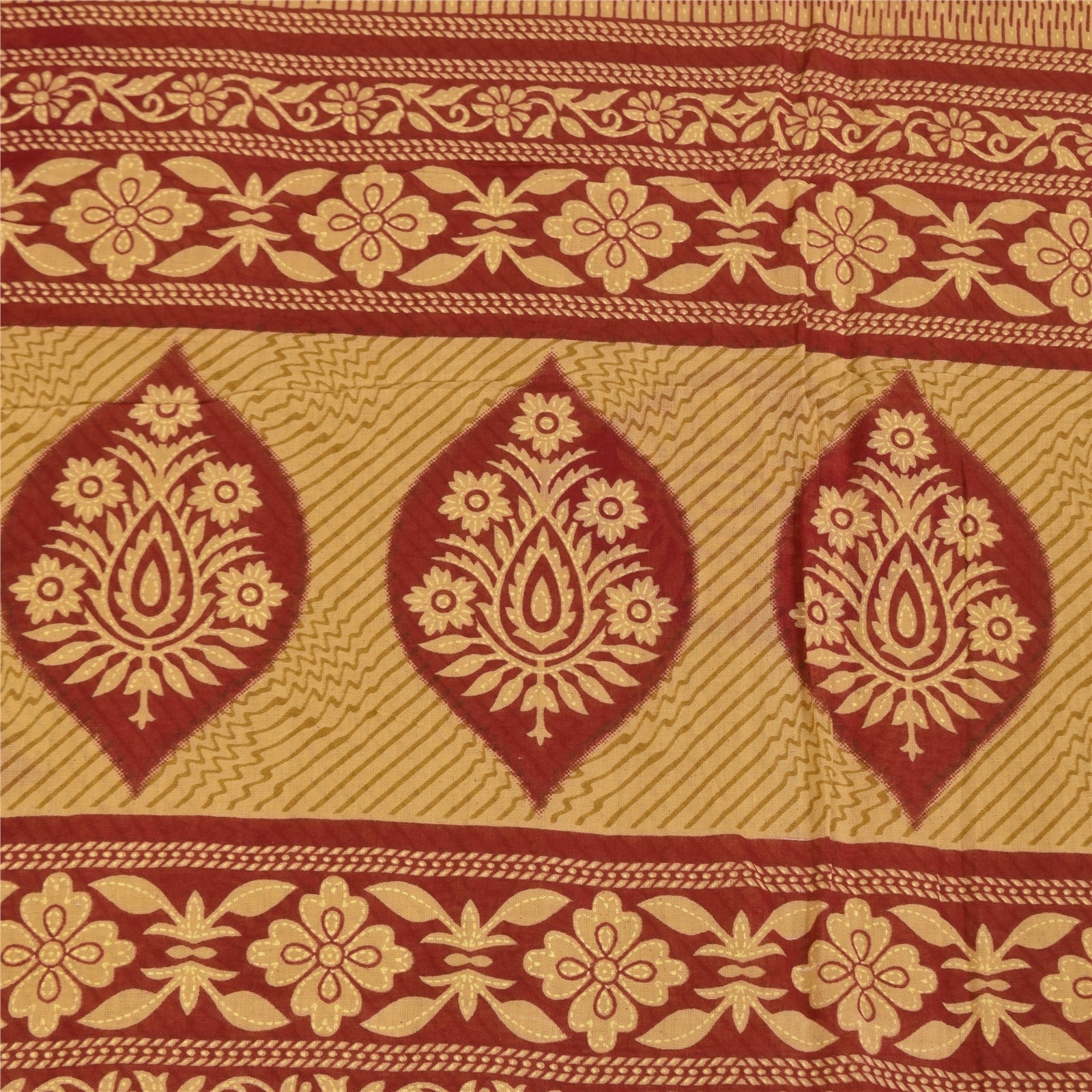 Sanskriti Vintage Sarees Pale Yellow/Red 100% Pure Cotton Print Sari 5+yd Sustainable Fabric