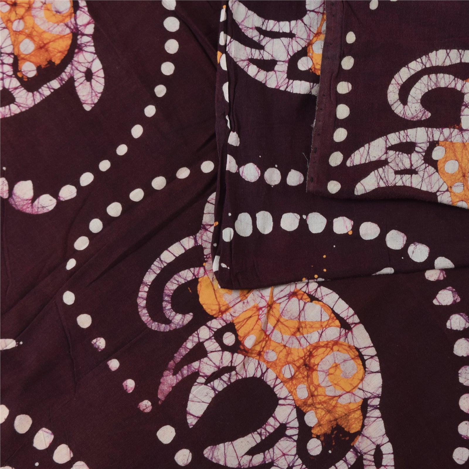 Sanskriti Vintage Sarees Peach/Purple Batik Work Pure Cotton Sari 5+yd Sustainable Fabric