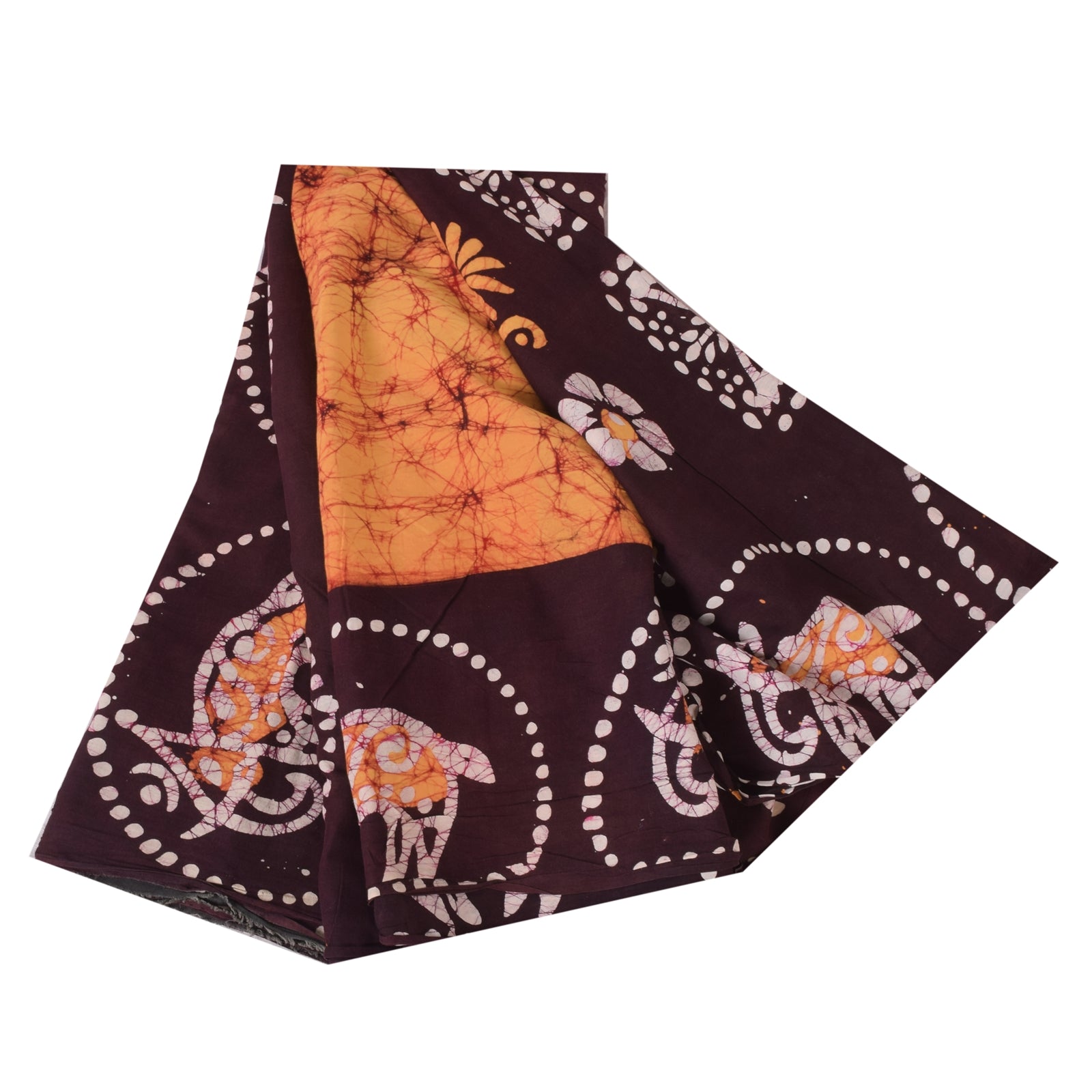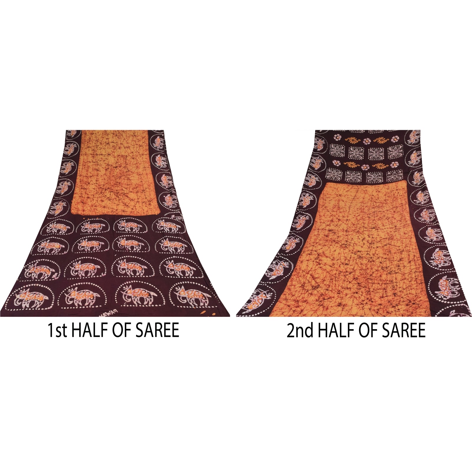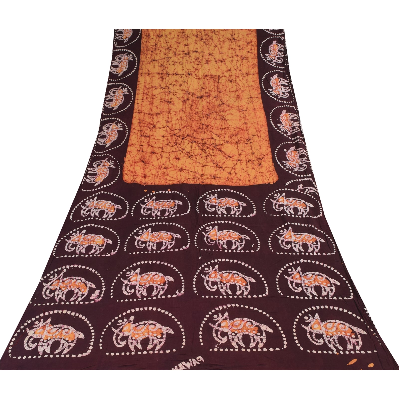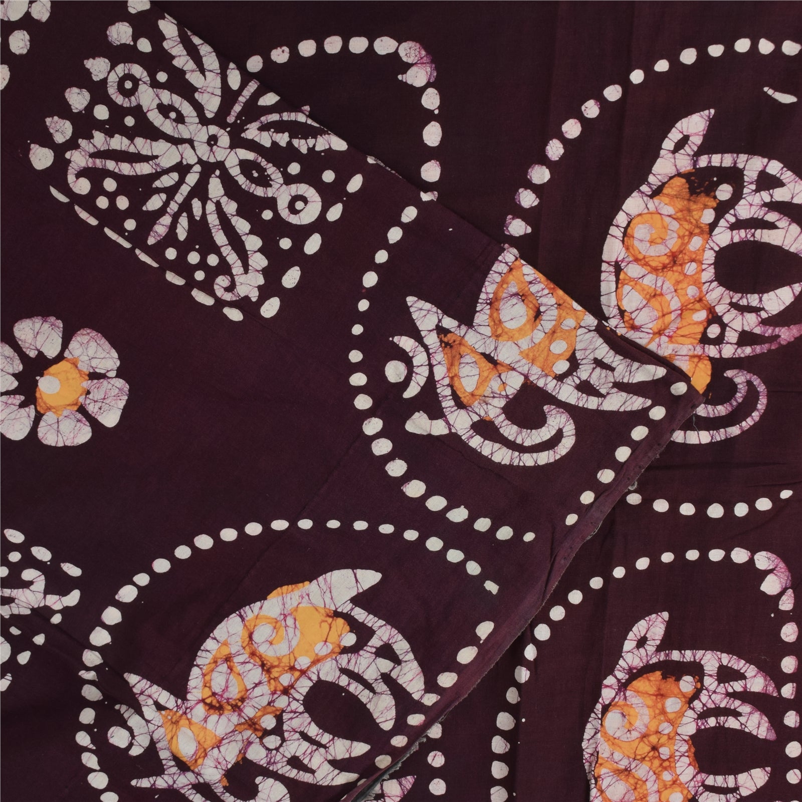 THE ITEM COLOR OR SHADE MAY BE DARKER OR LIGHTER THAN THE PICTURE. Attractive peach & purple colored pure cotton batik work sari. Pallu & Border has elephant design with batik work . Abstract design in center part of saree.. This unique vintage saree can be used for various crafting ideas even if you don't want to use it as a sari. Design a dress, use it as a as window dressing, upholstery, sarongs, throw, dress making and table linen much more. Let your creative juices flow and use this decorated Sustainable Fabric in multiple fashion. Shipping Note: 'International buyers please note: Import duties, taxes, and charges are not included in the item price or postage cost. These charges are the buyer's responsibility. Please check with your country's customs office to determine what these additional costs will be prior to bidding or buying. Buyer will pay custom duty/tax. It is calculated and charged differently by every country. As a seller I do not have any control over it. VAT or sales tax is calculated by the platform at the time of checkout. Customs charge is payable at the time of delivery.' PCS-6298
