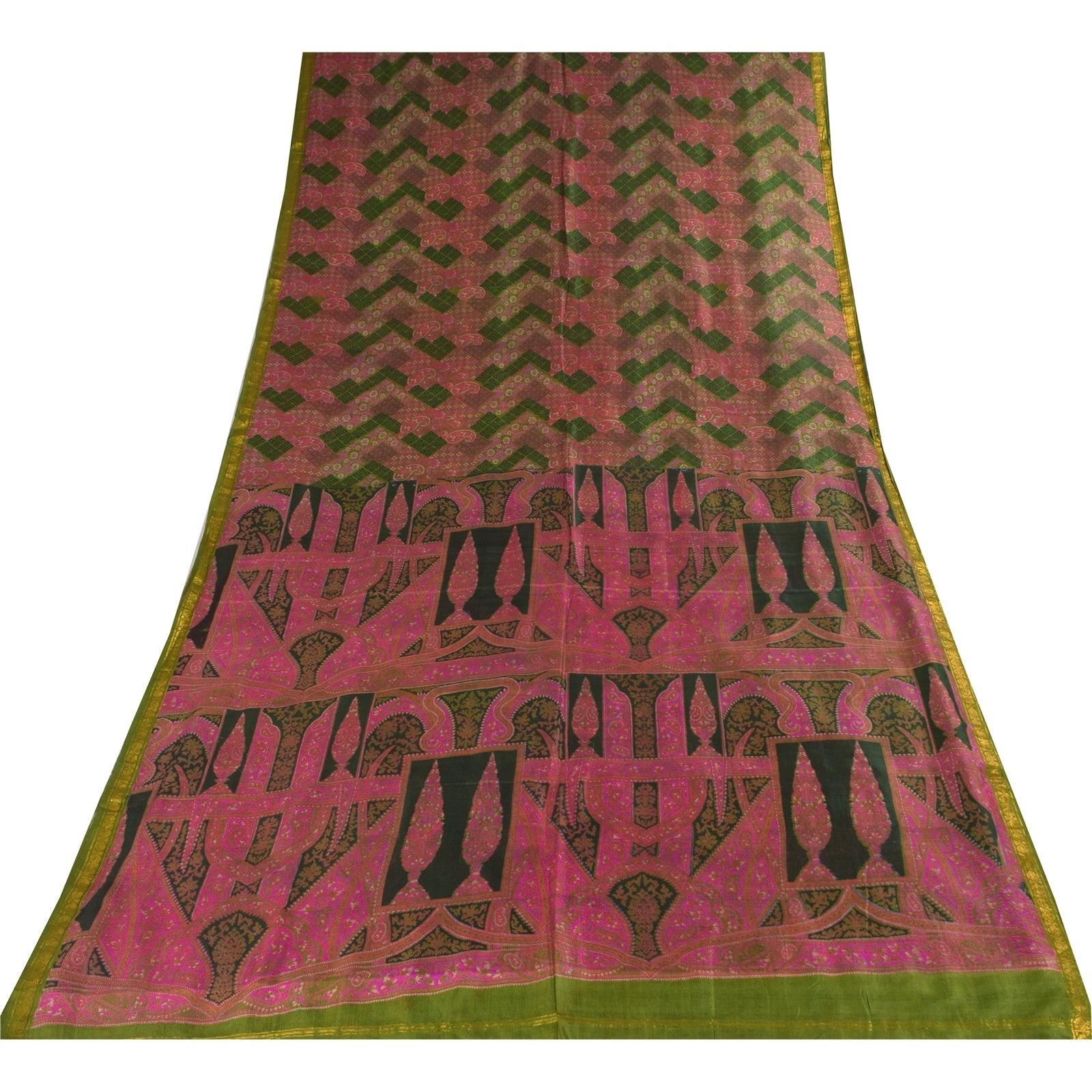 THE ITEM COLOR OR SHADE MAY BE DARKER OR LIGHTER THAN THE PICTURE.' • Beautiful pink & green colored printed pure silk saree . • Pallu & Border has printed floral design & golden zari woven work. • Similar design in center part of sari . This unique vintage saree can be used for various crafting ideas even if you don't want to use it as a sari. Design a dress, use it as a as window dressing, upholstery, sarongs, throw, dress making and table linen much more. Let your creative juices flow and use this decorated Sustainable Fabric in multiple fashion. International buyers please note: Import duties, taxes, and charges are not included in the item price or postage cost. These charges are the buyer's responsibility. Please check with your country's customs office to determine what these additional costs will be prior to bidding or buying.Buyer will pay custom duty/tax. It is calculated and charged differently by every country. As a seller I do not have any control over it. VAT or sales tax is calculated by the platform at the time of checkout. Customs charge is payable at the time of delivery. pr-69563