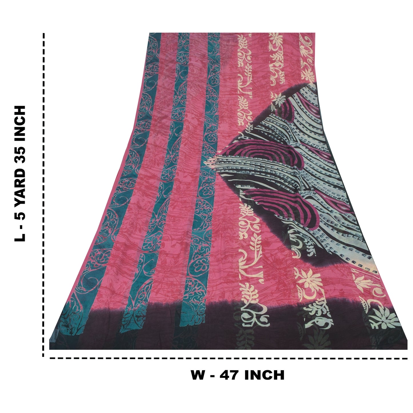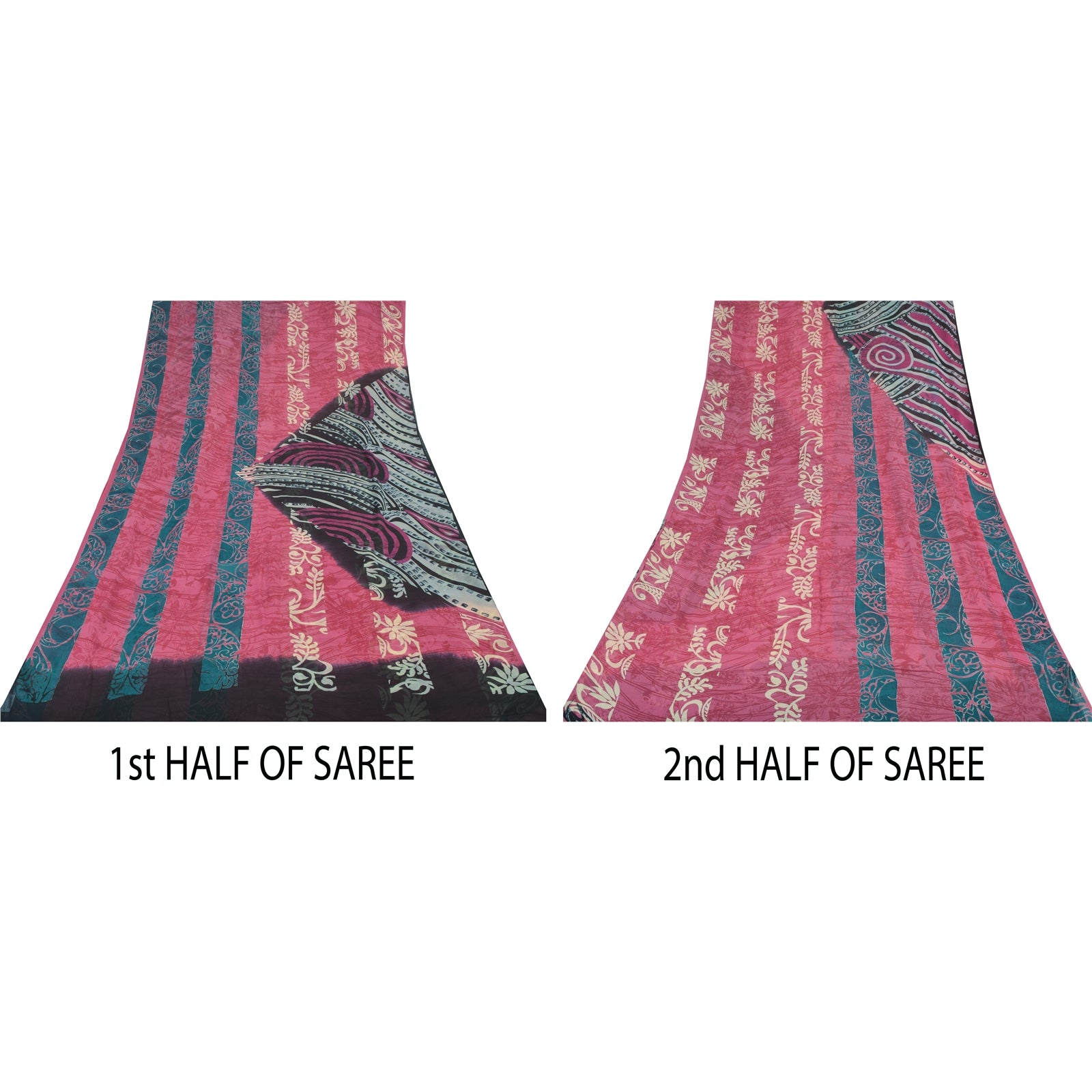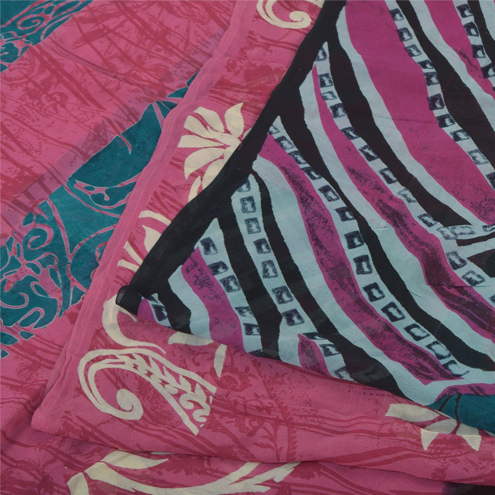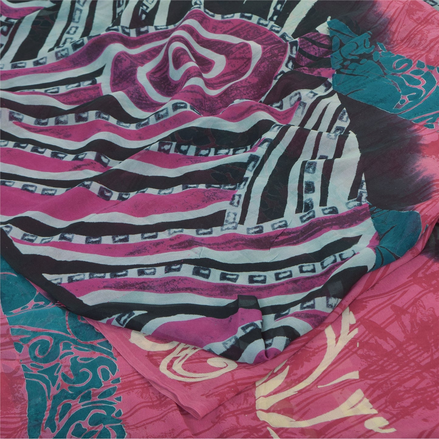 Sanskriti Vintage Sarees Pink Pure Georgette Silk Printed Sari 5yd Craft Sustainable Fabric
