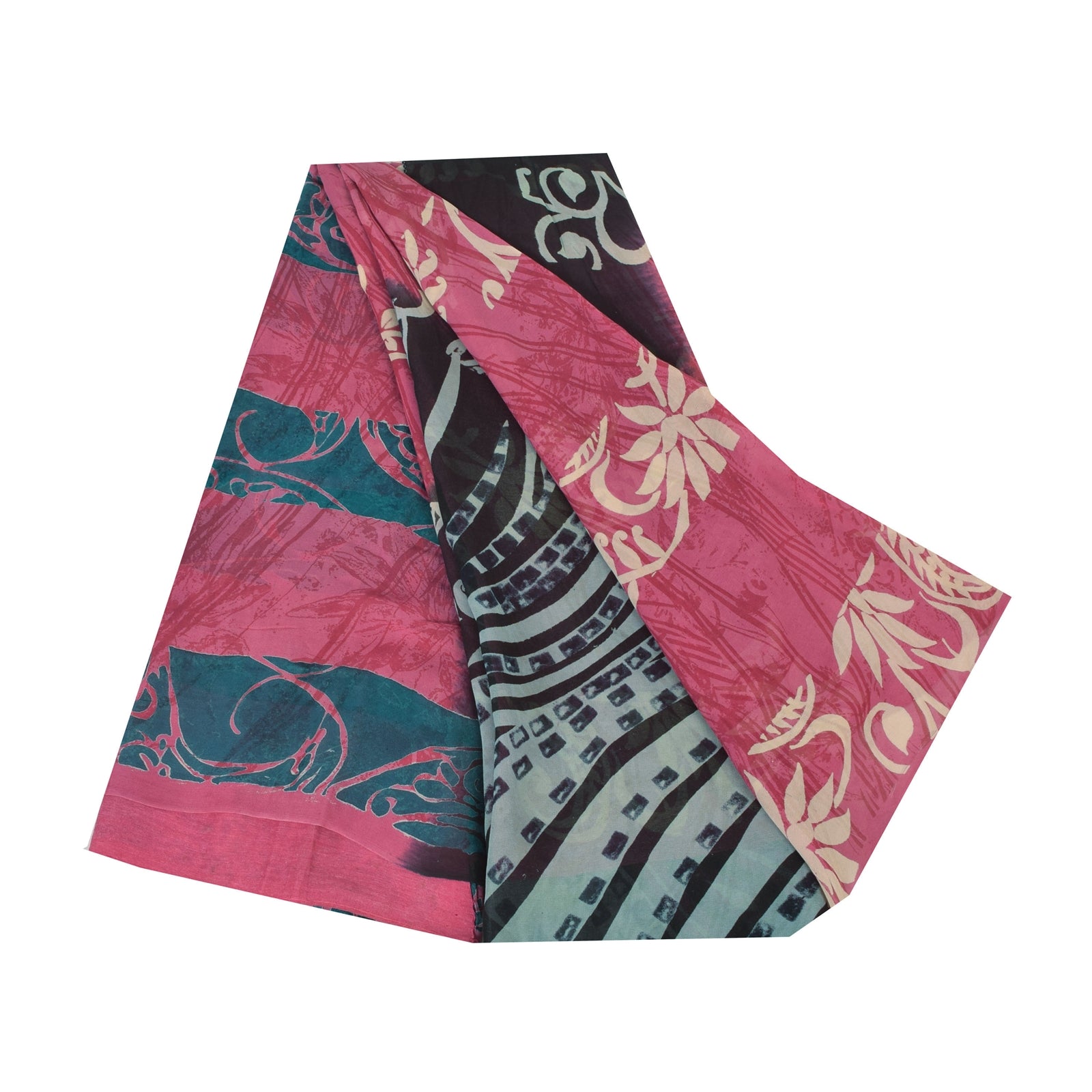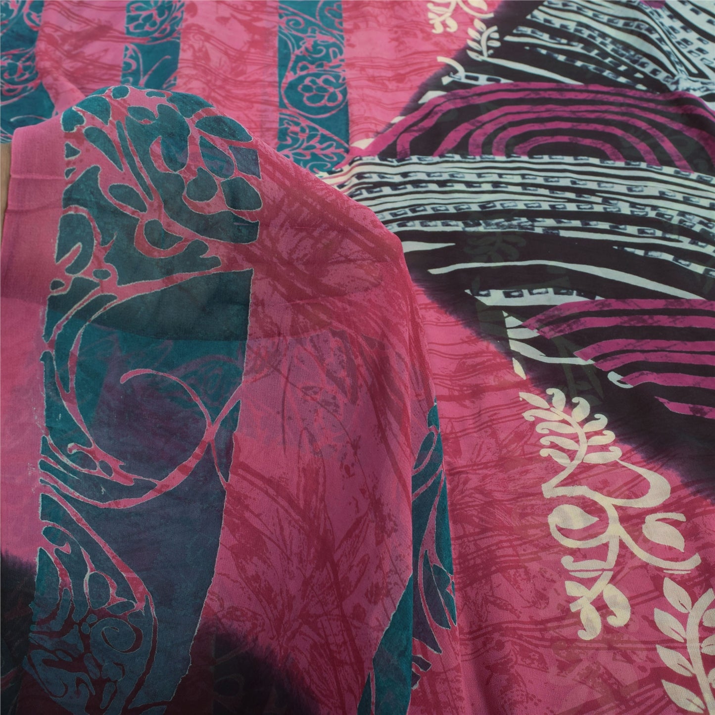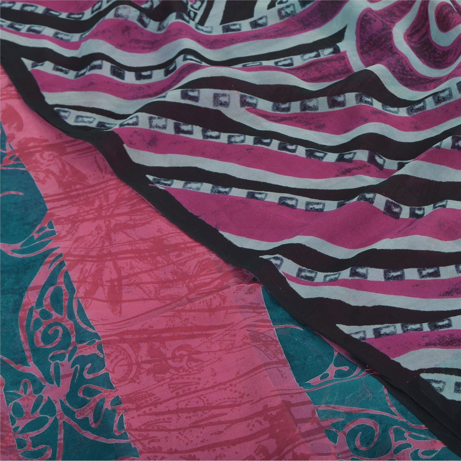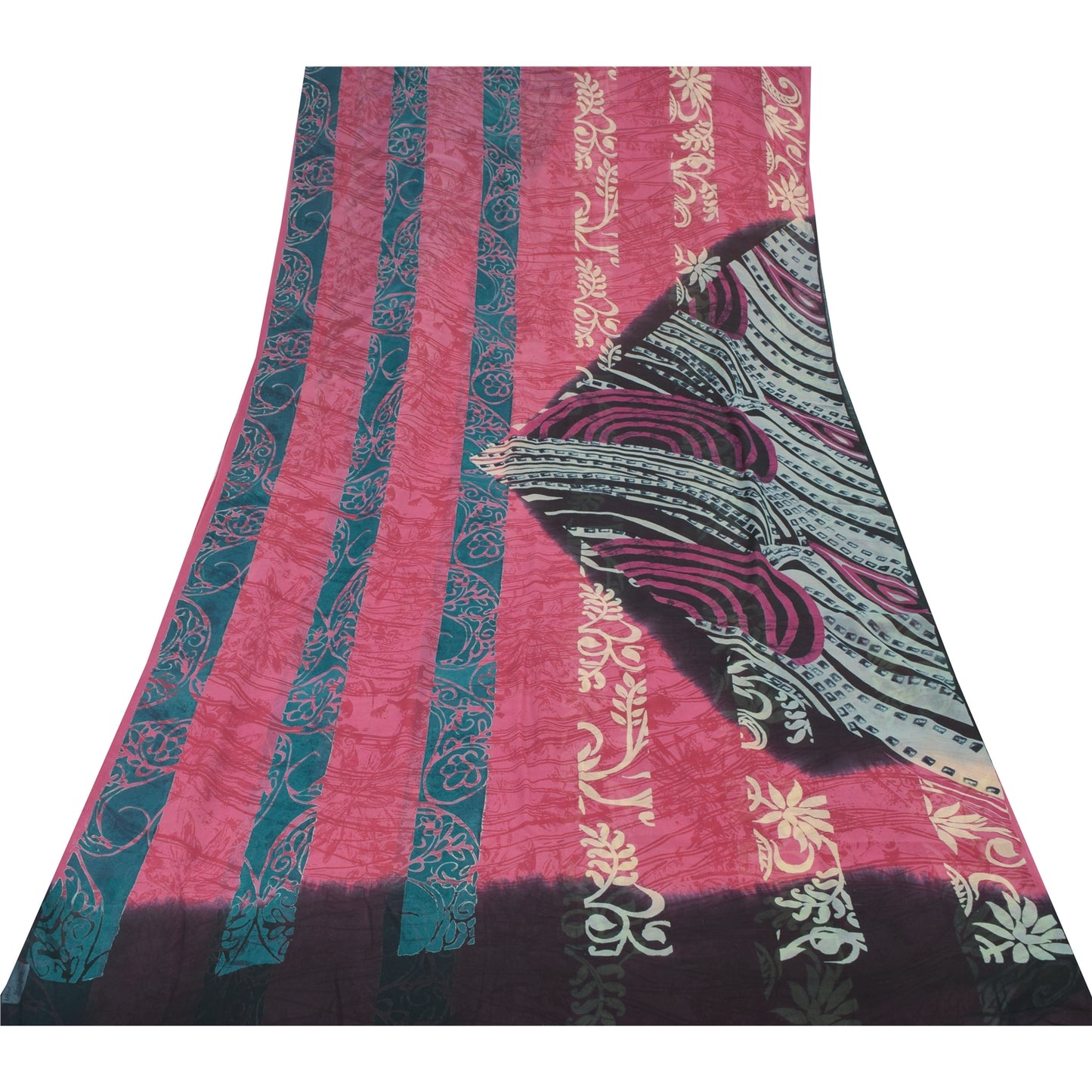 Sanskriti Vintage Sarees Pink Pure Georgette Silk Printed Sari 5yd Craft Sustainable Fabric