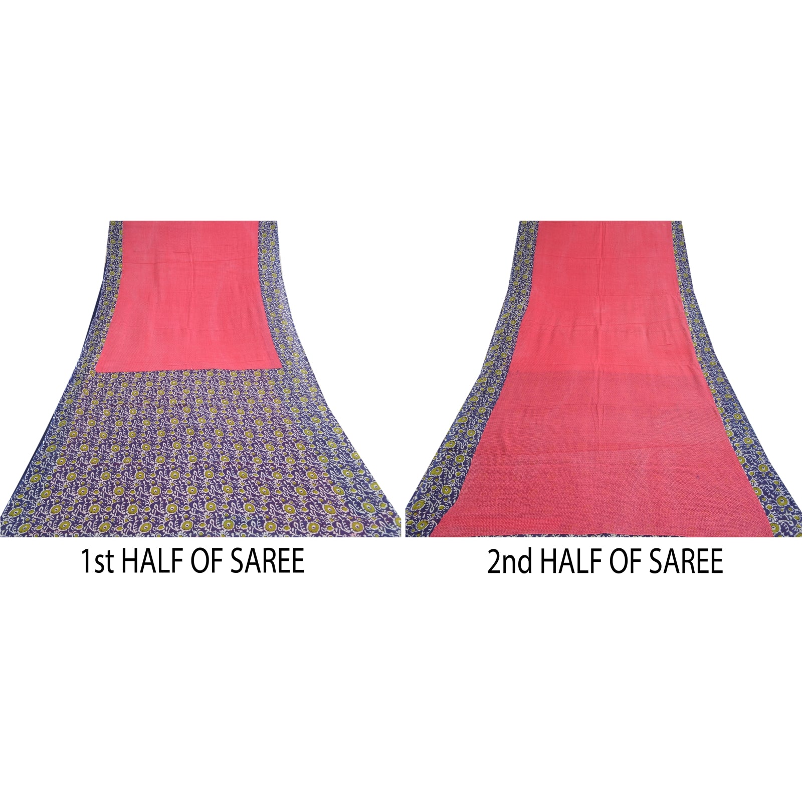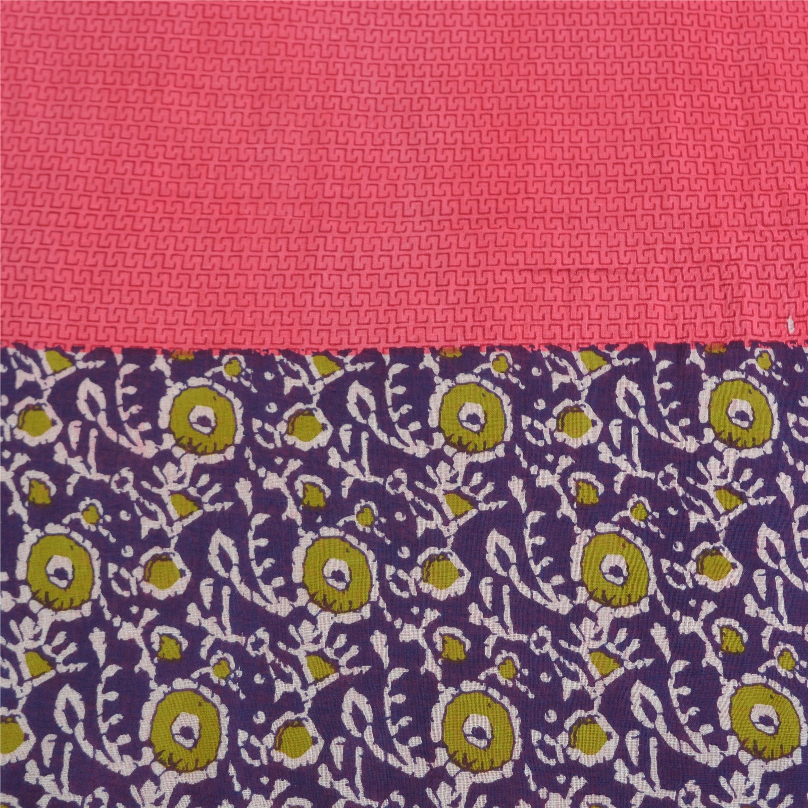 Sanskriti Vintage Sarees Pink/Purple Pure Cotton Printed Sari 5yd Craft Sustainable Fabric