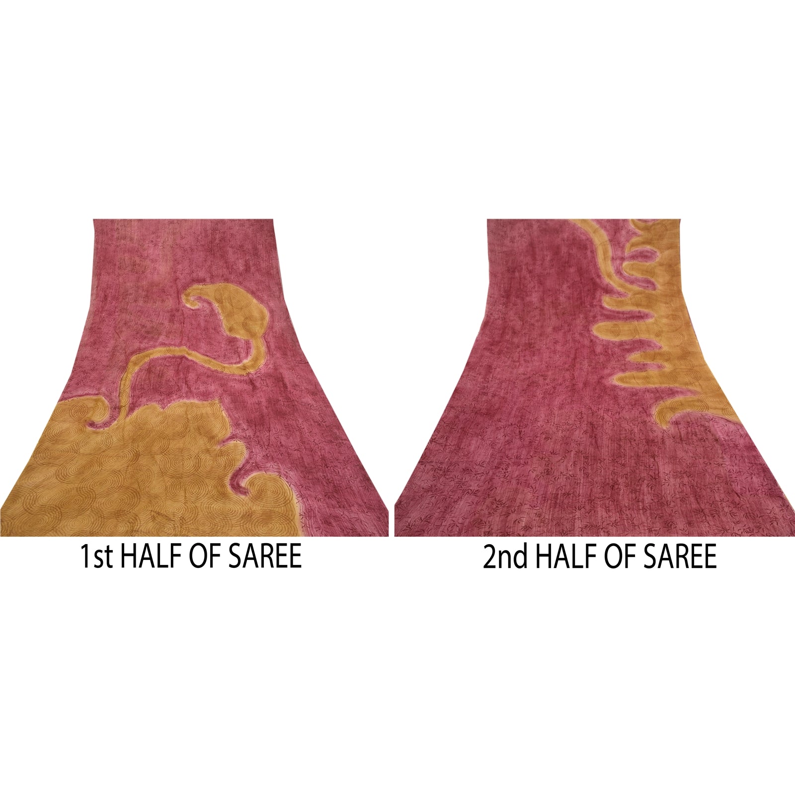 Beautiful purple & mustard colored blend georgette printed saree. Pallu & border has printed floral design. Similar design in center part of saree. What is special about this saree? Brilliant design on soft Sustainable Fabric is really enhancing the beauty of the saree.This unique vintage saree can be used for various crafting ideas even if you don't want to use it as a sari. Design a dress, use it as a as window dressing, upholstery, sarongs, throw, dress making and table linen much more. Let your creative juices flow and use this decorated Sustainable Fabric in multiple fashion.