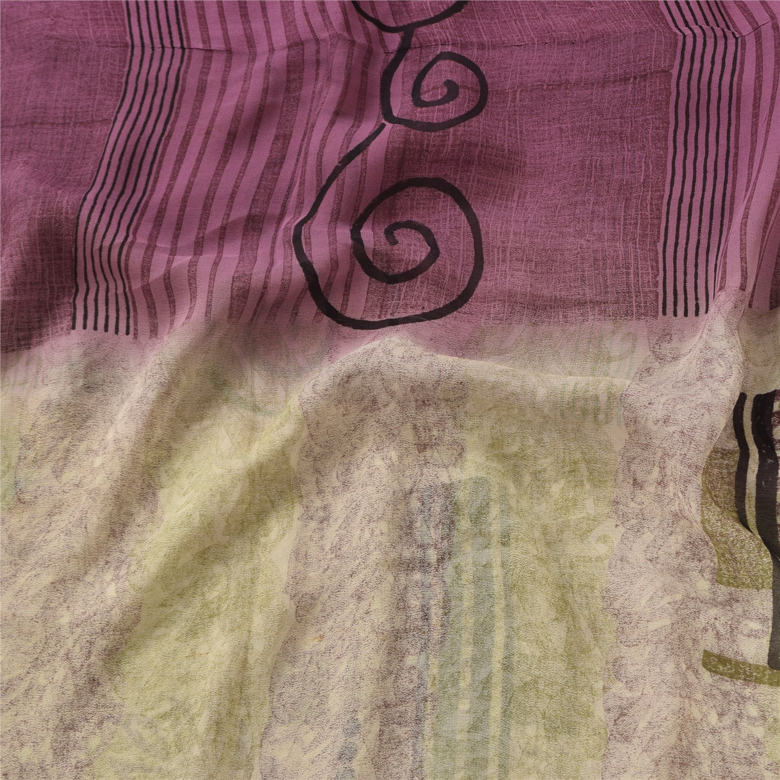Sanskriti Vintage Sarees Purple/CreamPure Georgette Silk Printed Sari 5yd Sustainable Fabric