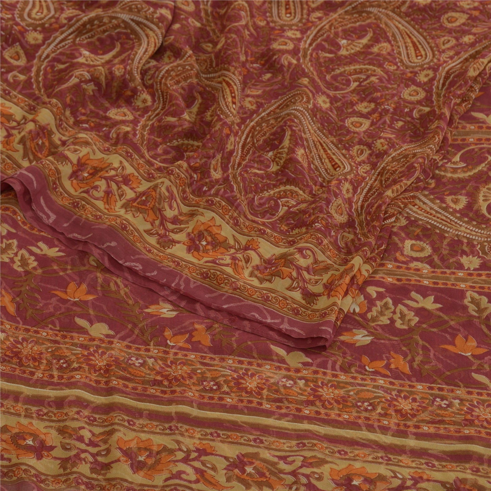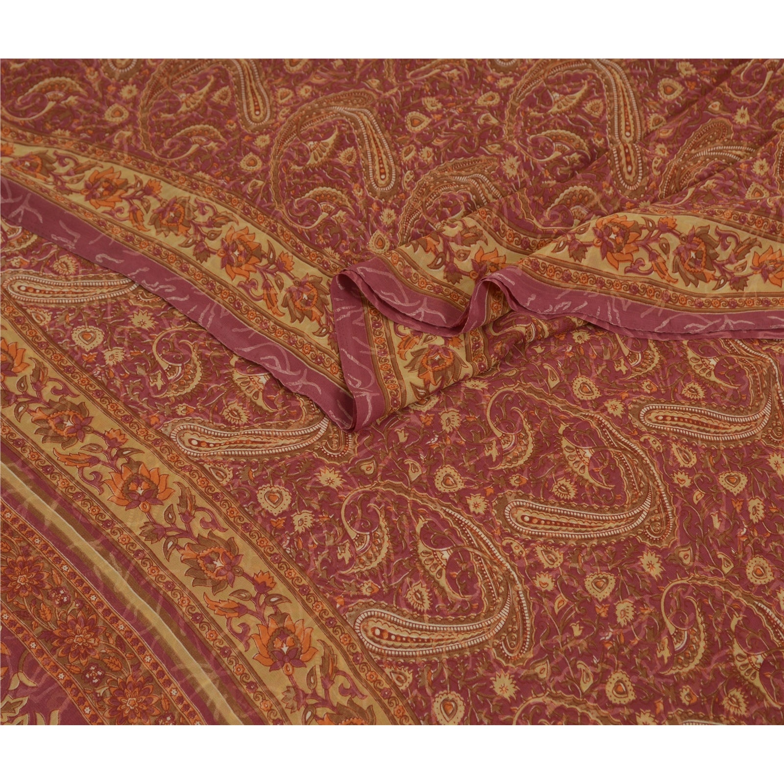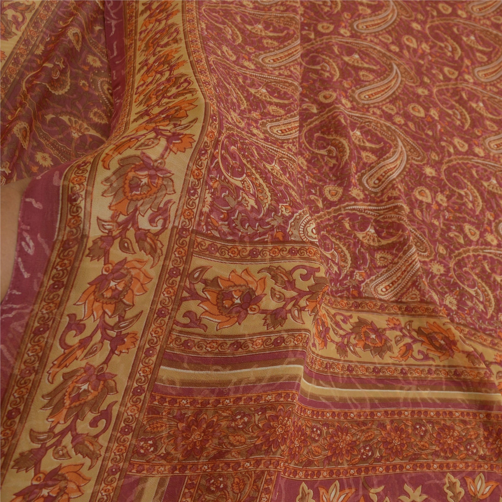 Sanskriti Vintage Sarees Purple Pure Georgette Silk Printed Sari Craft Sustainable Fabric