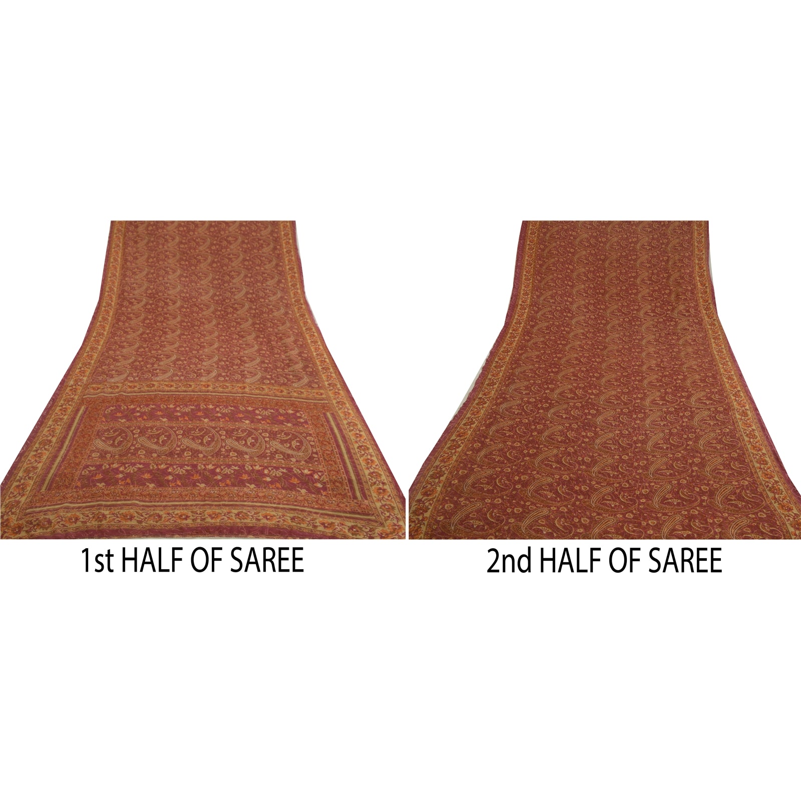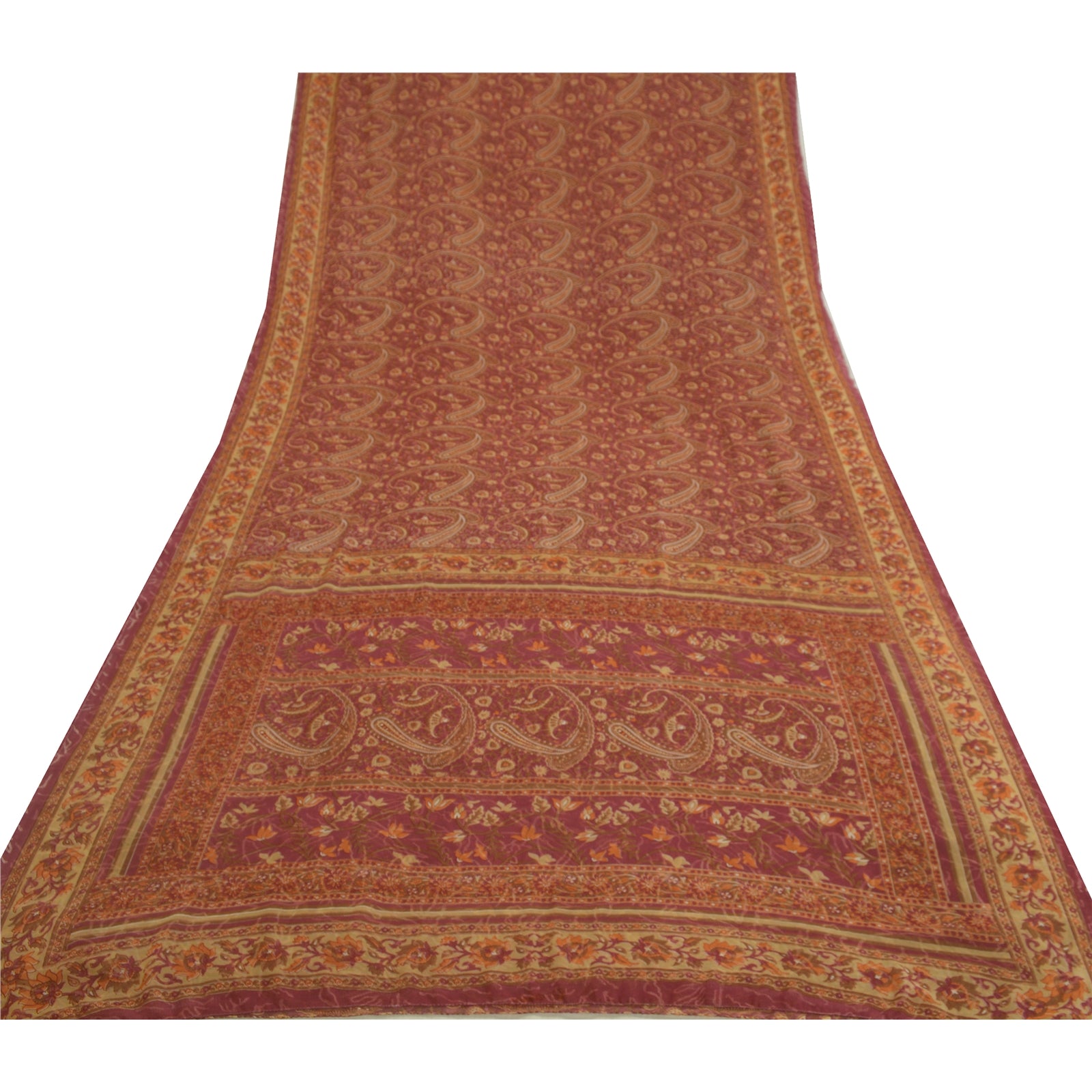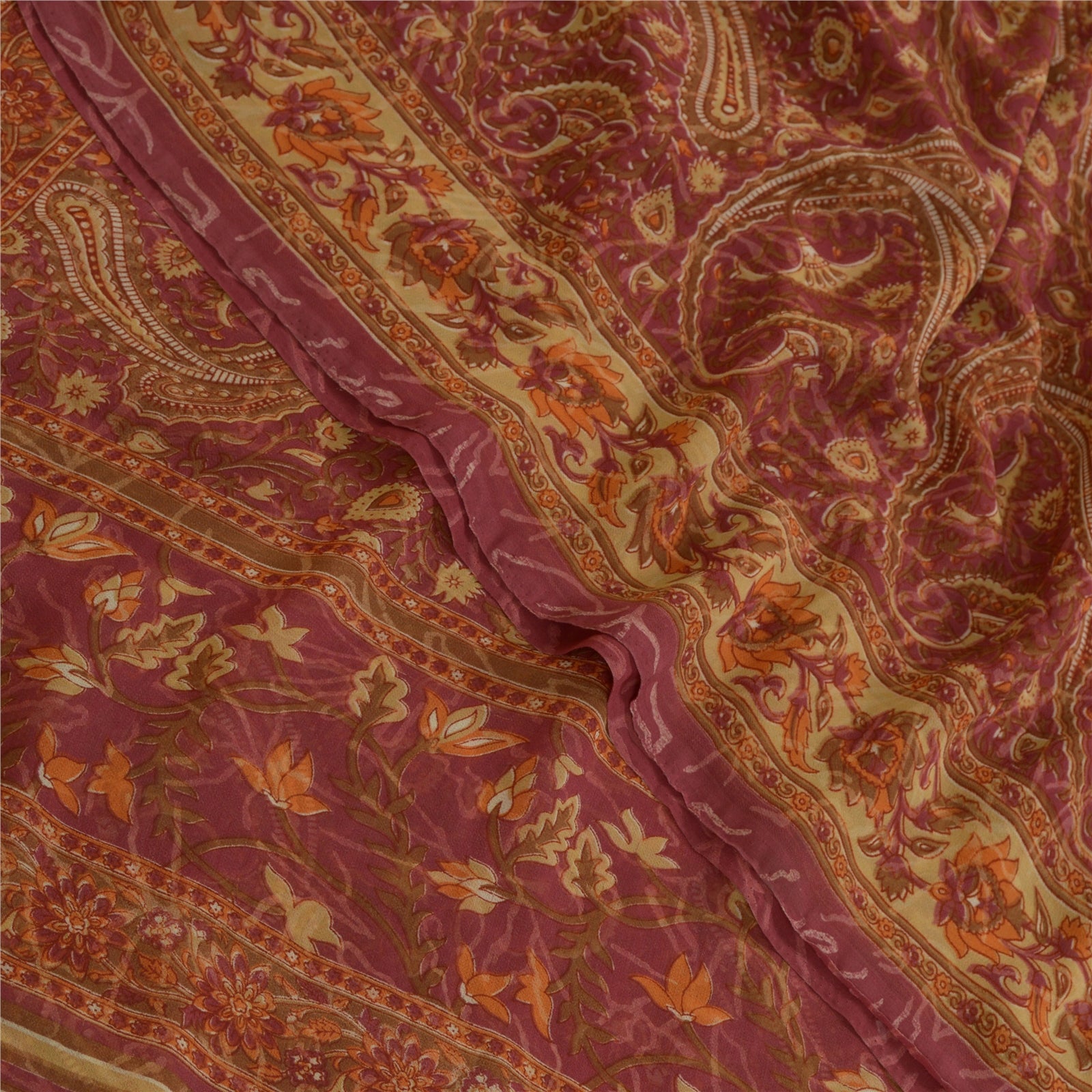 Sanskriti Vintage Sarees Purple Pure Georgette Silk Printed Sari Craft Sustainable Fabric