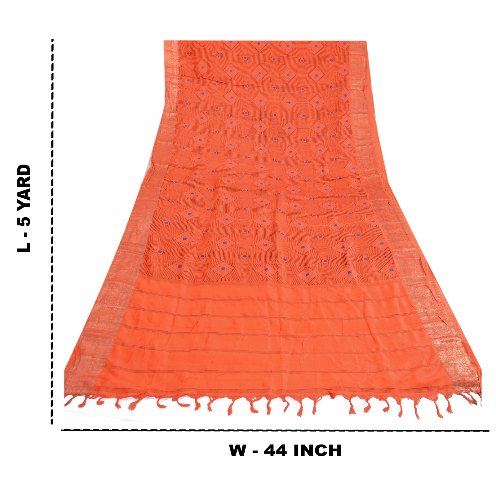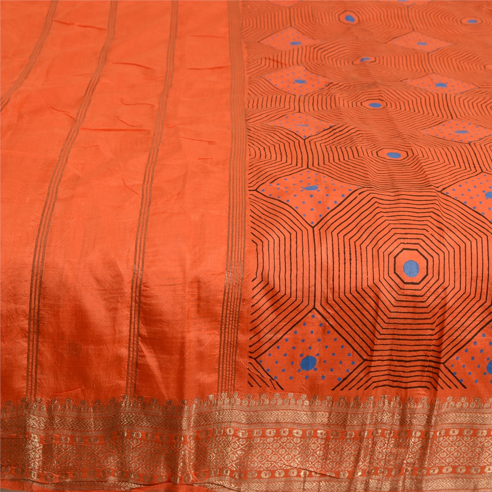 THE ITEM COLOR OR SHADE MAY BE DARKER OR LIGHTER THAN THE PICTURE.' Beautiful orange colored pure silk printed saree. Pallu & Border has lines & floral design with golden zari woven work. Printed geometric design in center part of saree. This unique vintage saree can be used for various crafting ideas even if you don't want to use it as a sari. Design a dress, use it as a as window dressing, upholstery, sarongs, throw, dress making and table linen much more. Let your creative juices flow and use this decorated Sustainable Fabric in multiple fashion. International buyers please note: Import duties, taxes, and charges are not included in the item price or postage cost. These charges are the buyer's responsibility. Please check with your country's customs office to determine what these additional costs will be prior to bidding or buying. Buyer will pay custom duty/tax. It is calculated and charged differently by every country. As a seller I do not have any control over it.VAT or sales tax is calculated by the platform at the time of checkout. Customs charge is payable at the time of delivery.