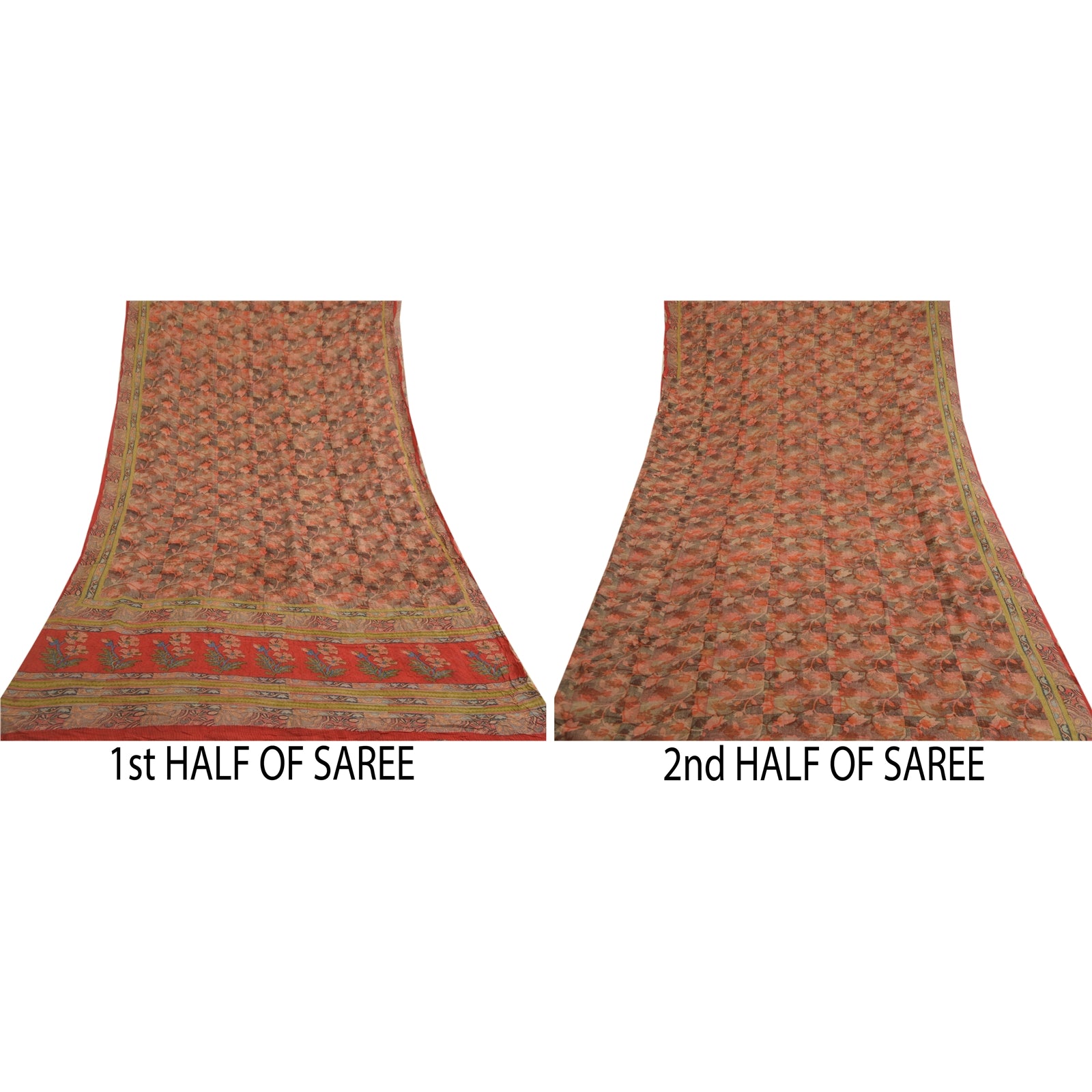 Sanskriti Vintage Sarees Red 100% Pure Georgette Silk Printed Sari Craft Sustainable Fabric
