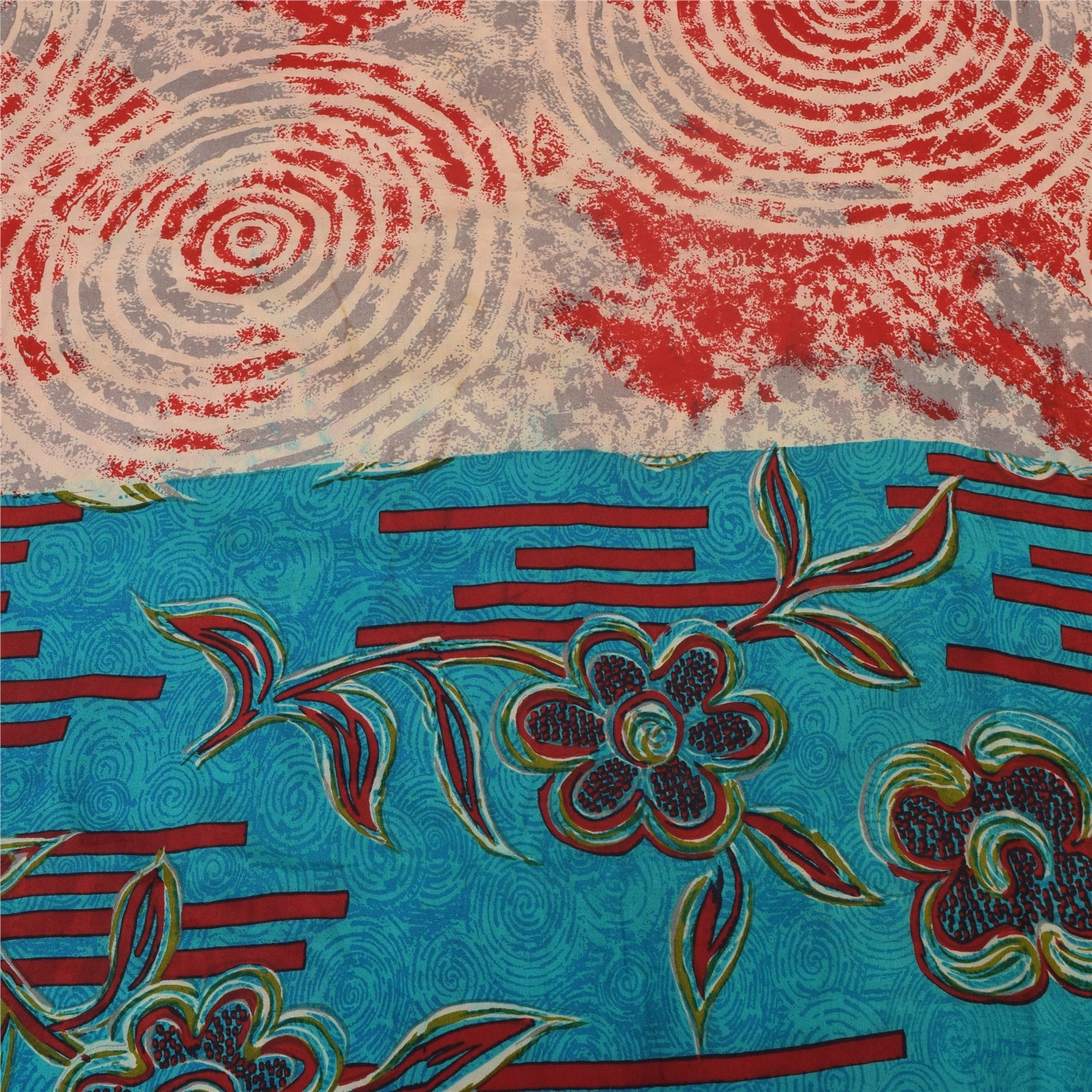 Sanskriti Vintage Sarees Red/Blue Pure Crepe Silk Printed Sari 5yd Craft Sustainable Fabric