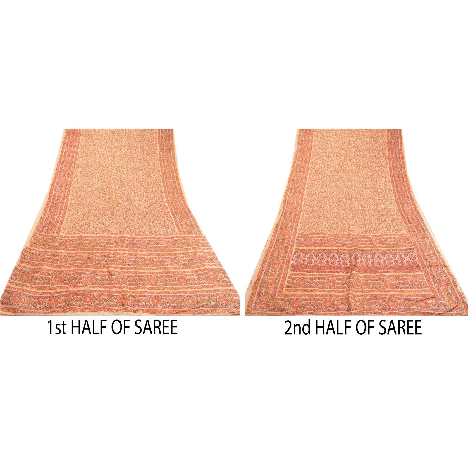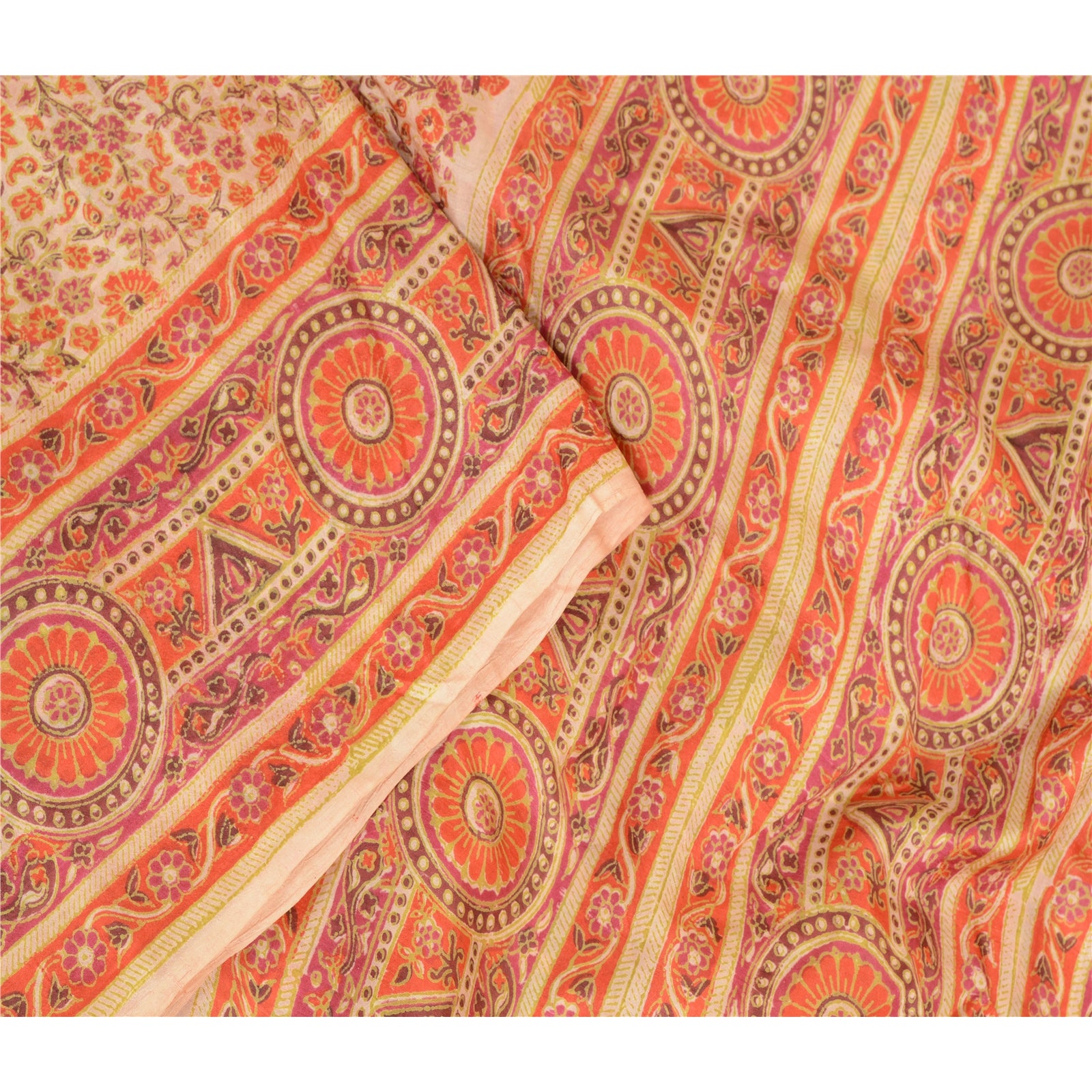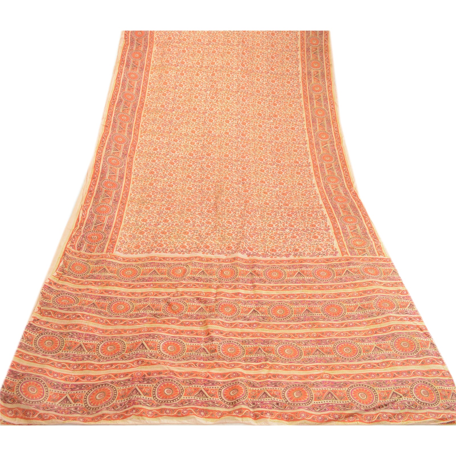 Sanskriti Vintage Sarees Red Indian Printed Pure Silk Sari Soft 5yd Craft Sustainable Fabric
