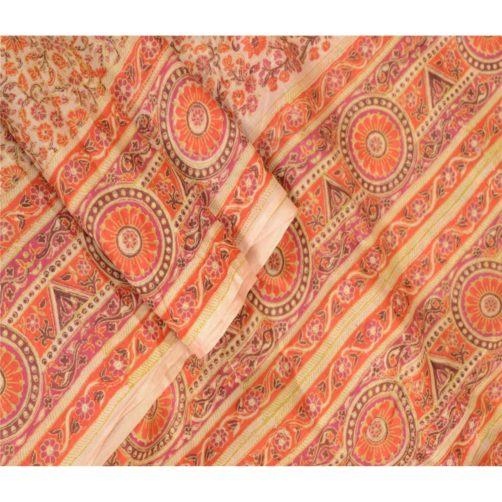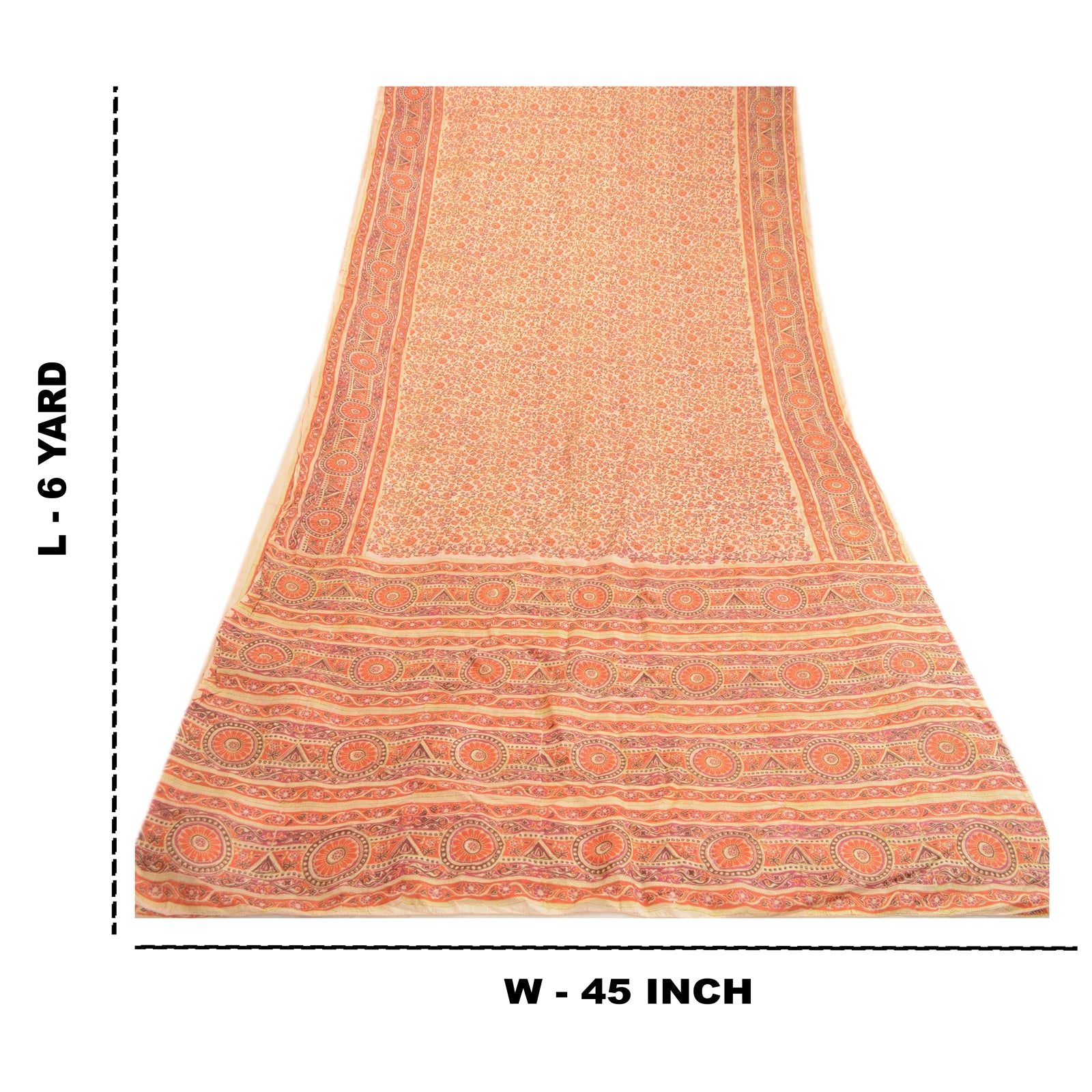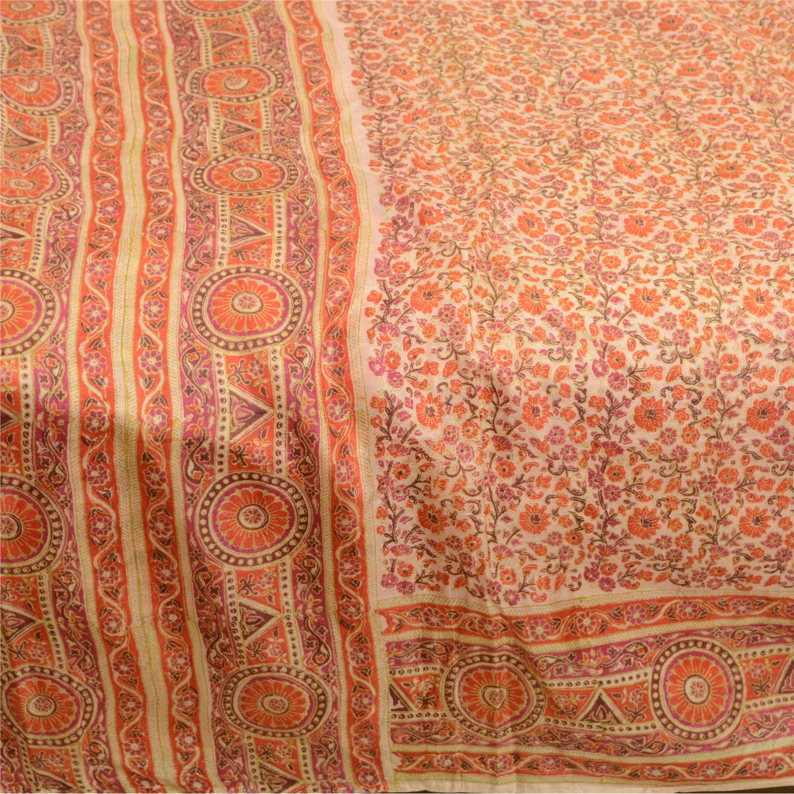 Sanskriti Vintage Sarees Red Indian Printed Pure Silk Sari Soft 5yd Craft Sustainable Fabric