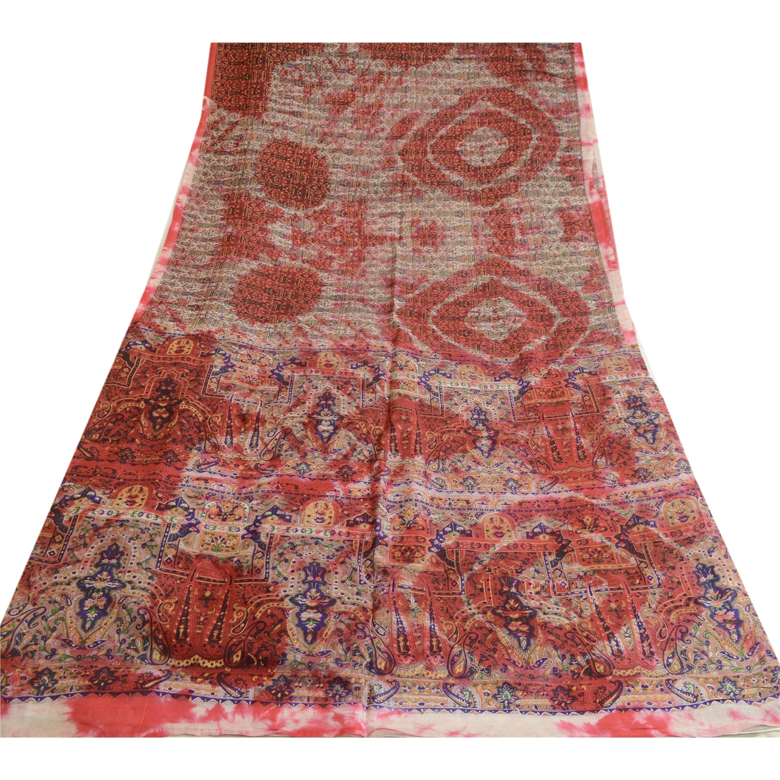 Sanskriti Vintage Sarees Red/ivory Tie-Dye Pure Silk Printed Sari Craft Sustainable Fabric