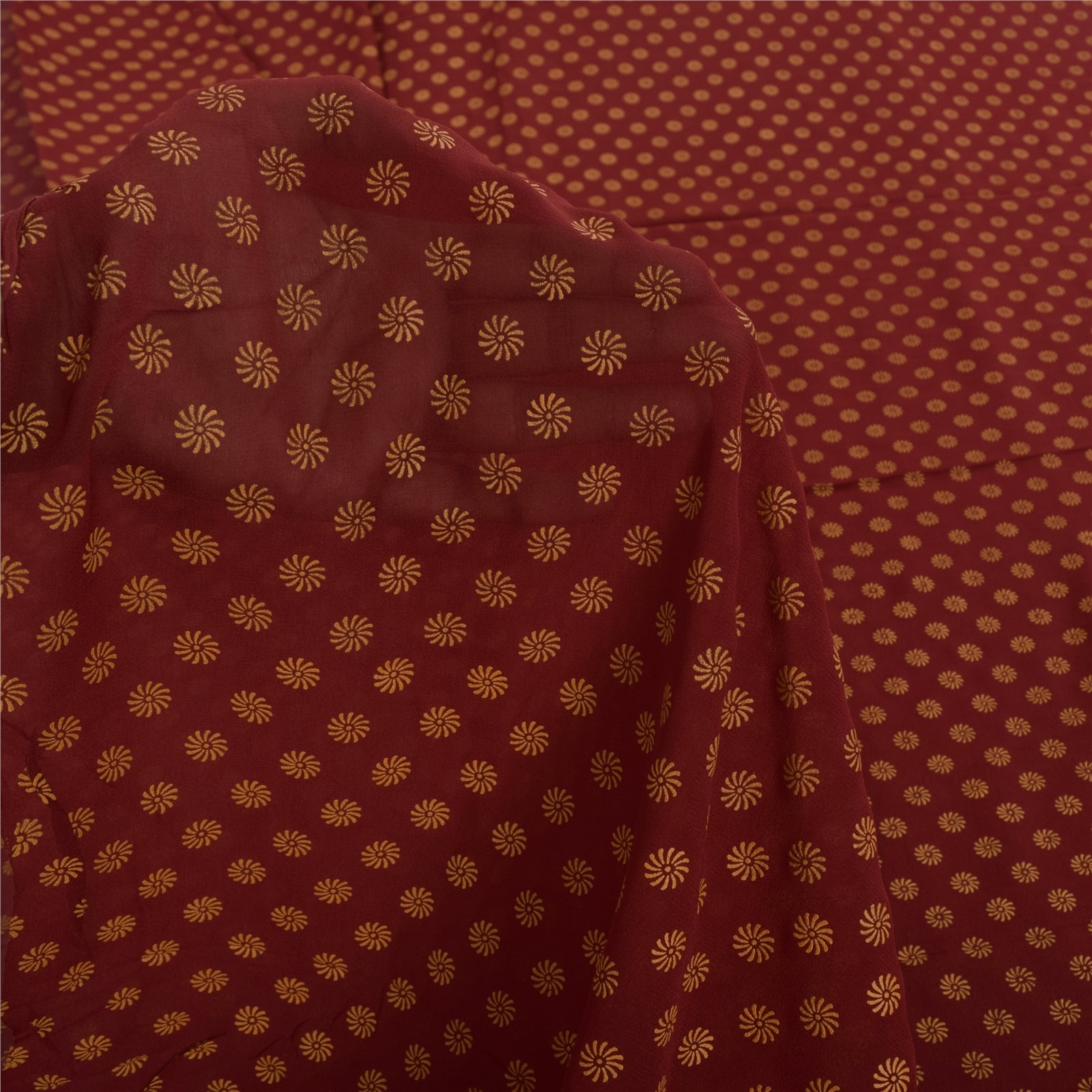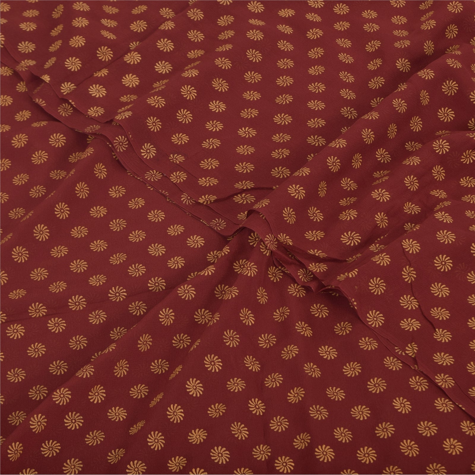 Sanskriti Vintage Sarees Red Pure Georgette Silk Printed Sari 5+yd Craft Sustainable Fabric