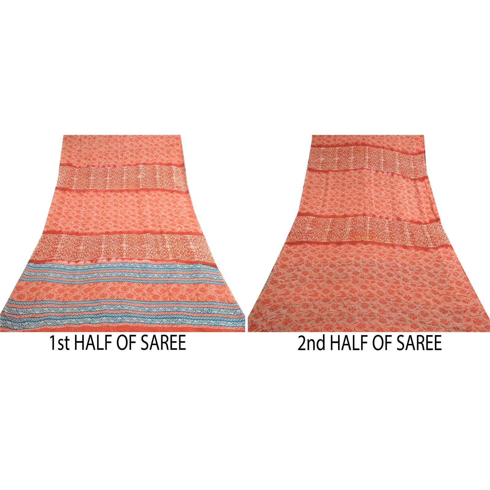 Sanskriti Vintage Sarees Red Pure Georgette Silk Printed Sari 5yd Craft Sustainable Fabric