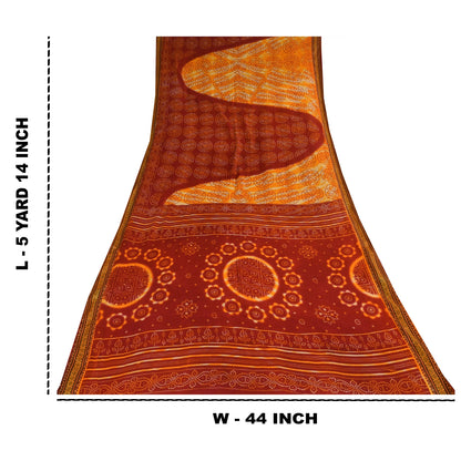 Sanskriti Vintage Sarees Red/Yellow Bandhani Pure Cotton Print Sari 5+yd Sustainable Fabric