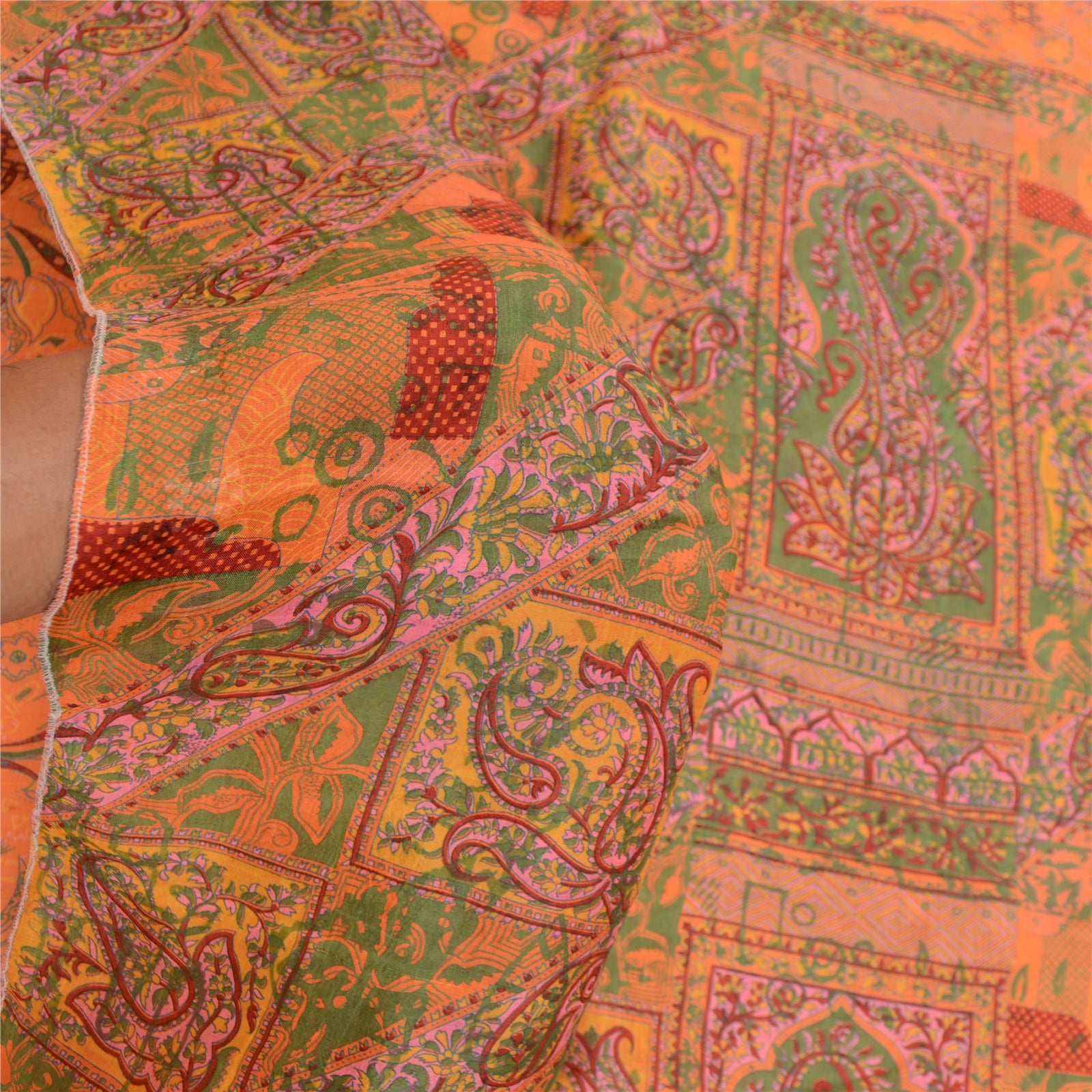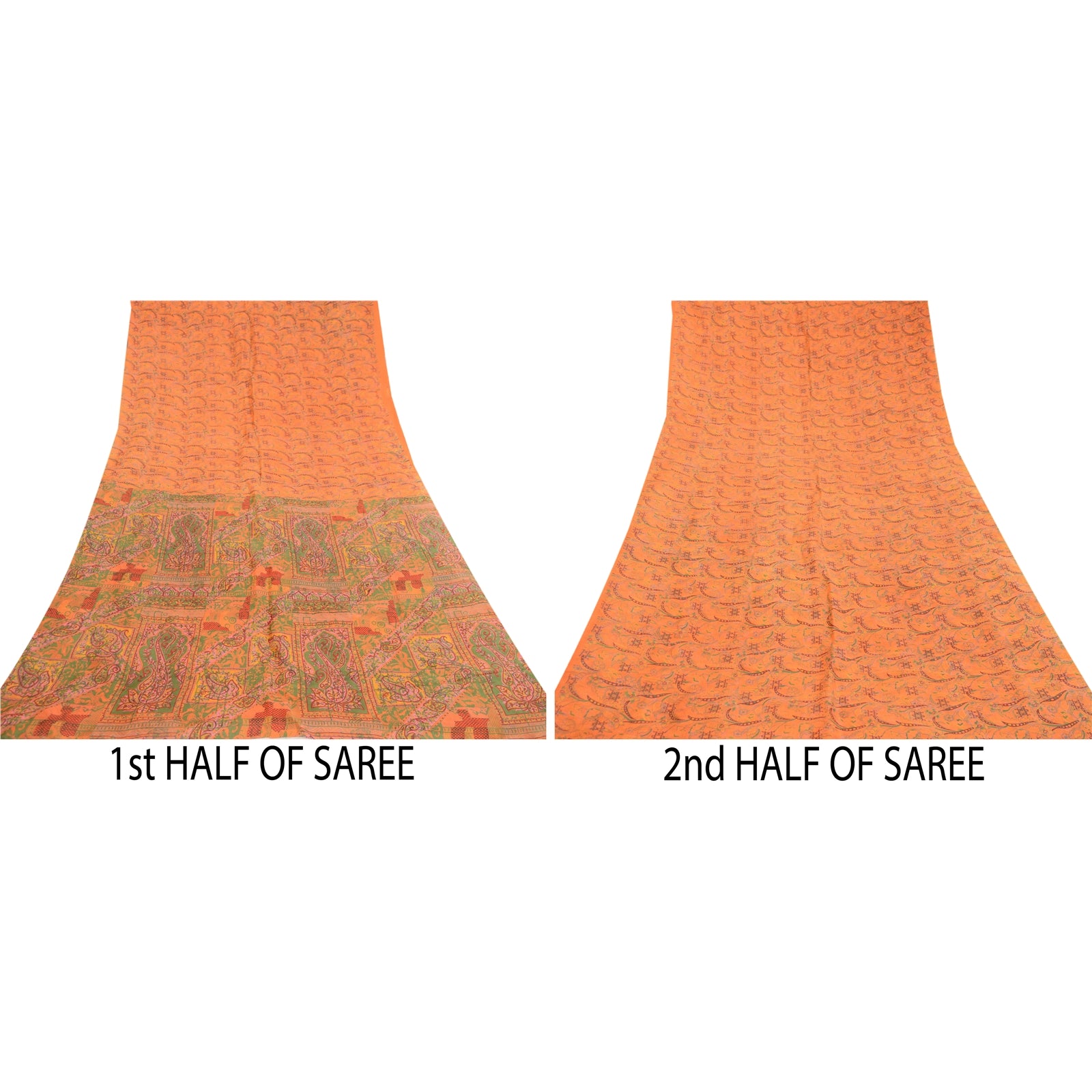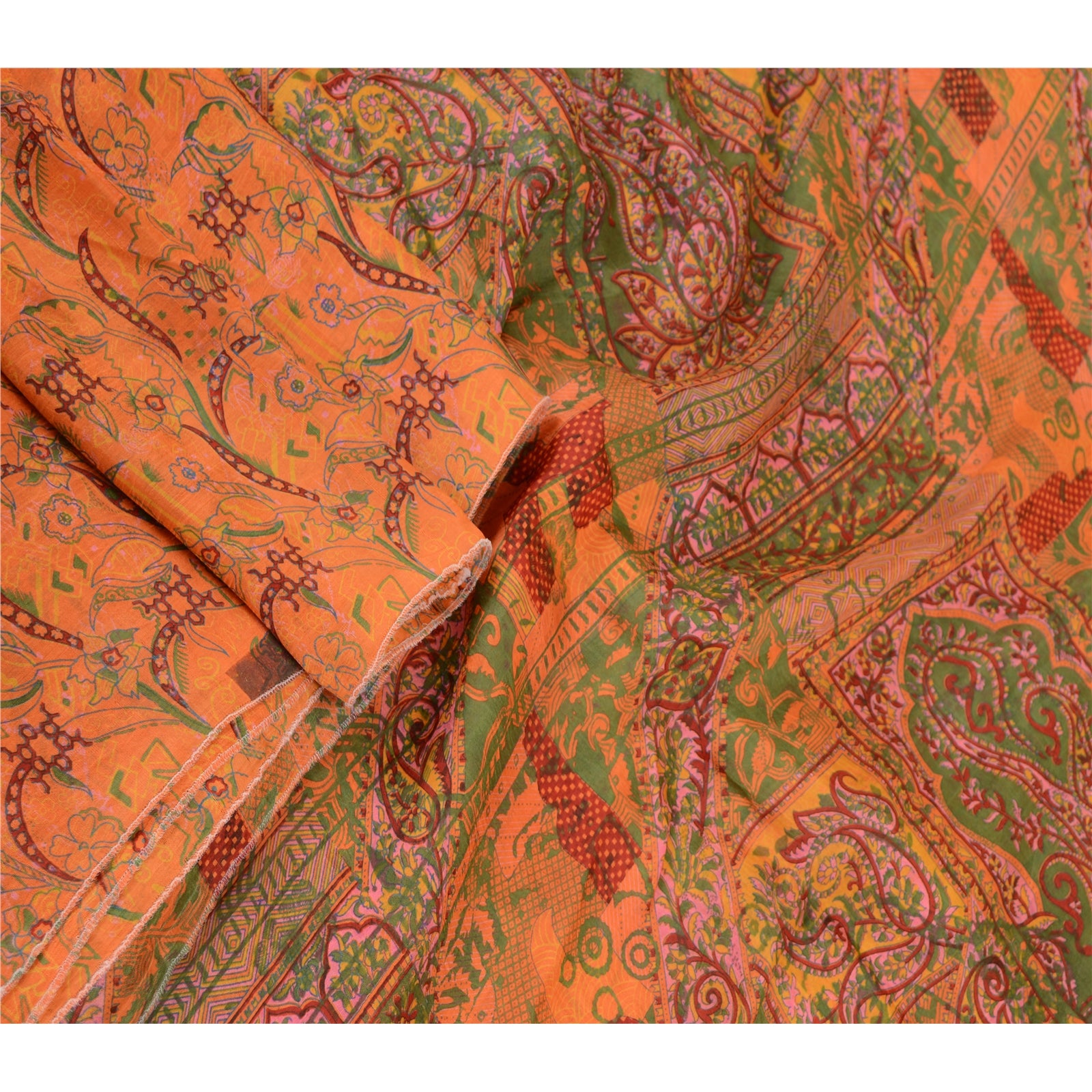 Sanskriti Vintage Sarees Saffron 100% Pure Silk Printed Sari Soft Craft Sustainable Fabric