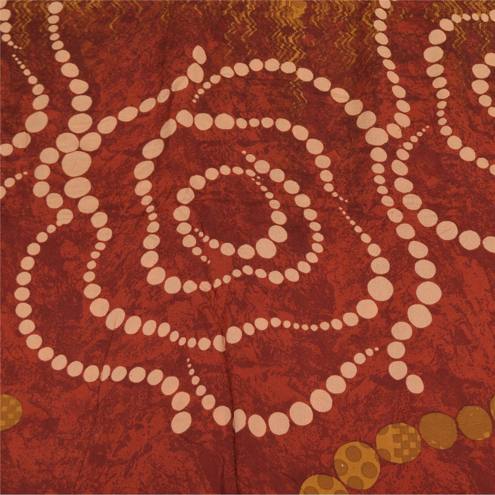 Sanskriti Vintage Sarees Saffron Pure Crepe Silk Printed Sari 5+yd Craft Fabric