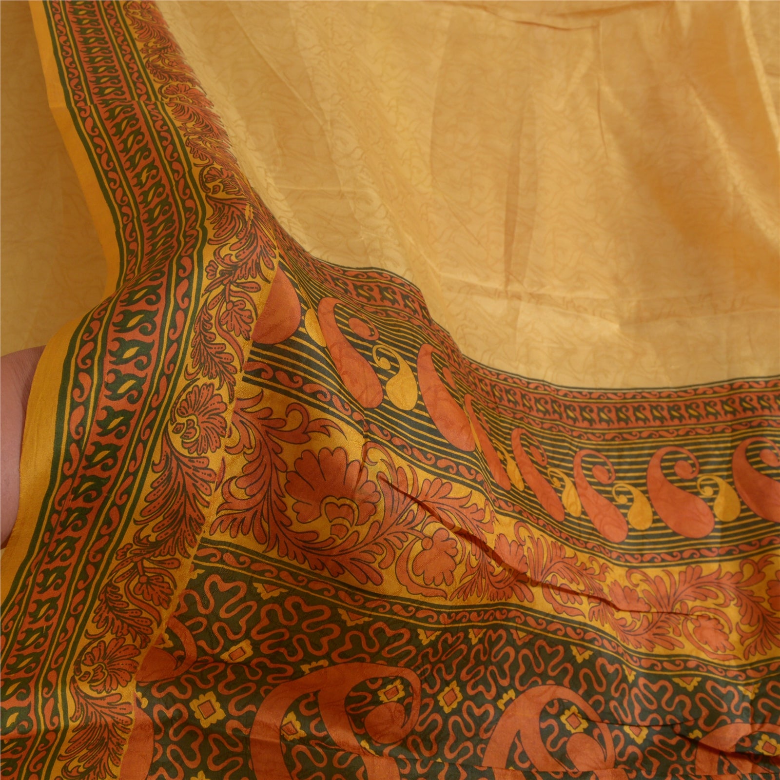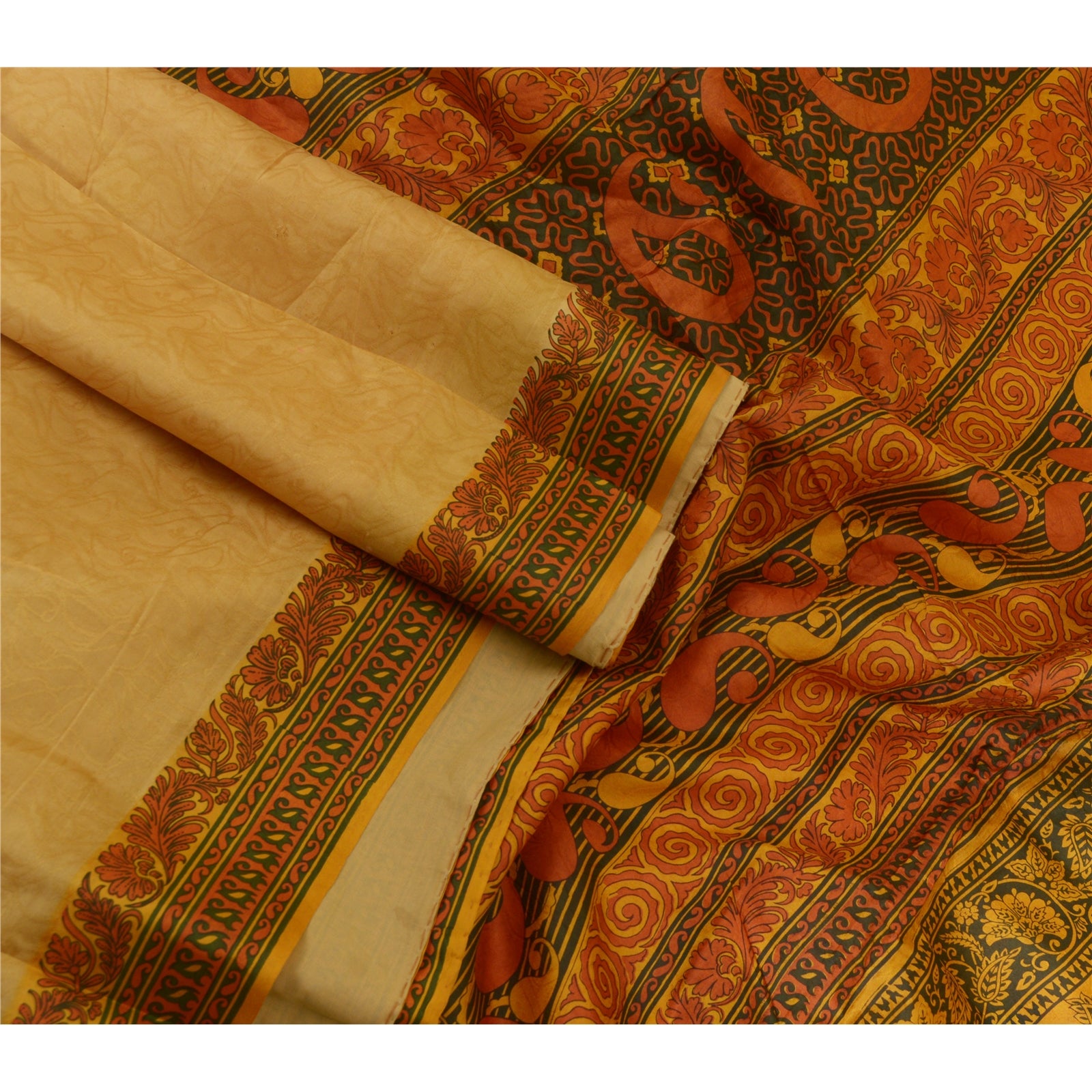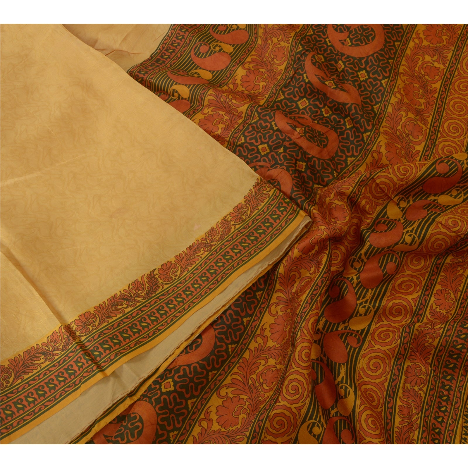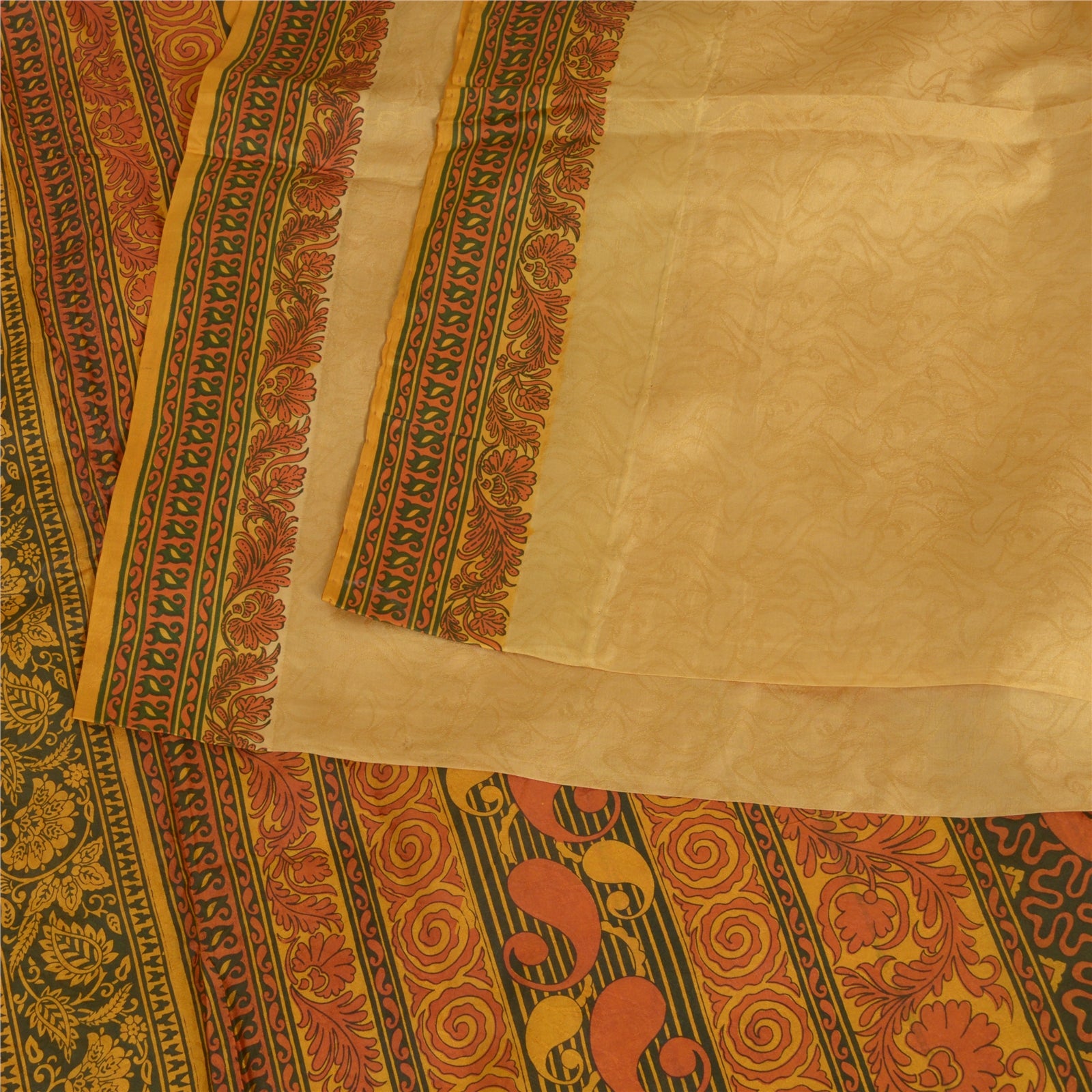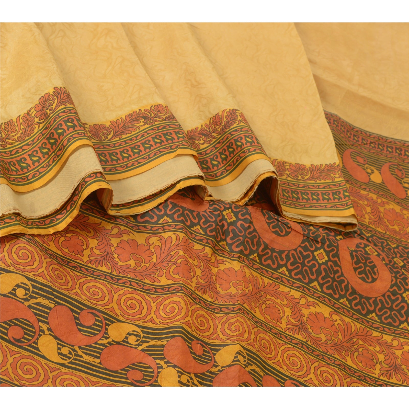 THE ITEM COLOR OR SHADE MAY BE DARKER OR LIGHTER THAN THE PICTURE.' Beautiful shades of saffron colored pure silk printed & woven saree. Pallu & Border has printed floral design. Floral design with woven work in center part of saree. What is special about this saree? Fabulous design is really enhancing the beauty of the saree.This unique vintage saree can be used for various crafting ideas even if you don't want to use it as a sari. Design a dress, use it as window, dressing, upholstery, sarongs, throw, dress making and table linen much more. Let your creative juices flow and use this decorated Sustainable Fabric in multiple fashion. International buyers please note: Import duties, taxes, and charges are not included in the item price or postage cost. These charges are the buyer's responsibility. Please check with your country's customs office to determine what these additional costs will be prior to bidding or buying. Buyer will pay custom duty/tax. It is calculated and charged differently by every country. As a seller I do not have any control over it. VAT or sales tax is calculated by the platform at the time of checkout. Customs charge is payable at the time of delivery.'