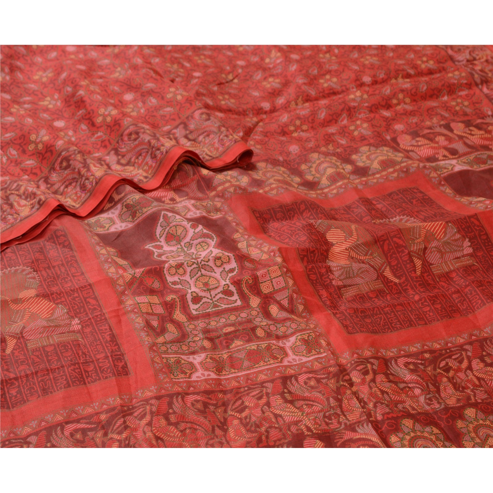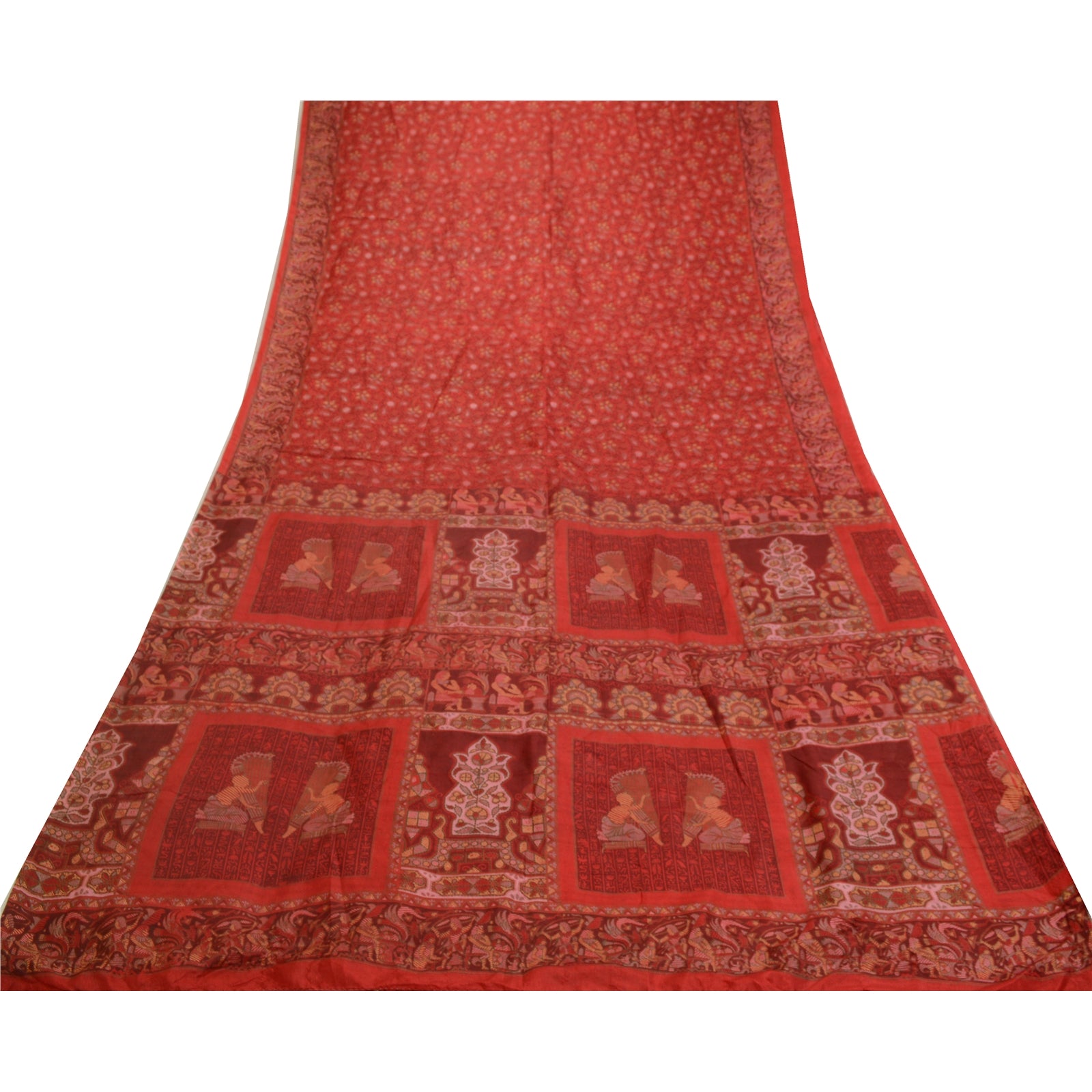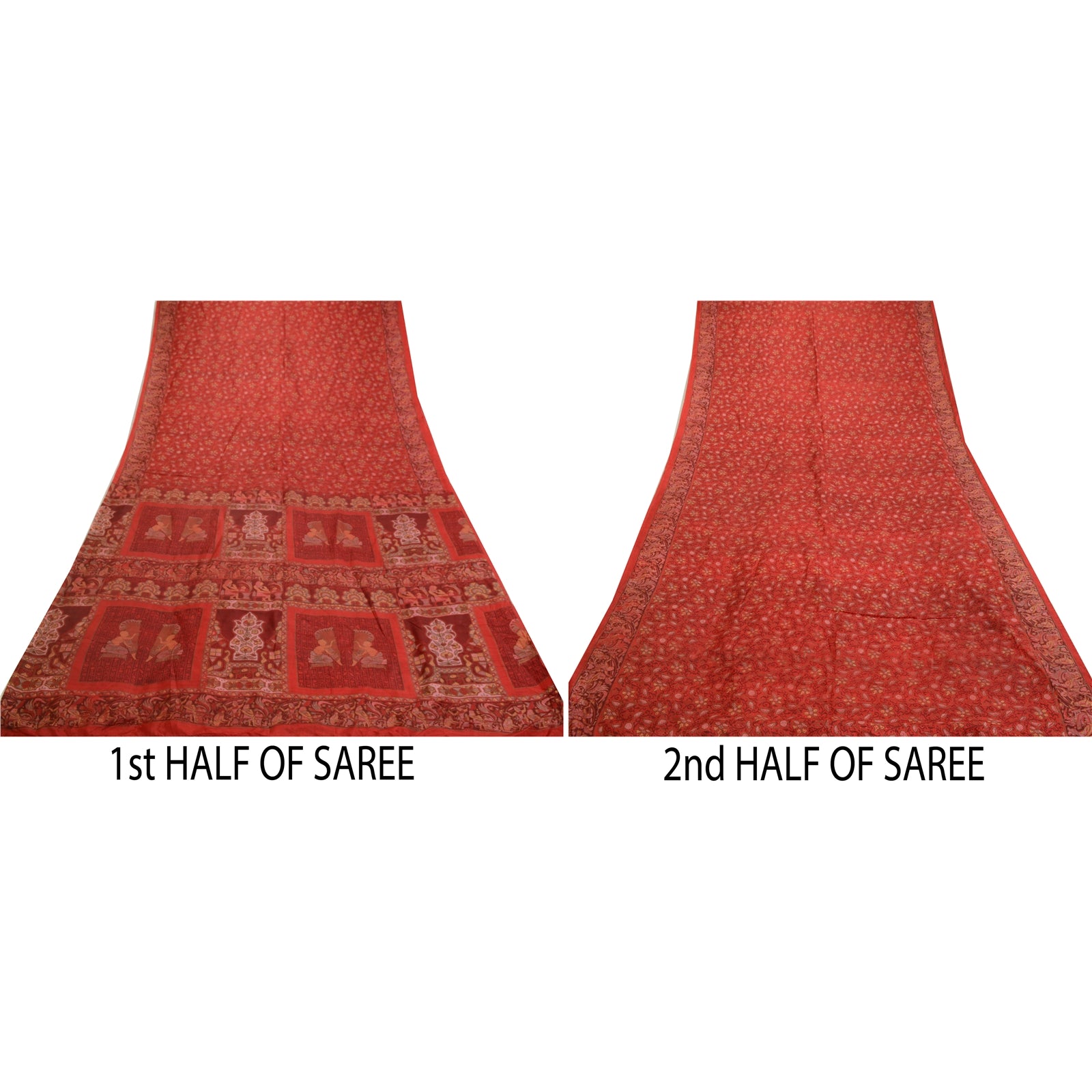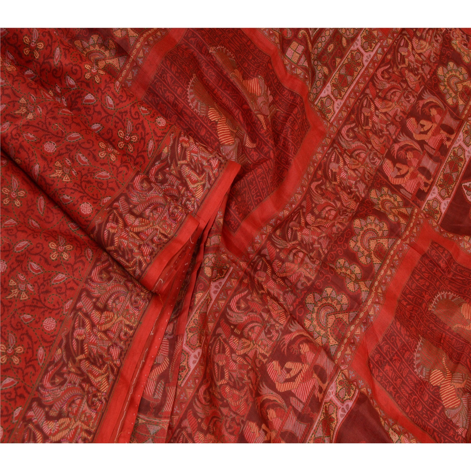 Sanskriti Vintage Sarees Scarlet Human Printed Pure Silk Sari Soft Craft Sustainable Fabric