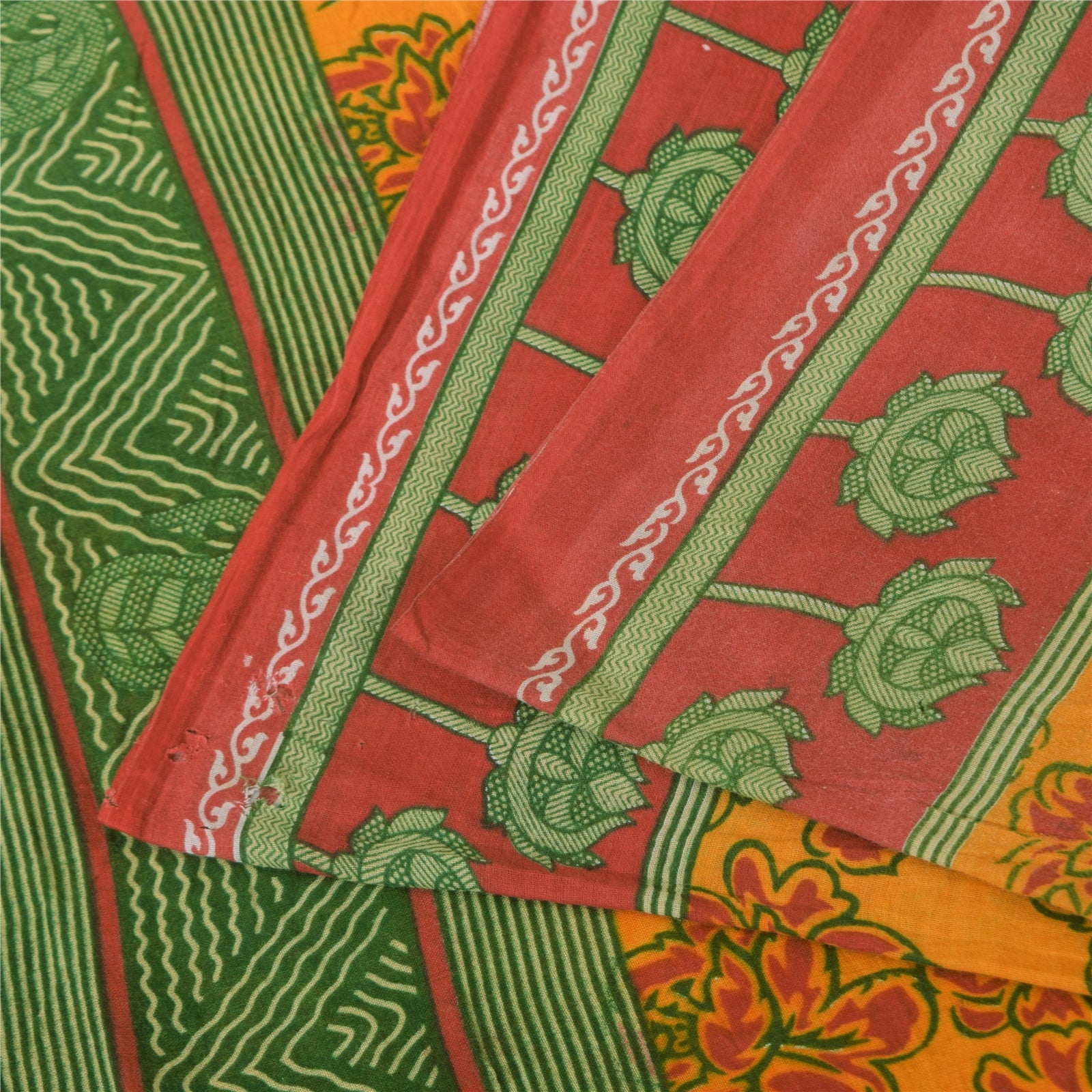 Sanskriti Vintage Sarees Yellow 100% Pure Cotton Printed Sari 5+yd Craft Sustainable Fabric
