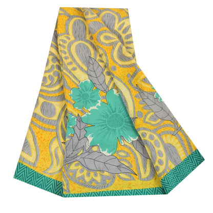 Sanskriti Vintage Sarees Yellow Pure Crepe Silk Printed Sari 5+yd Craft Sustainable Fabric
