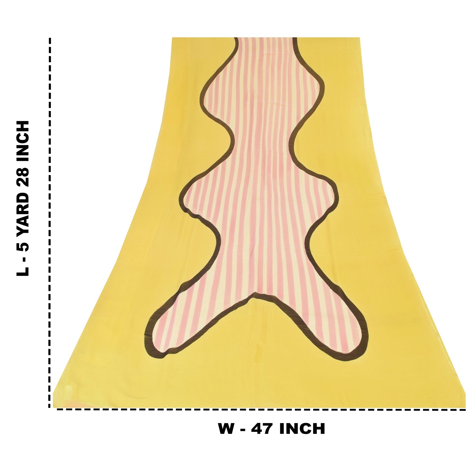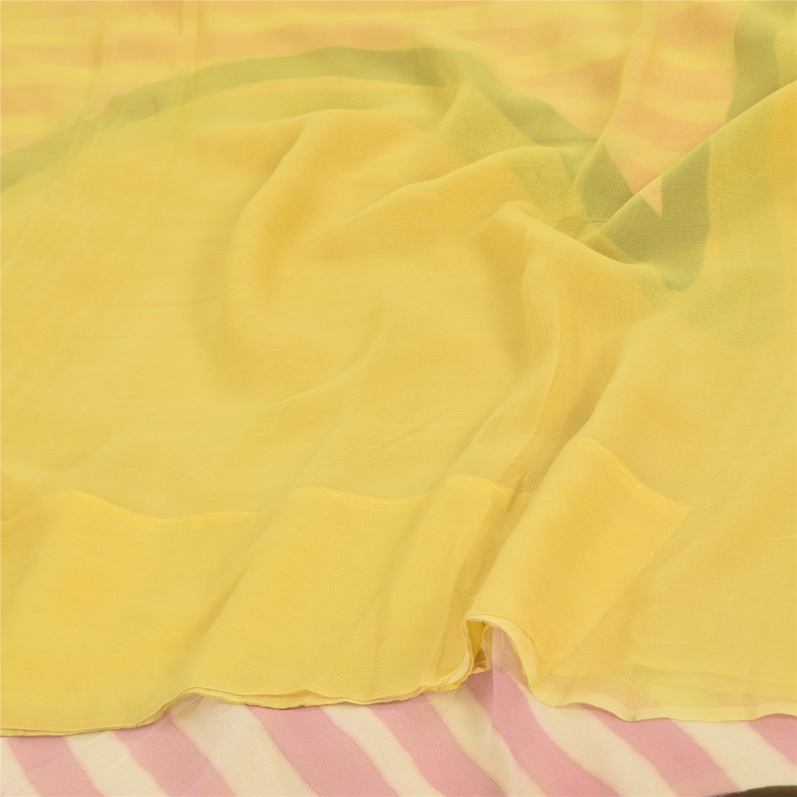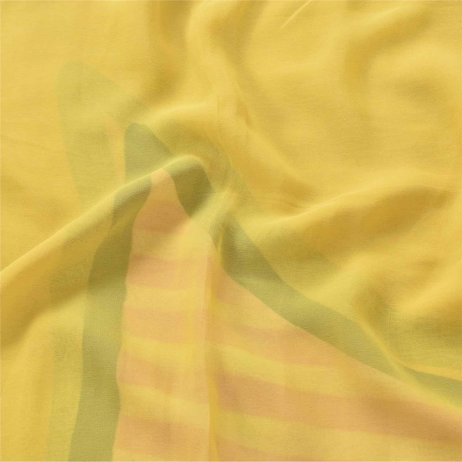 Sanskriti Vintage Sarees Yellow Pure Georgette Silk Print Sari 5+yd Craft Sustainable Fabric