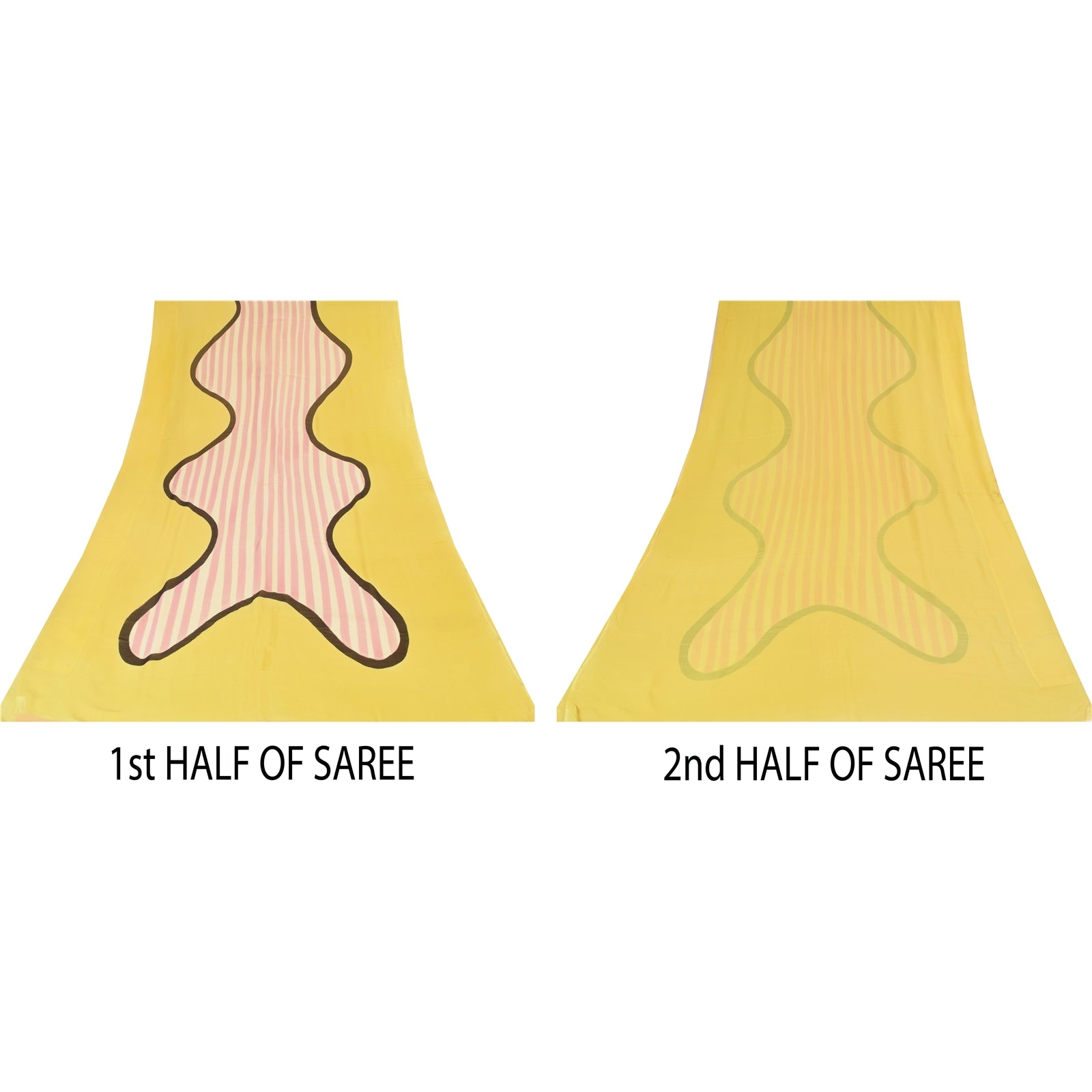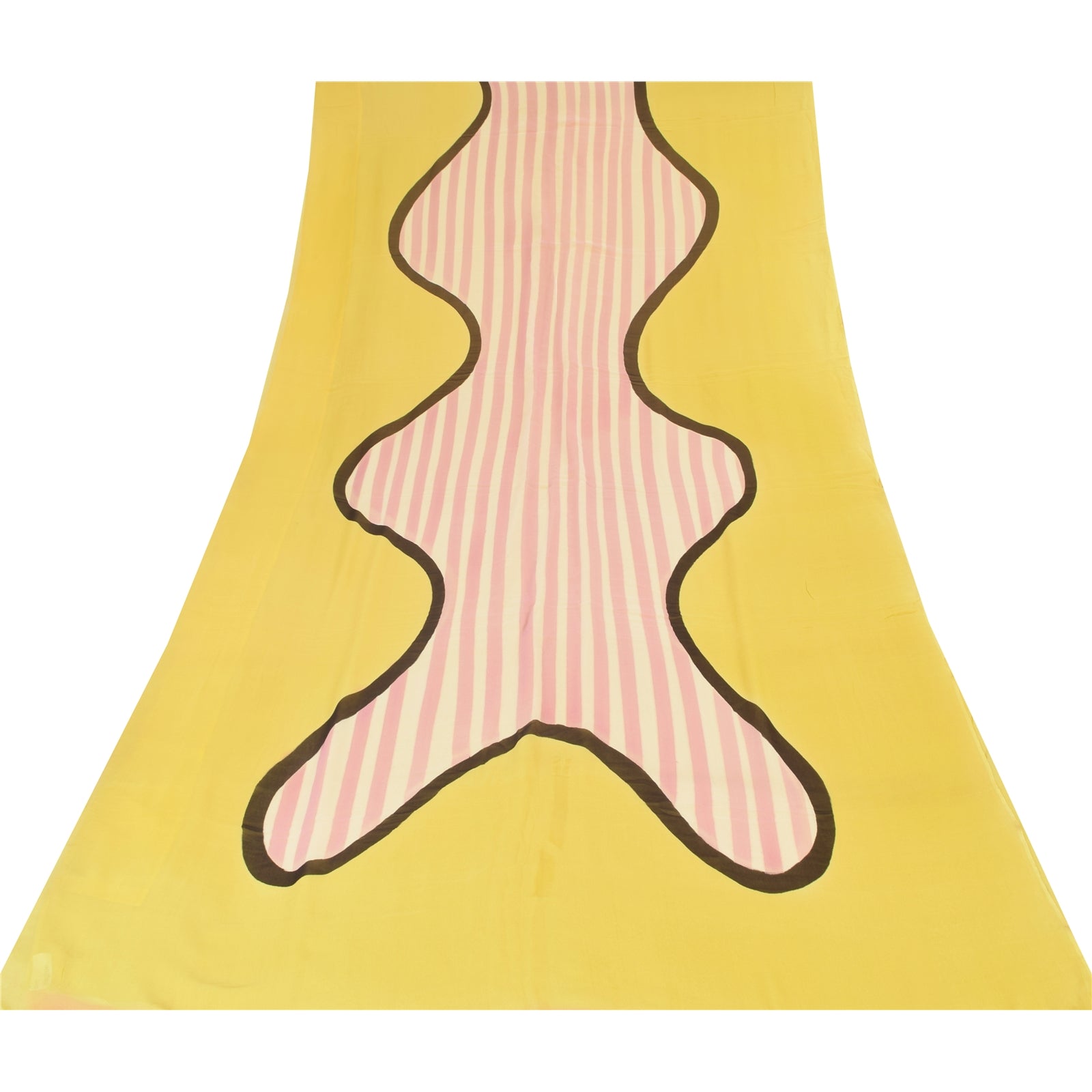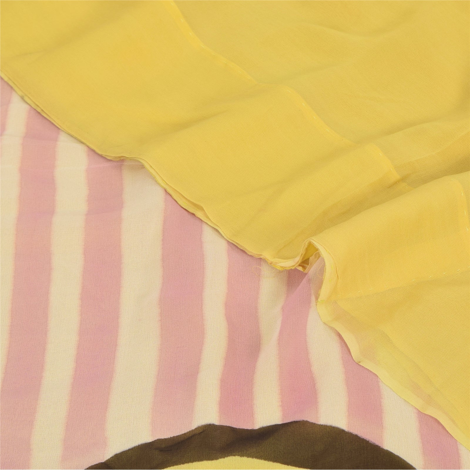 Sanskriti Vintage Sarees Yellow Pure Georgette Silk Print Sari 5+yd Craft Sustainable Fabric