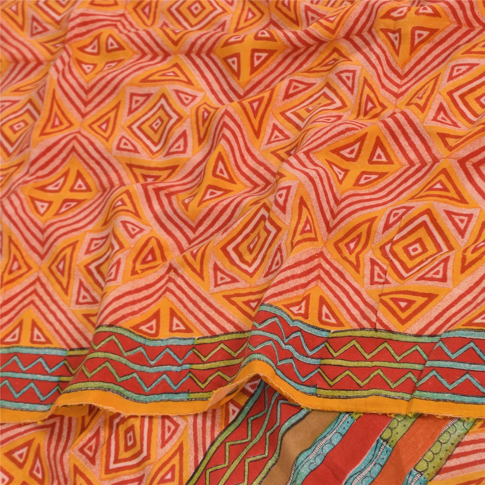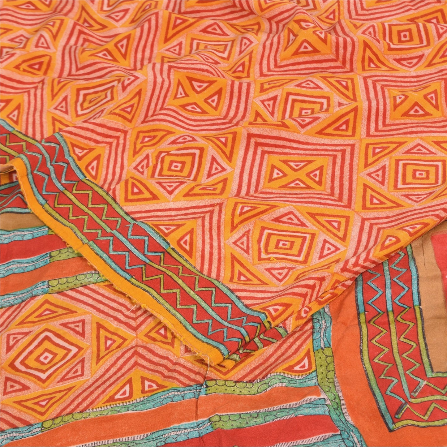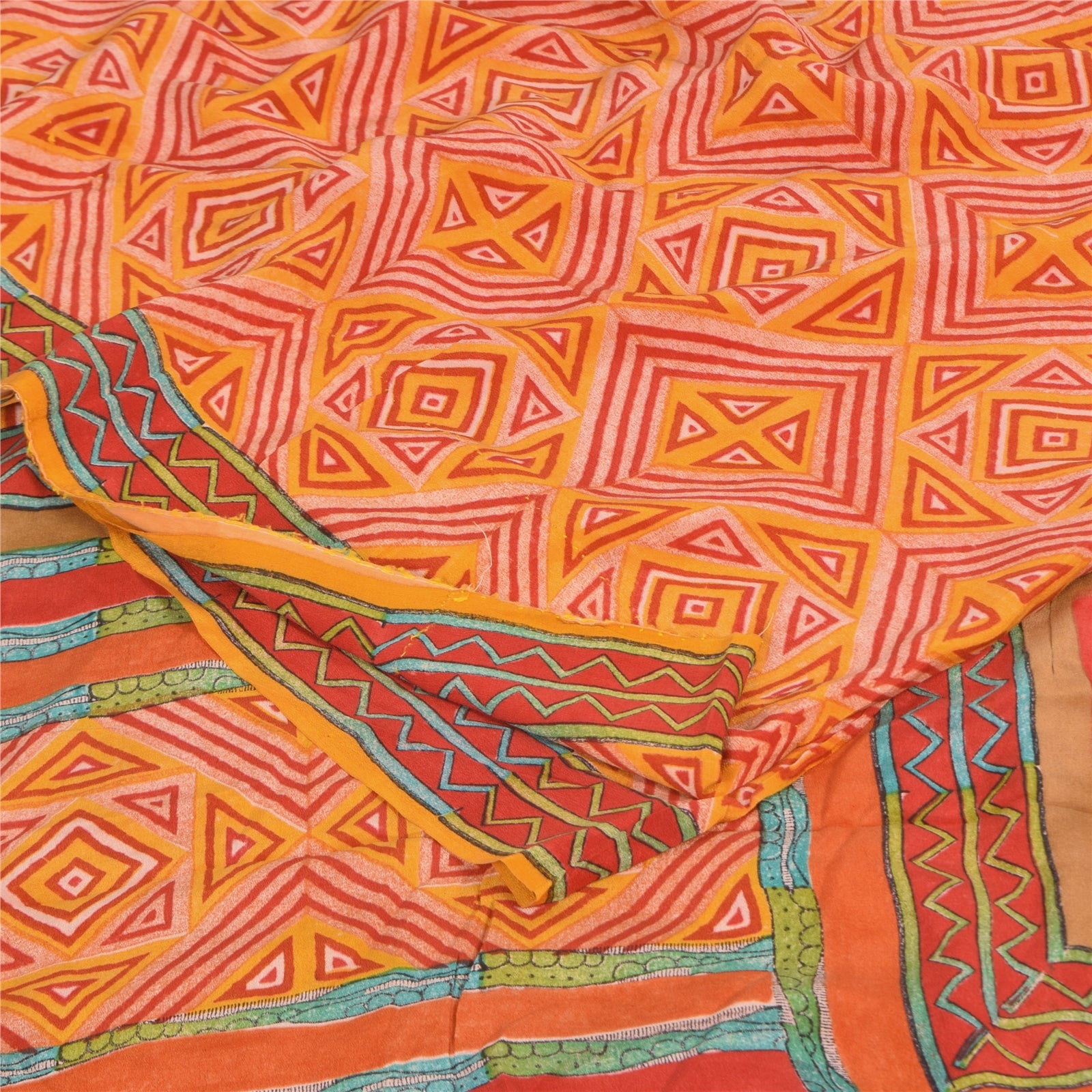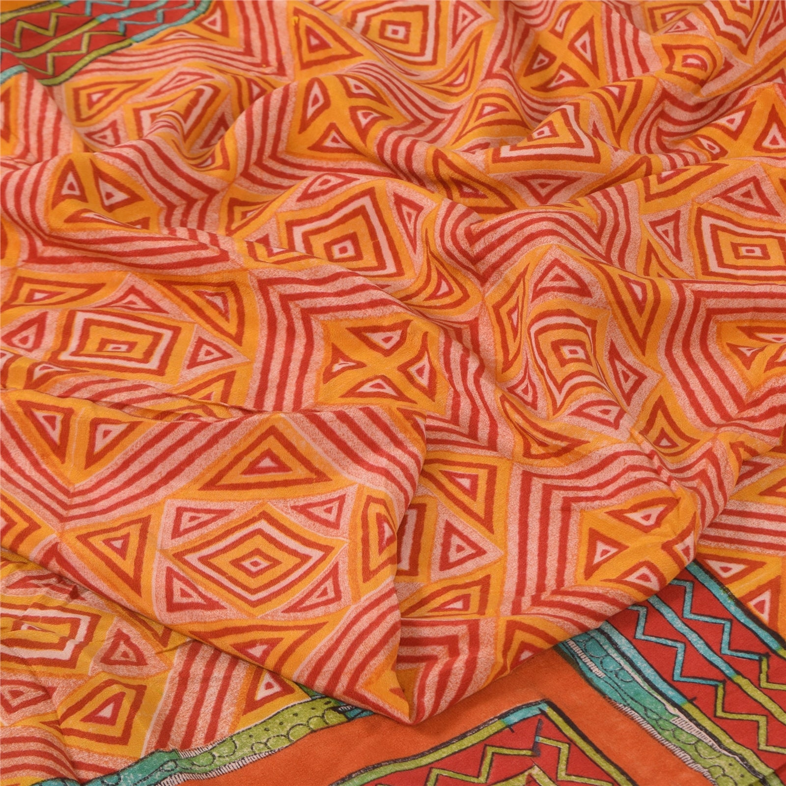 THE ITEM COLOR OR SHADE MAY BE DARKER OR LIGHTER THAN THE PICTURE.' • Beautiful yellow & red colored printed pure crepe silk saree . • Pallu & Border has printed floral & geometric design. • Geometric design in center part of sari . This unique vintage saree can be used for various crafting ideas even if you don't want to use it as a sari. Design a dress, use it as a as window dressing, upholstery, sarongs, throw, dress making and table linen much more. Let your creative juices flow and use this decorated Sustainable Fabric in multiple fashion. International buyers please note: Import duties, taxes, and charges are not included in the item price or postage cost. These charges are the buyer's responsibility. Please check with your country's customs office to determine what these additional costs will be prior to bidding or buying.Buyer will pay custom duty/tax. It is calculated and charged differently by every country. As a seller I do not have any control over it. VAT or sales tax is calculated by the platform at the time of checkout. Customs charge is payable at the time of delivery. prc-23040
