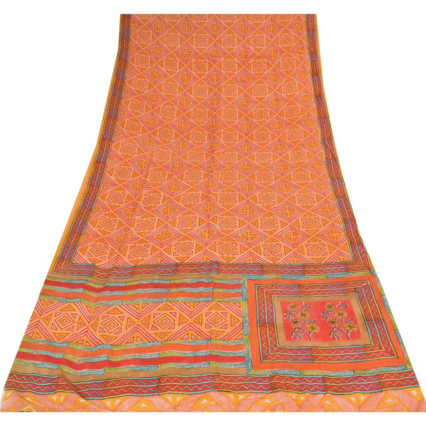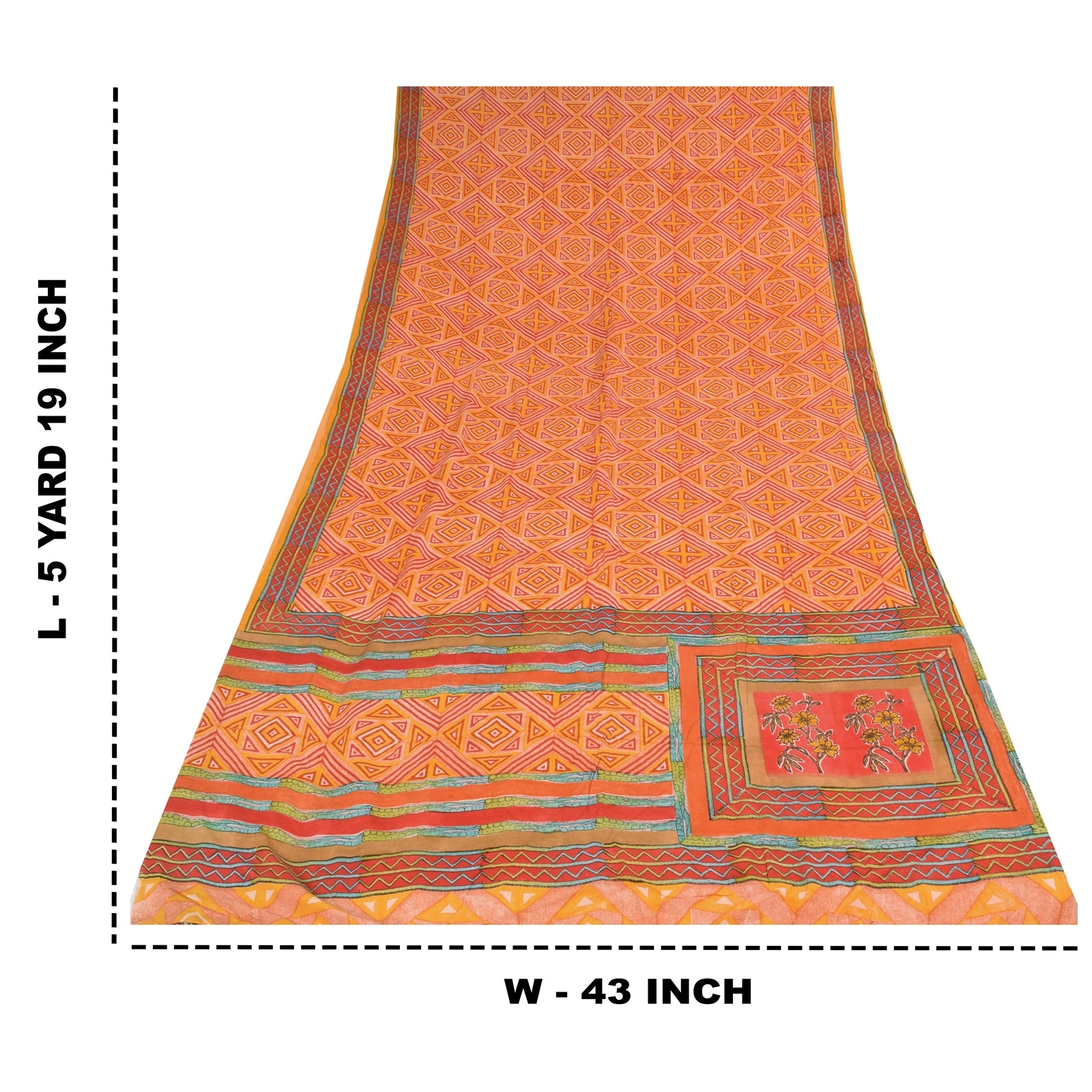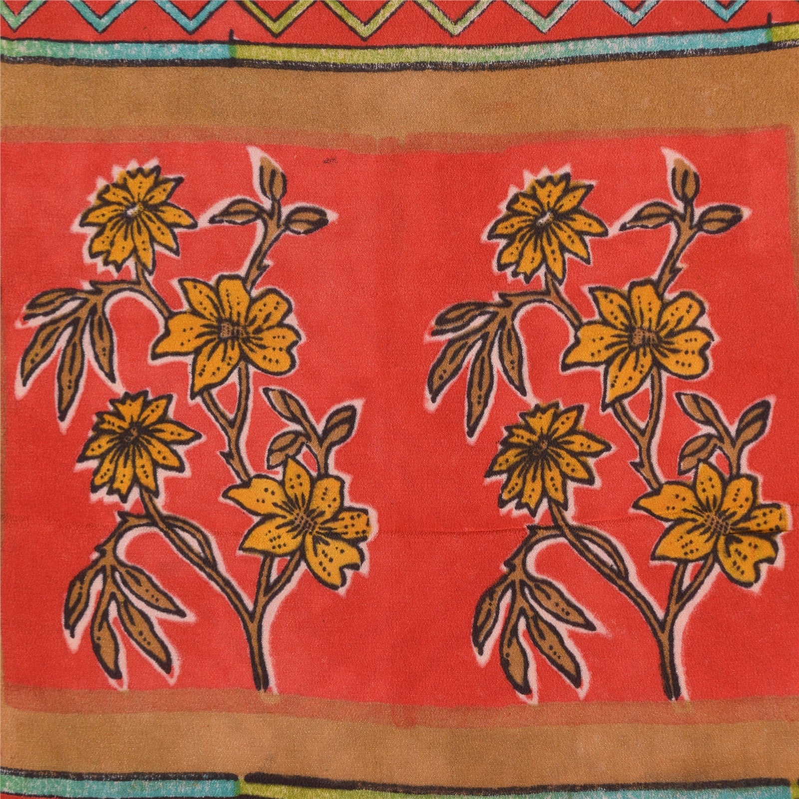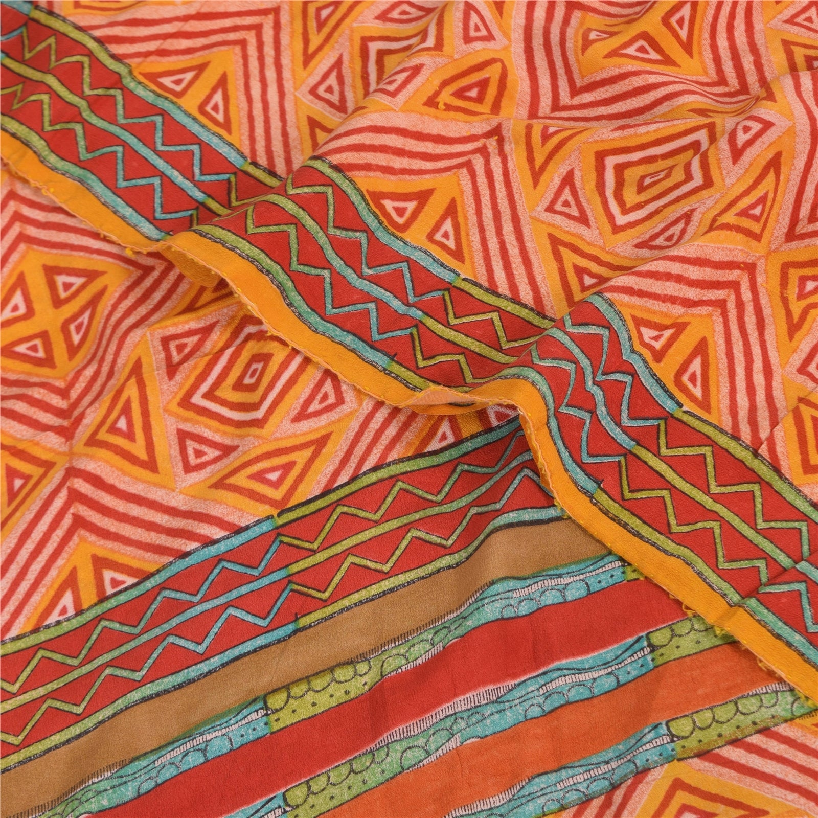 THE ITEM COLOR OR SHADE MAY BE DARKER OR LIGHTER THAN THE PICTURE.' • Beautiful yellow & red colored printed pure crepe silk saree . • Pallu & Border has printed floral & geometric design. • Geometric design in center part of sari . This unique vintage saree can be used for various crafting ideas even if you don't want to use it as a sari. Design a dress, use it as a as window dressing, upholstery, sarongs, throw, dress making and table linen much more. Let your creative juices flow and use this decorated Sustainable Fabric in multiple fashion. International buyers please note: Import duties, taxes, and charges are not included in the item price or postage cost. These charges are the buyer's responsibility. Please check with your country's customs office to determine what these additional costs will be prior to bidding or buying.Buyer will pay custom duty/tax. It is calculated and charged differently by every country. As a seller I do not have any control over it. VAT or sales tax is calculated by the platform at the time of checkout. Customs charge is payable at the time of delivery. prc-23040