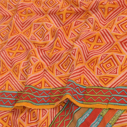 Sanskriti Vintage Sarees Yellow/Red Pure Crepe Silk Print Sari 5+yd Craft Sustainable Fabric