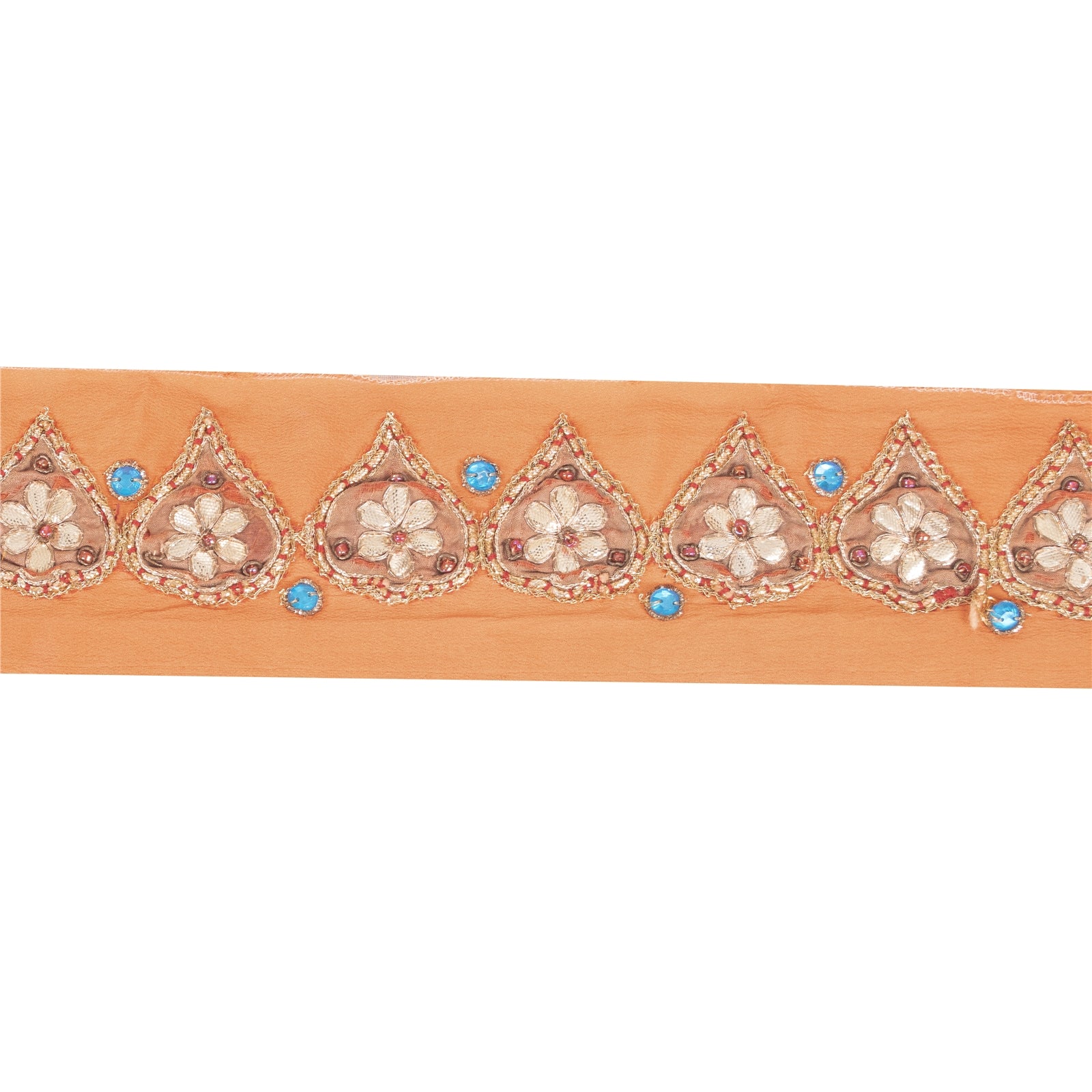 Sanskriti Vintage Sari Border 1YD Hand Bead Gota Patti ZariCraft Trim Peach Lace