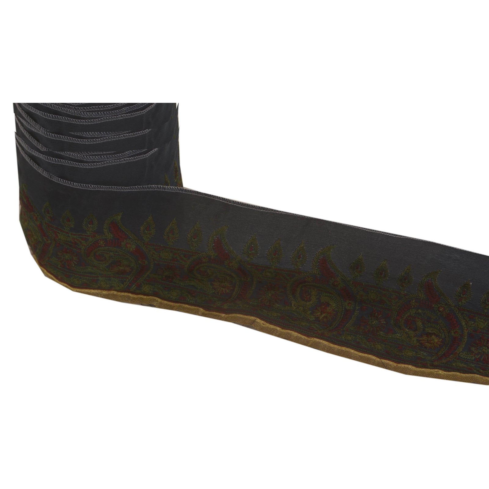 Amazing blend crepe embroidered sari border in blue color highlighting thread work. Border has beautiful floral patterns painstakingly embroidered with brown, green, maroon thread work . WOW!! an awesome one of a kind versatile border. 1 Quantity = 1 Yard