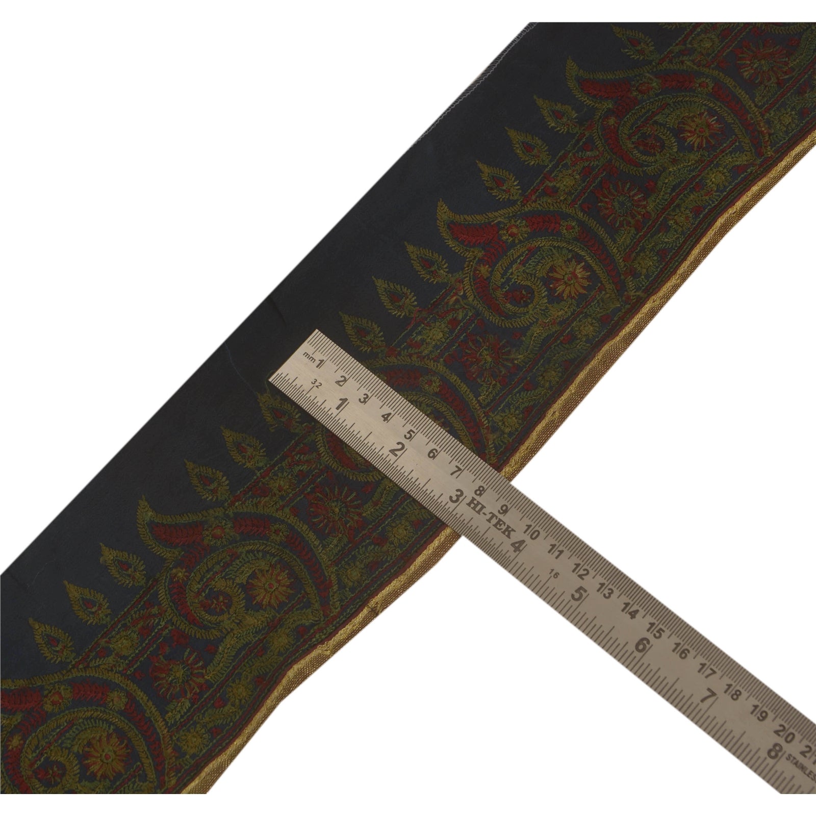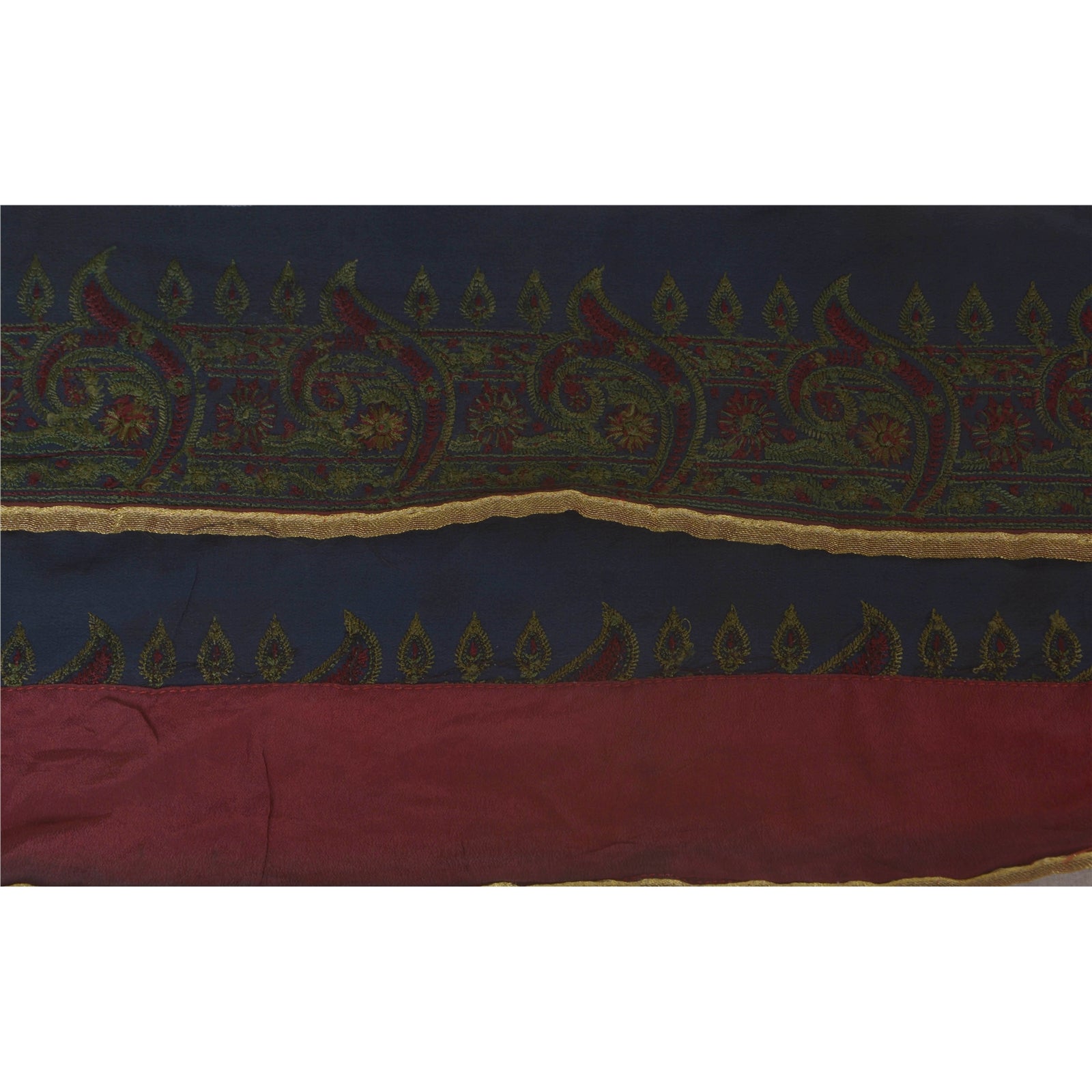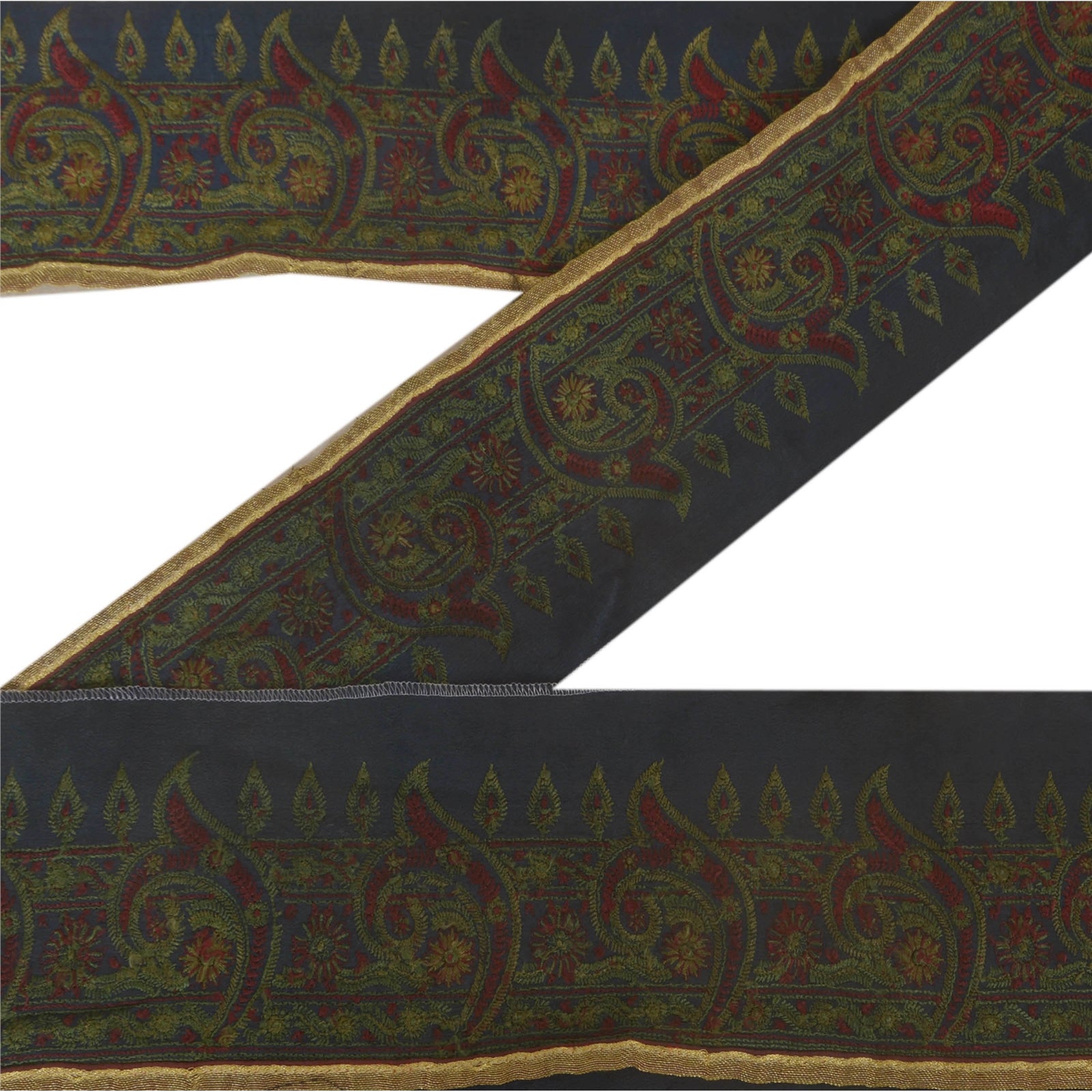 Sanskriti Vintage Sari Border Craft Blue Trim Embroidered 1 Yd Sewing Lace