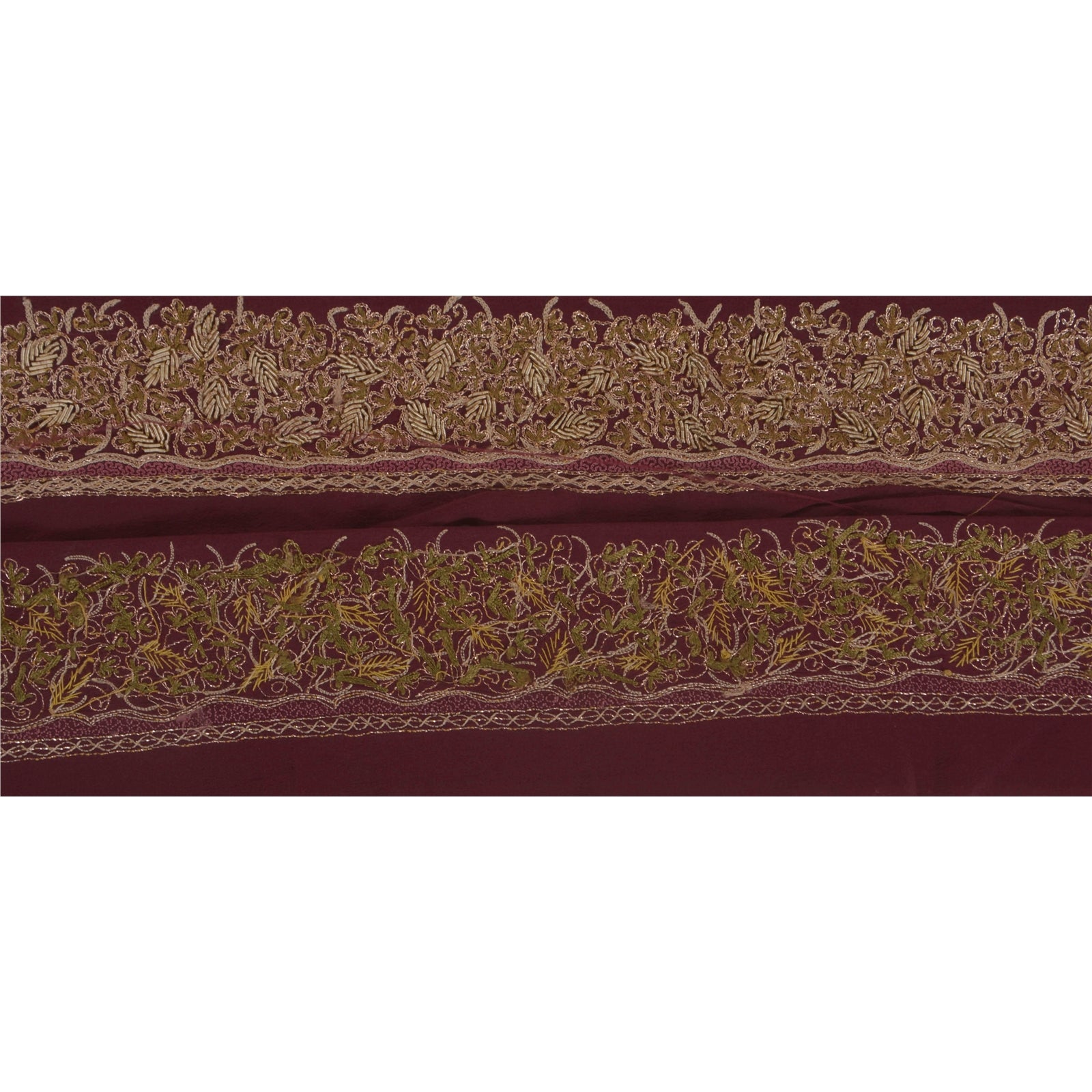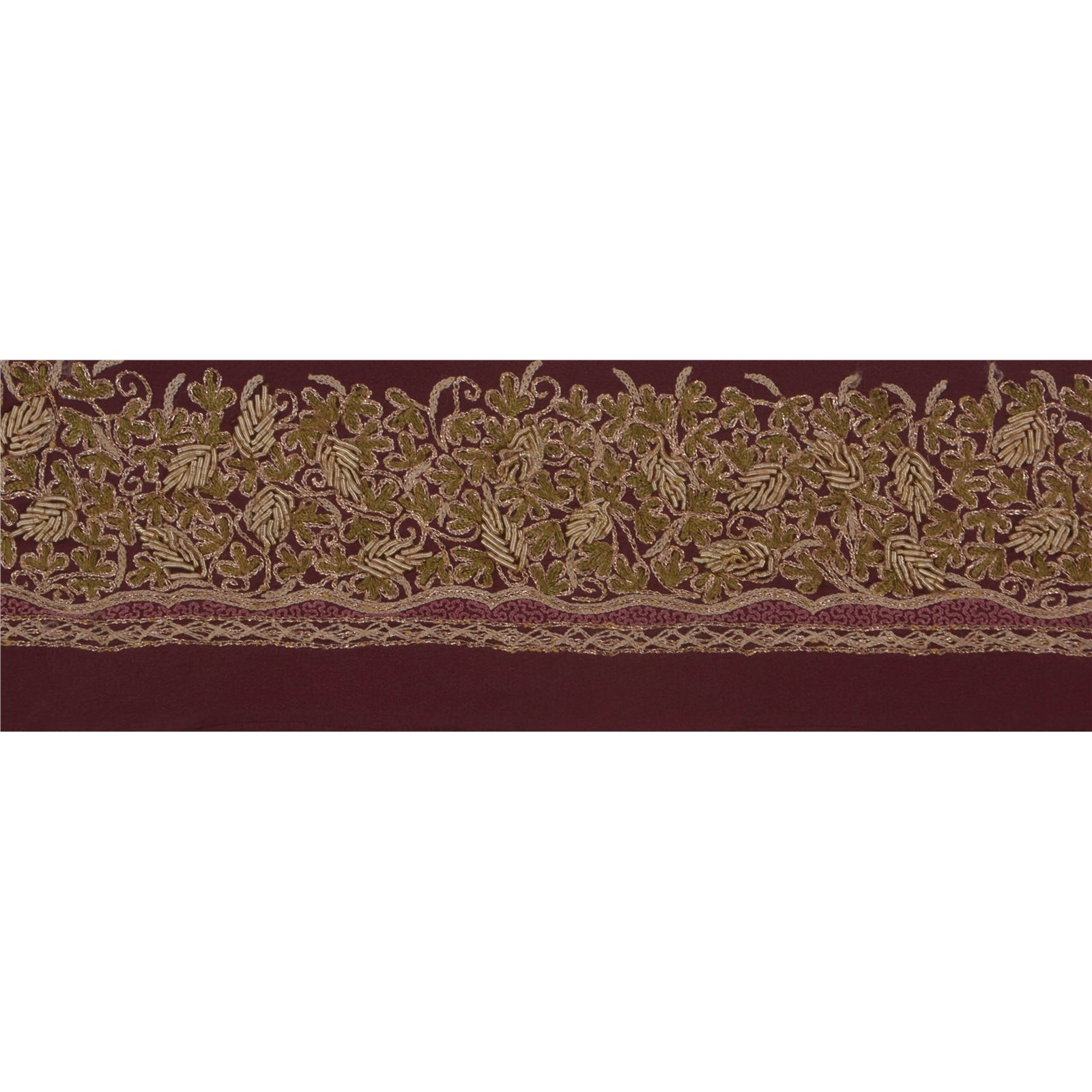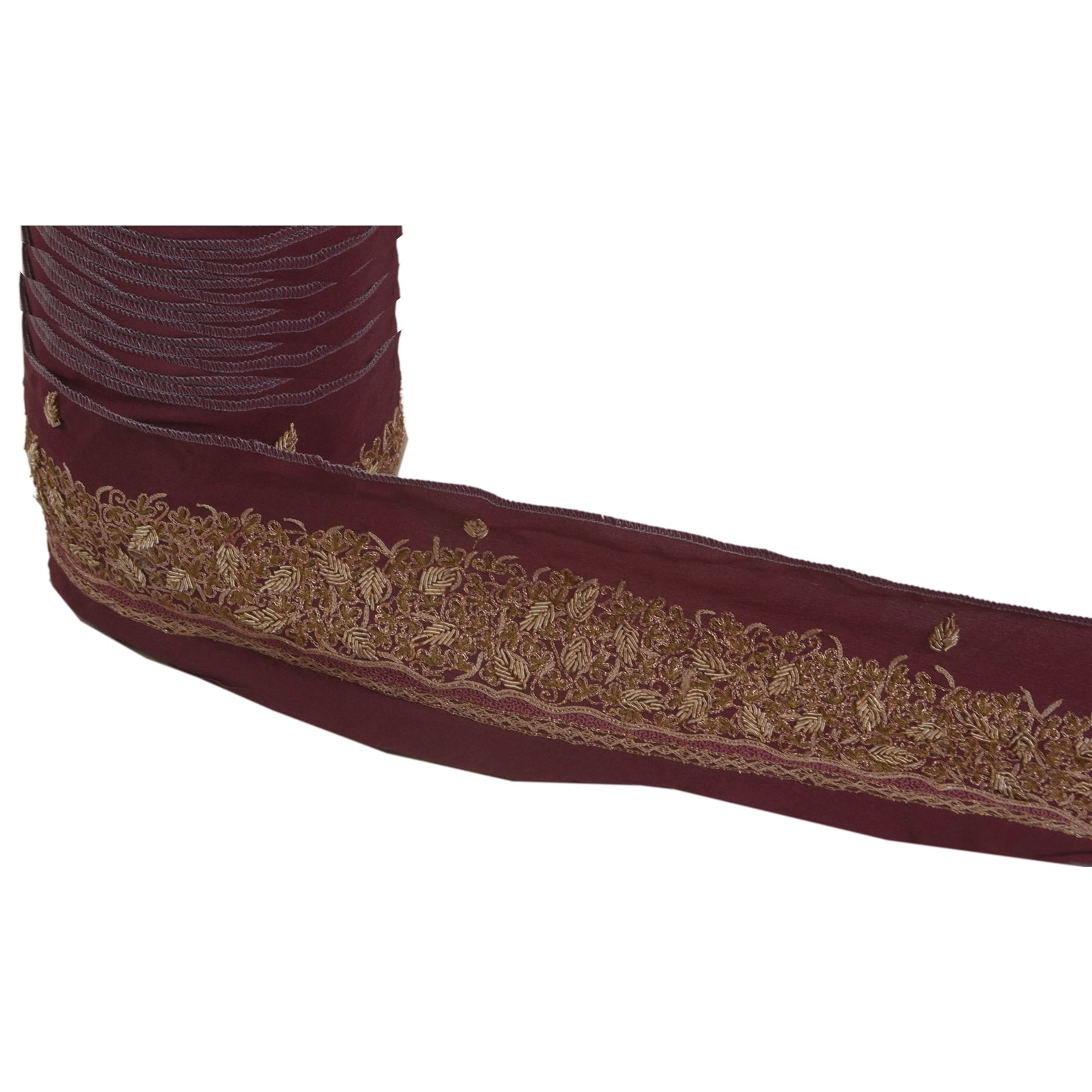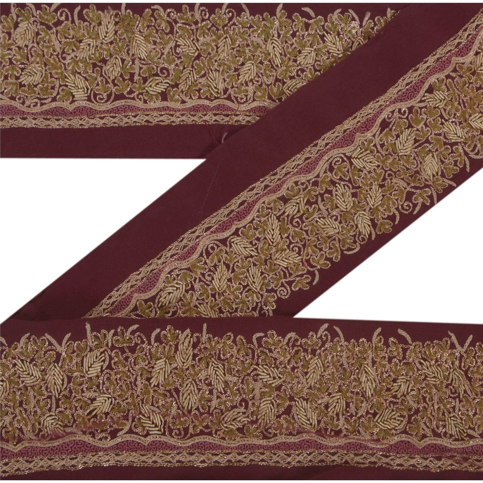 Sanskriti Vintage Sari Border Craft Dark Red Trim Hand Zari Embroidery 1 YD Lace