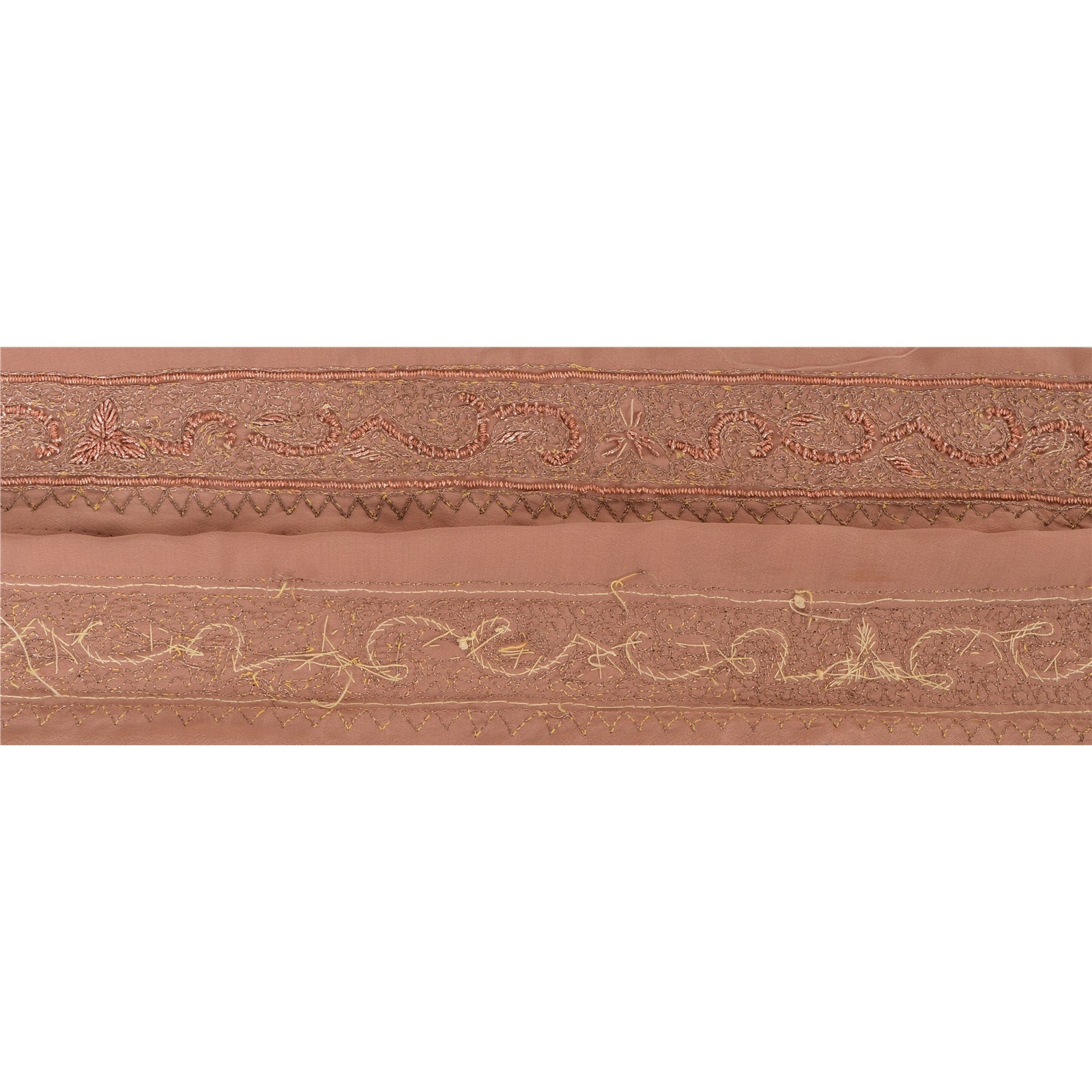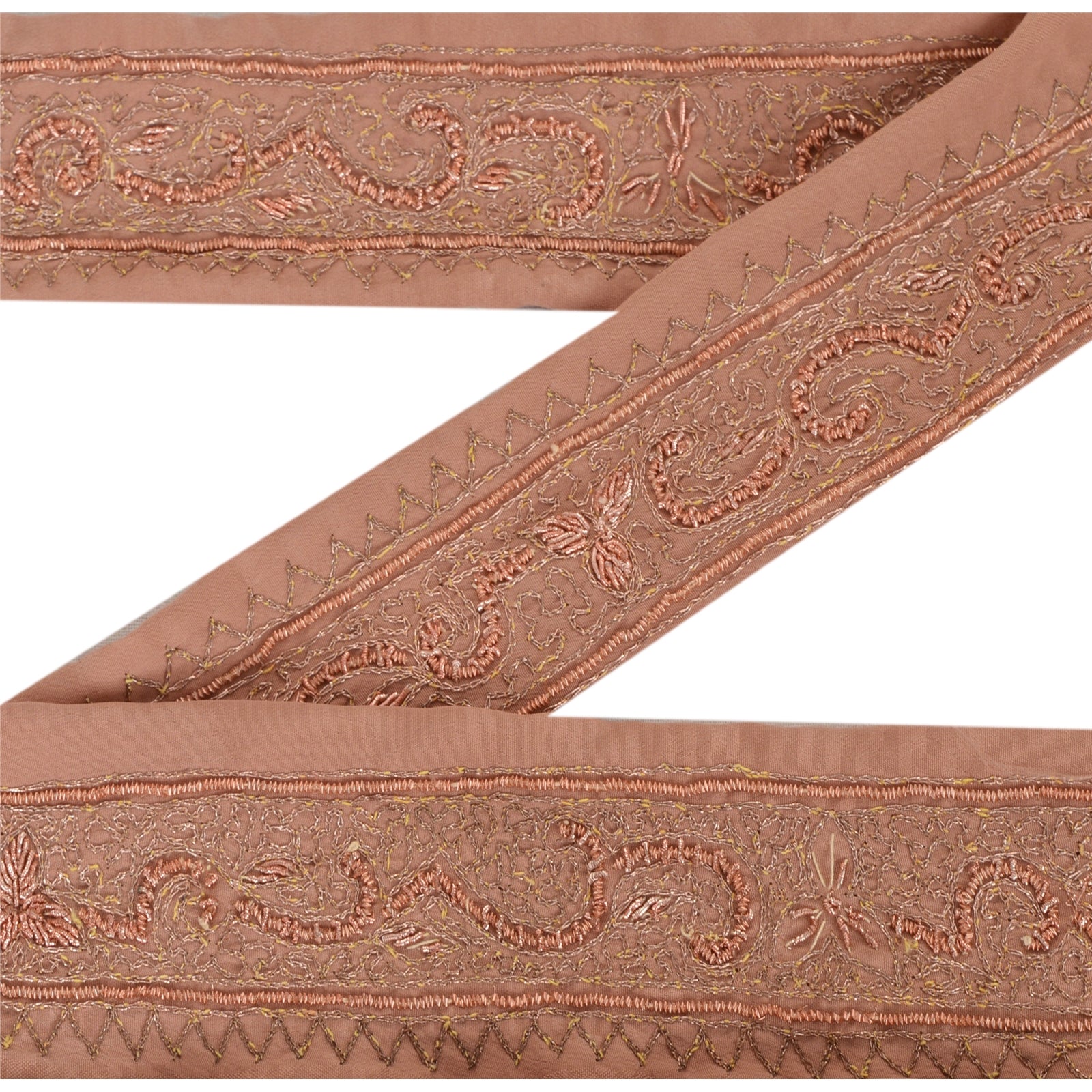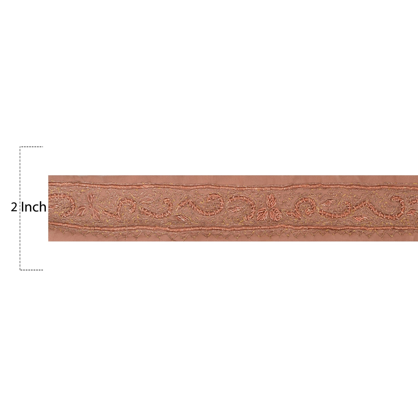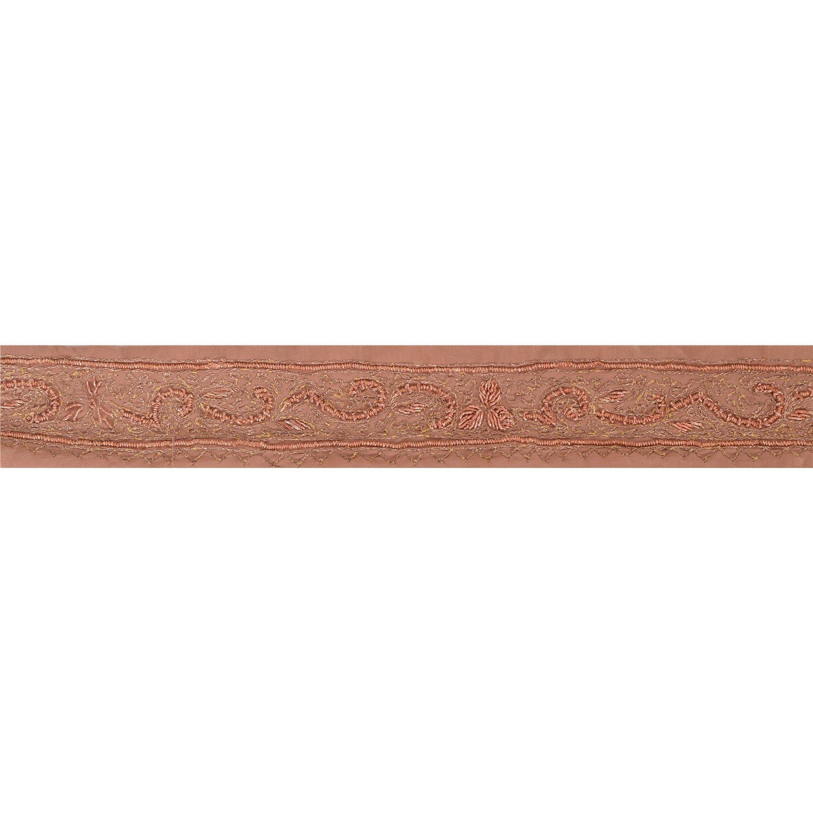Sanskriti Vintage Sari Border Craft Peach Trim Hand Embroidered 1 YD Zari Lace