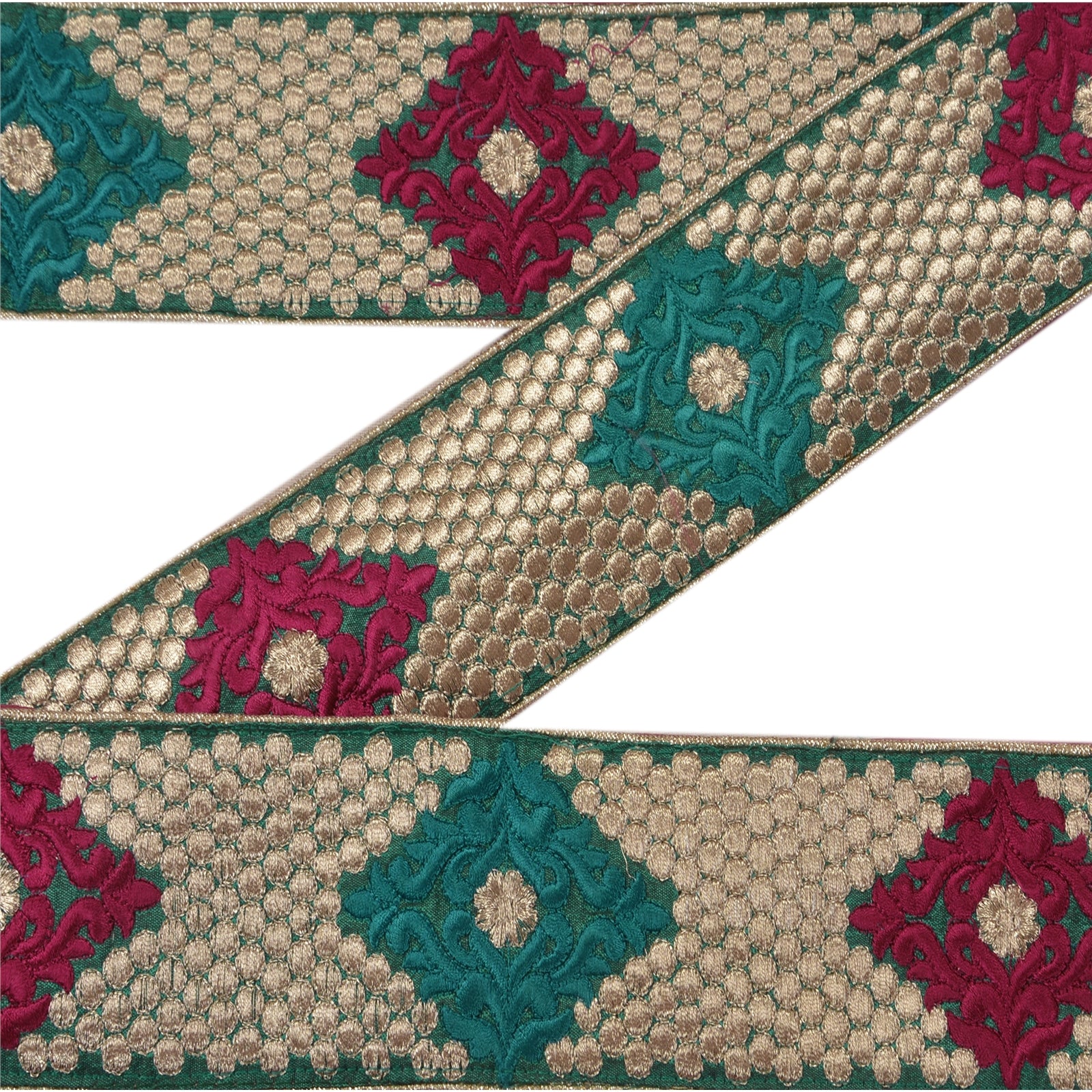 Sanskriti Vintage Sari Border Embroidered 1 YD Trim Sewing Green Craft Deco Lace