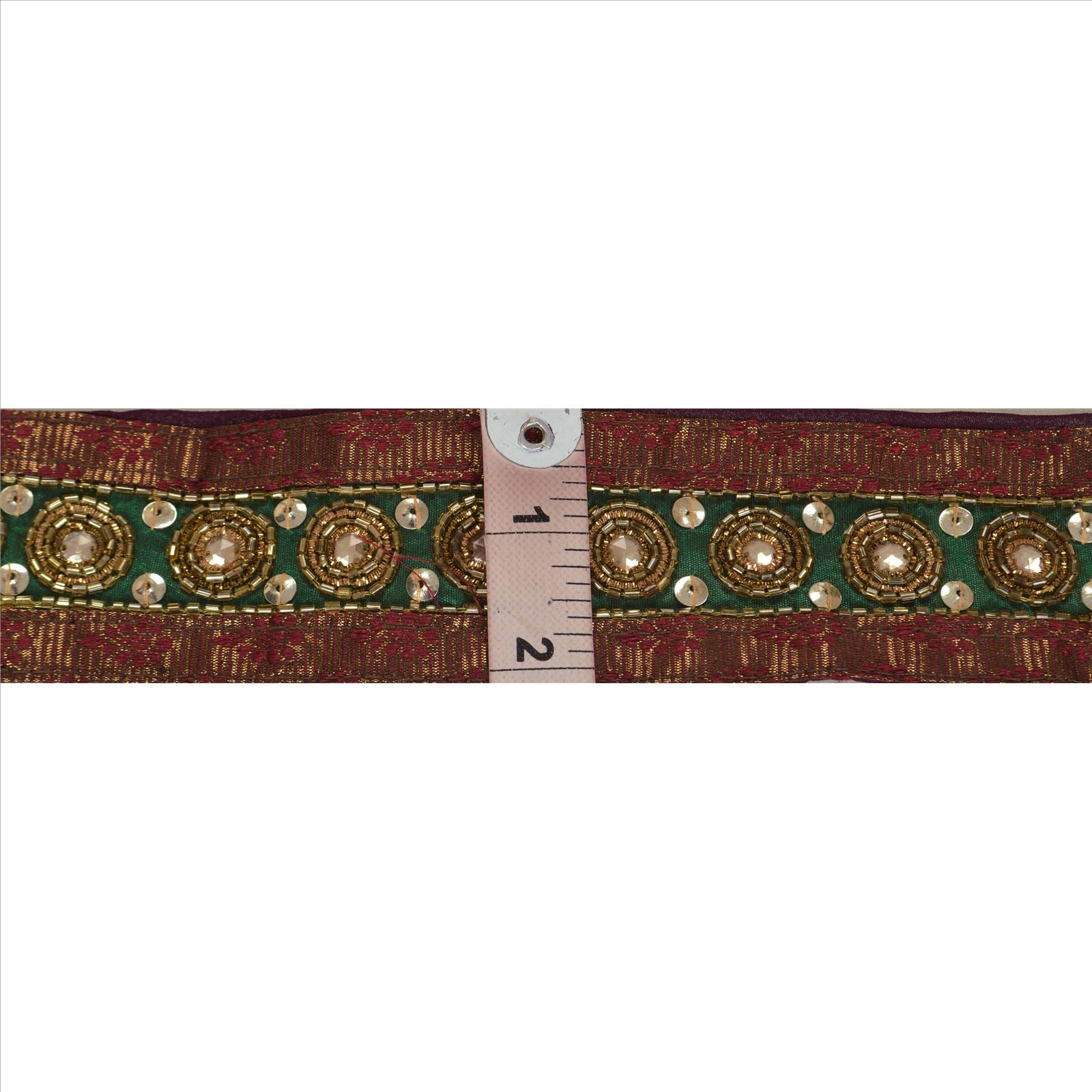 Sanskriti Vintage Sari Border Hand Beaded 1 Yd Craft Trim Sewing Green Lace