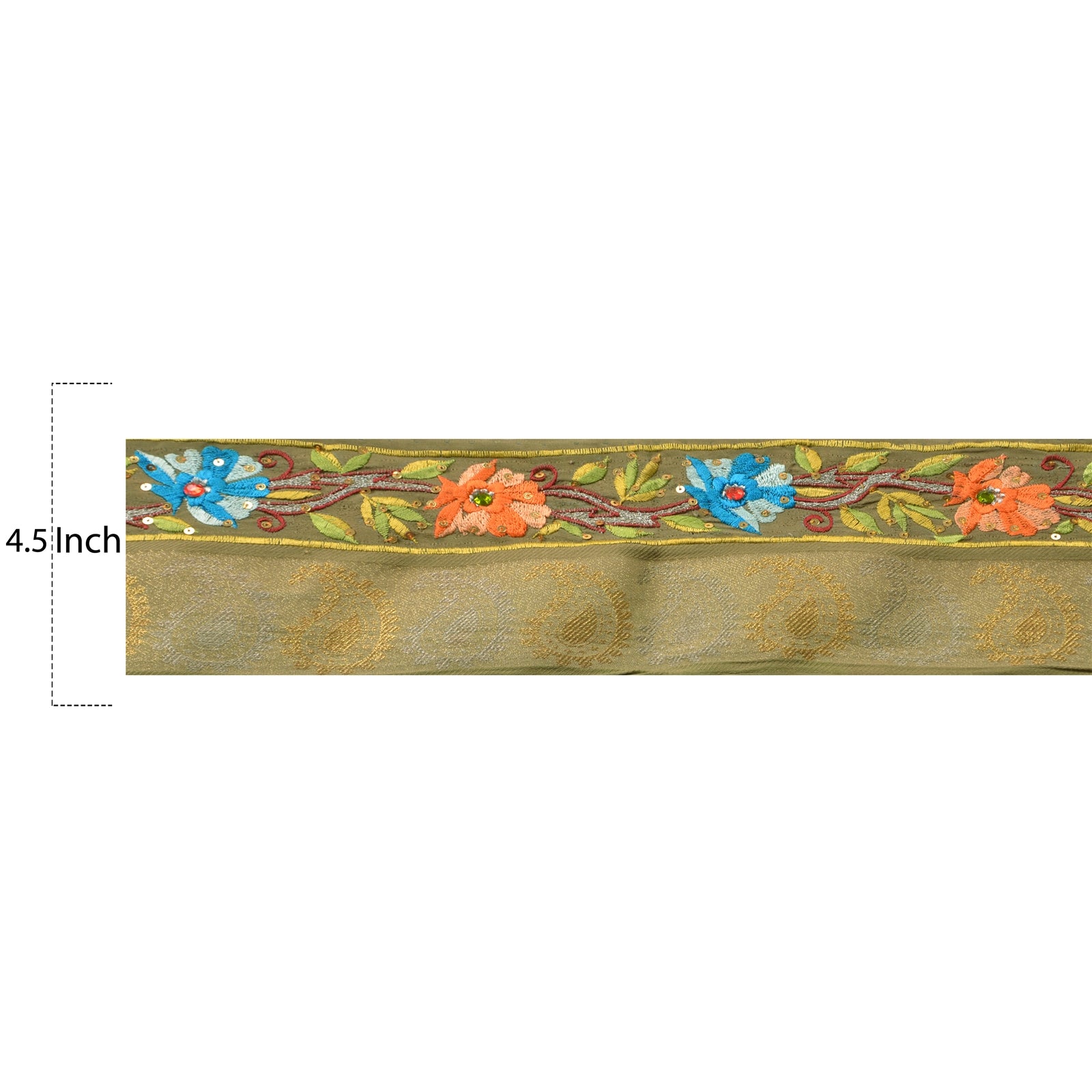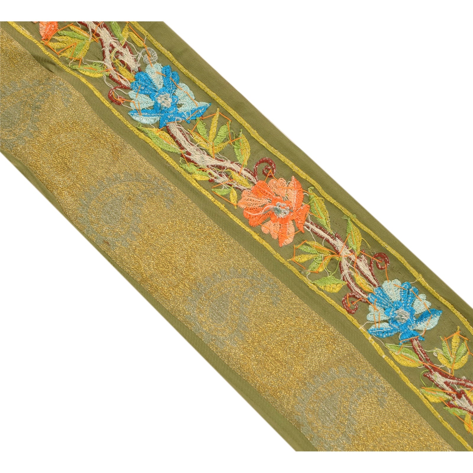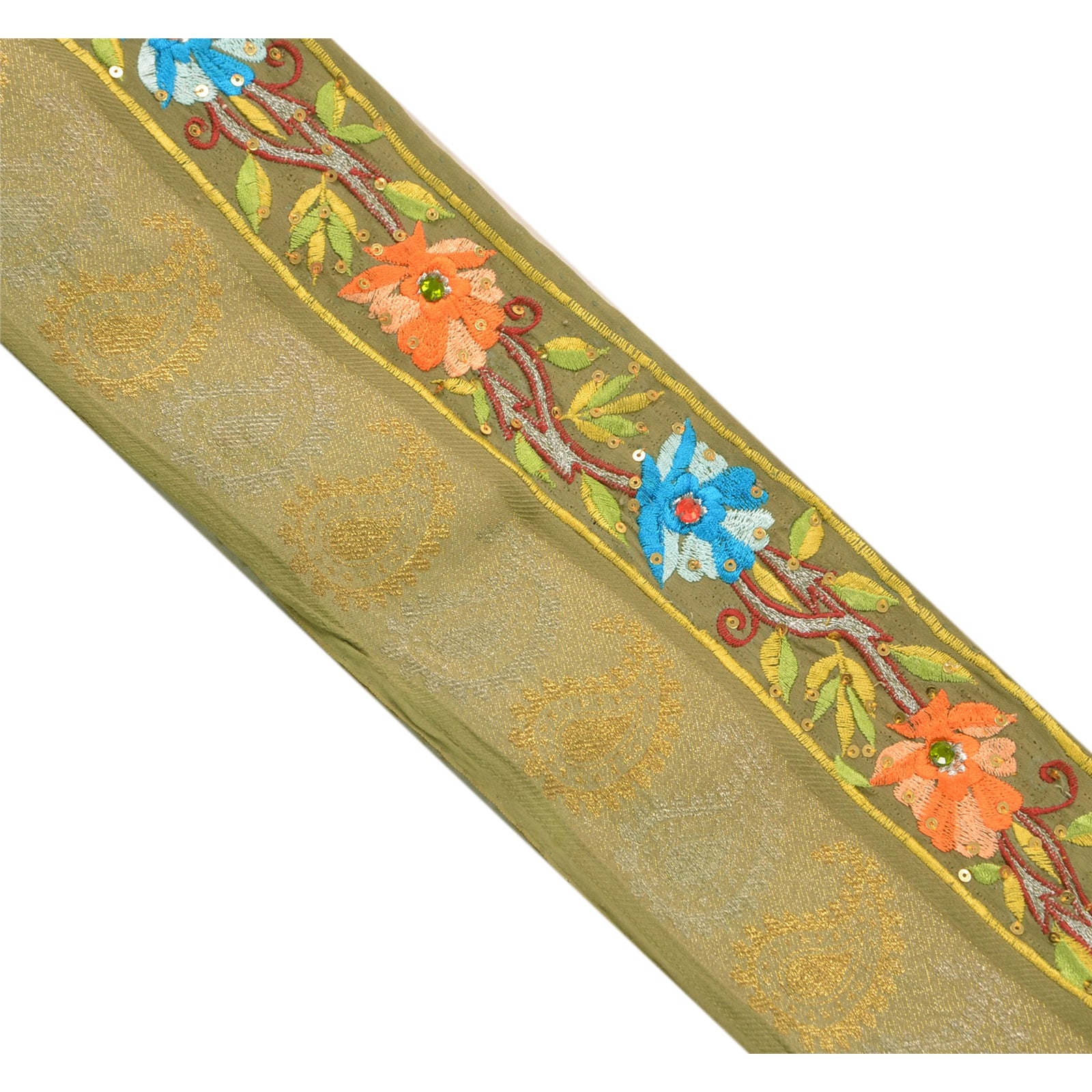 Sanskriti Vintage Sari Border Hand Beaded 1 YD Craft Trim Sewing Green Lace