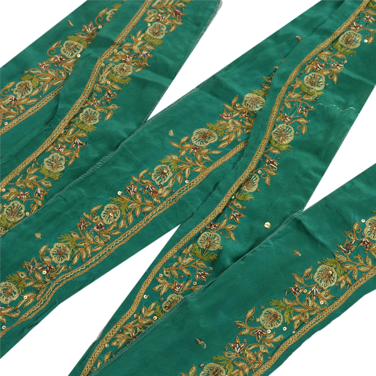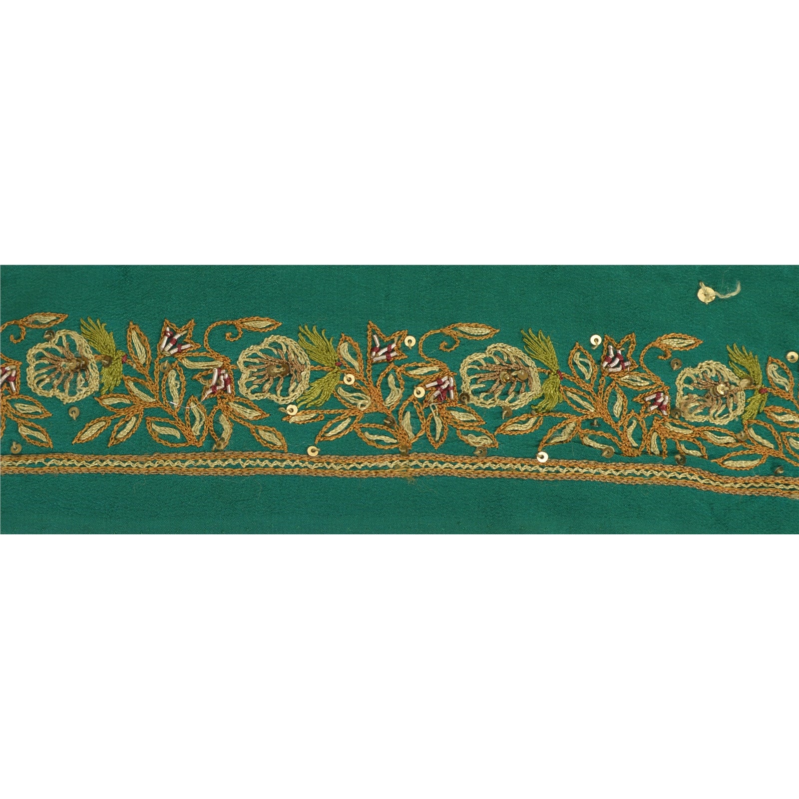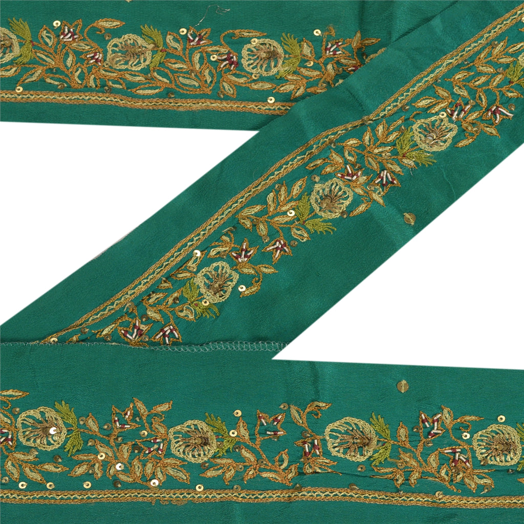 Sanskriti Vintage Sari Border Hand Beaded 1 Yd Indian Trim Sewing Green Lace