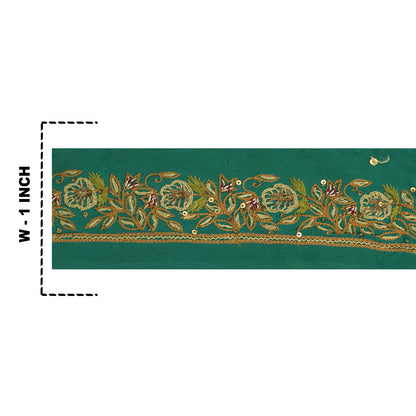 Beautiful pure crepe silk hand embroidered sari border. Further embellished by gold zardozi work, green/brown/maroon thread work. Also, you can gold sequins along with floral design on green base Sustainable Fabric. WOW!! an awesome one of a kind versatile border. 1 quantity = 1 yard. International buyers please note: Import duties, taxes, and charges are not included in the item price or postage cost. These charges are the buyer's responsibility. Please check with your country's customs office to determine what these additional costs will be prior to bidding or buying. Buyer will pay custom duty/tax. It is calculated and charged differently by every country. As a seller I do not have any control over it.VAT or sales tax is calculated by the platform at the time of checkout. Customs charge is payable at the time of delivery.