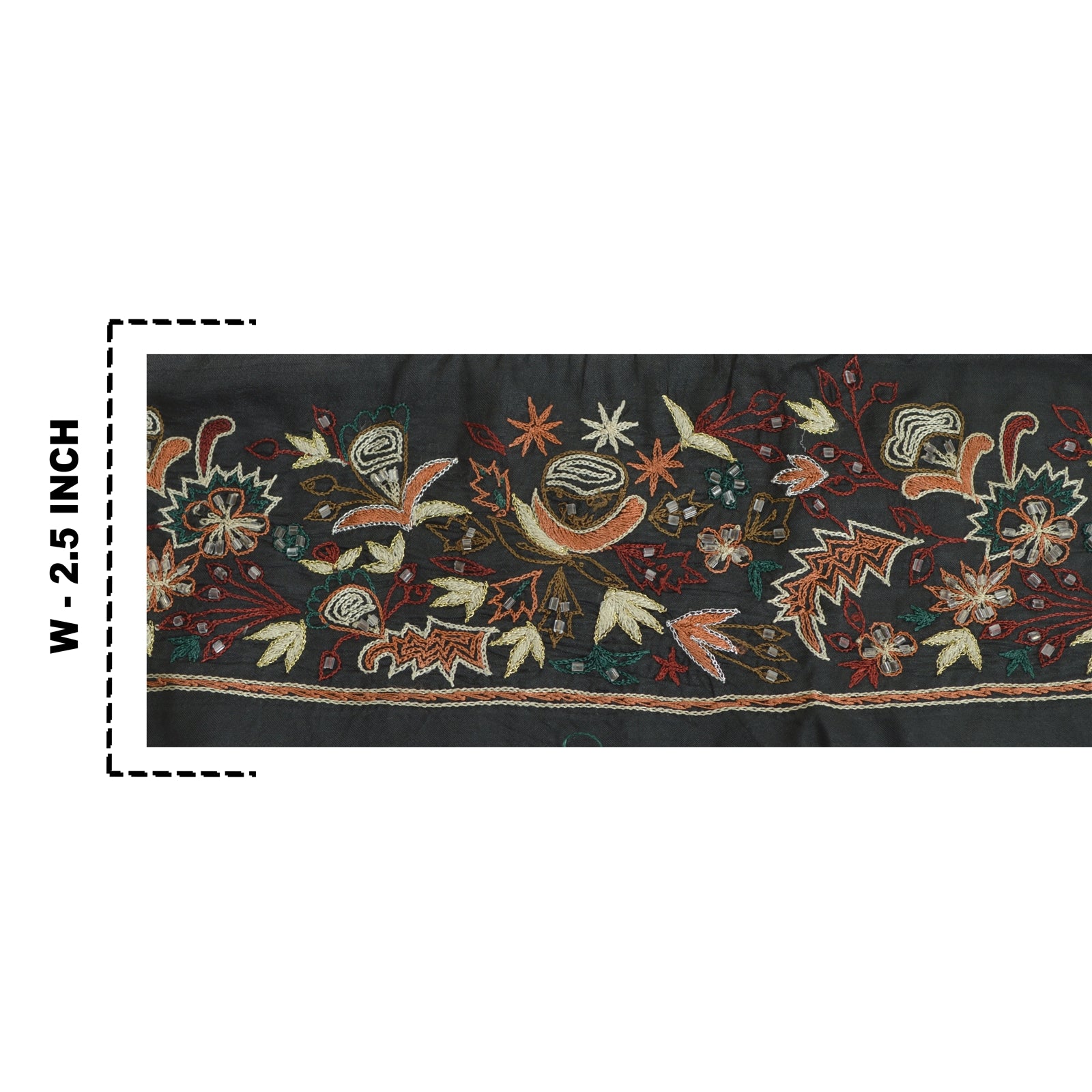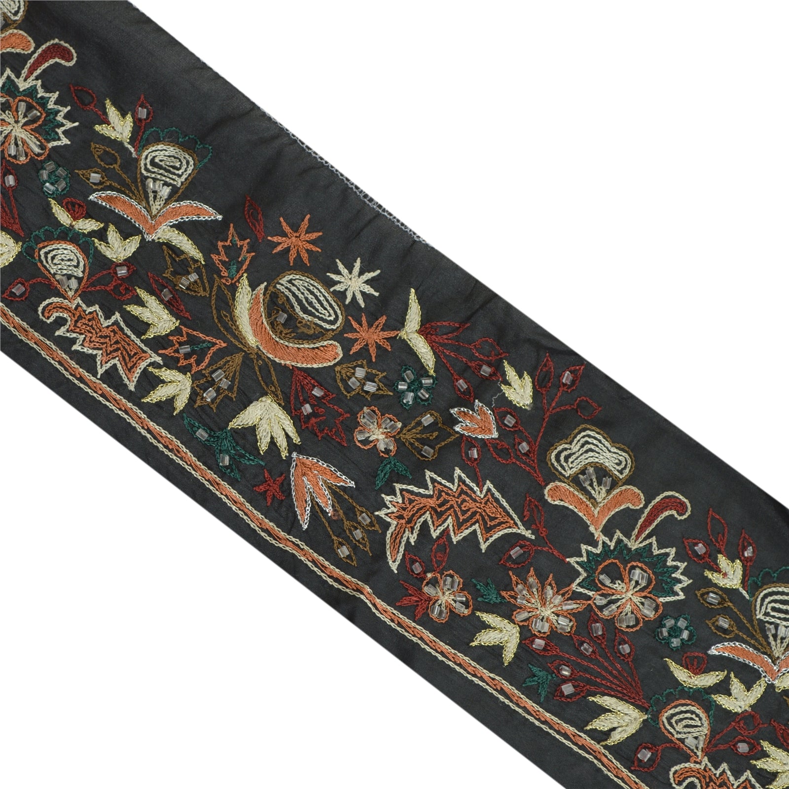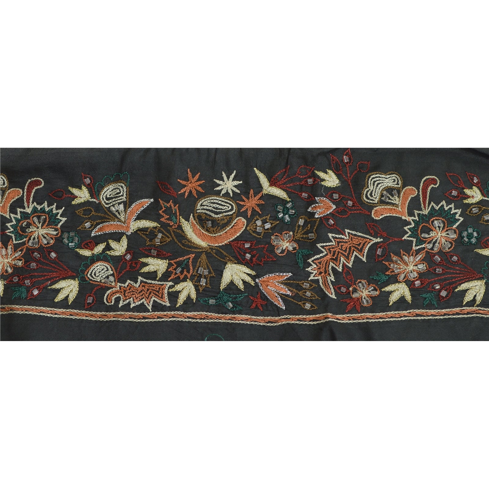 Beautiful pure silk hand embroidered sari border. Further embellished by silver zari work, maroon/green/cream/brown thread work. Also, you can see white bugle beads work along with floral design on black base Sustainable Fabric. WOW!! an awesome one of a kind versatile border. 1 quantity = 1 yard. International buyers please note: Import duties, taxes, and charges are not included in the item price or postage cost. These charges are the buyer's responsibility. Please check with your country's customs office to determine what these additional costs will be prior to bidding or buying. Buyer will pay custom duty/tax. It is calculated and charged differently by every country. As a seller I do not have any control over it.VAT or sales tax is calculated by the platform at the time of checkout. Customs charge is payable at the time of delivery.