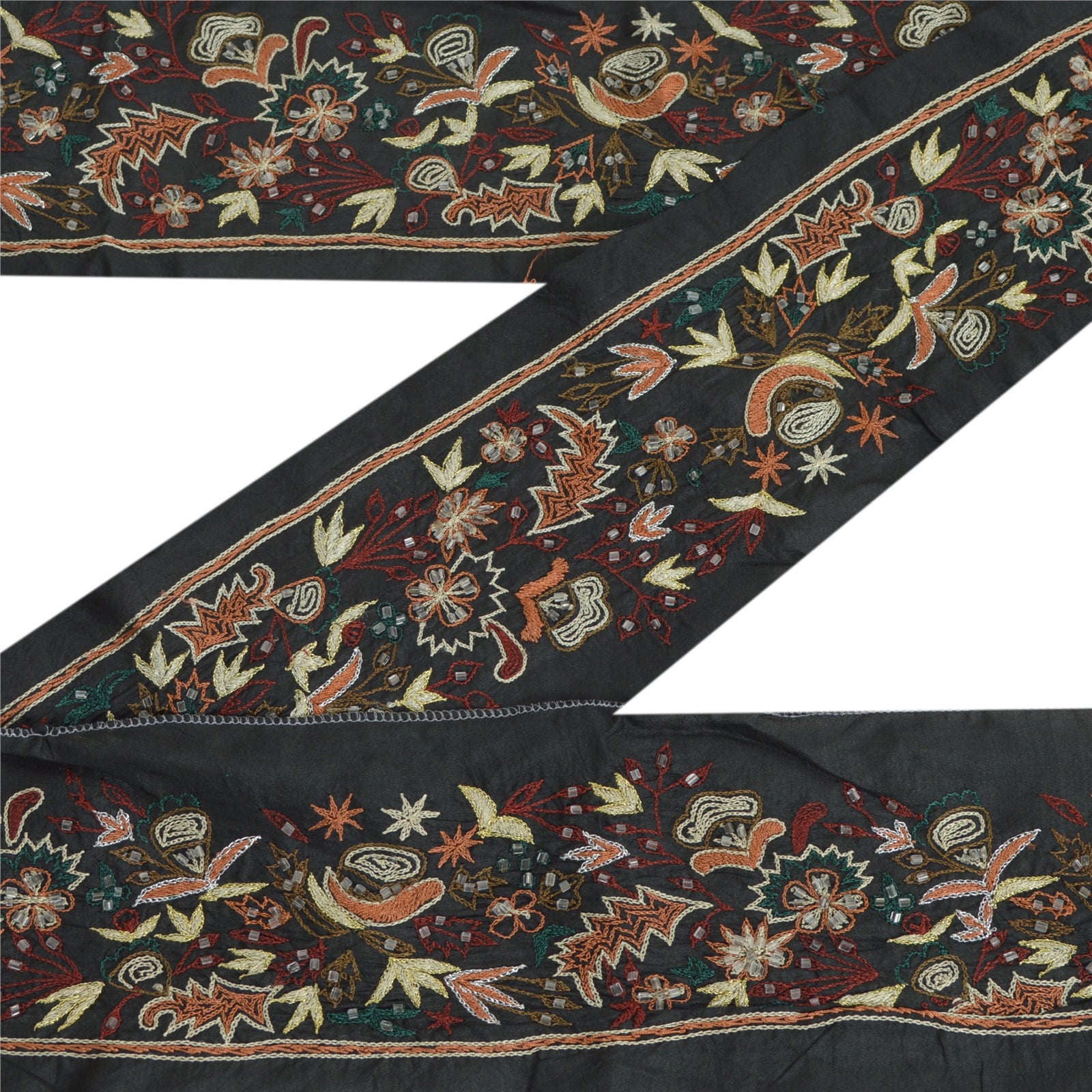 Sanskriti Vintage Sari Border Hand Beaded Craft 1 Yd Sewing Black Trims Lace